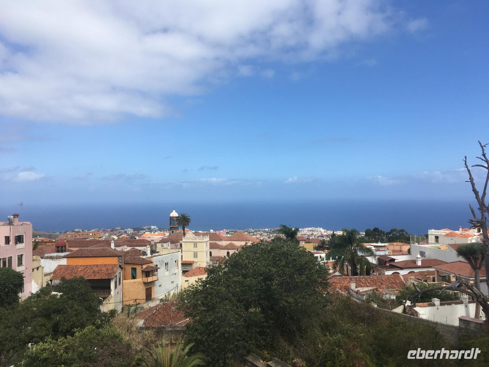 Nachdem wir die letzten Tage stets von strahlendem Sonnenschein bei warmen Temperaturen begleitet wurden, werden wir am heutigen Tag von Regenfall begrüßt. Auch wenn es für unsere Eberhardt-Gruppe wohl überraschend gewesen sein mag, so konnten die Einheimischen den Regenfall schon absehen, verrät uns später unsere Reiseleiterin Gisela. Schönem Wetter mit herrlich klarer Sicht auf die Nachbarinseln folgt nicht selten ein Wetterumschwung. Doch zum Glück ist der Regenschauer nach dem Frühstück bereits vorüber und wir starten unseren Ausflug in den Norden der Insel. So steuern wir zunächst die Hauptstadt Santa Cruz an und beginnen unseren Rundgang mit einem Besuch der Markthalle. Schon am Eingang strömt uns der Duft vielfältiger Gewürze in die Nase, es werden außerdem Fisch- und Fleischprodukte dort angeboten sowie auch Schmuckstücke. Wir spazieren weiter zur Kirche La Concepción, deren Inneres wir uns sogleich anschauen. Unser Weg führt uns weiter zum Stadtzentrum, zum Beginn der Fußgängerzone, auf den Plaza de España. Wir schlendern durch die Fußgängerzone, die von zahlreichen Geschäften und Cafés geprägt ist. Im Anschluss gelangen wir zum Hafen, wo uns unser Bus erwartet und wir in die ehemalige Hauptstadt La Laguna fahren. Die ehemalige Bedeutsamkeit ist bis heute zu spüren, das Stadtbild ist von geschichtsträchtigen Häusern, wie einigen Herrenhäusern, geprägt. Wir gelangen der Fußgängerzone folgend schließlich zur Kathedrale de San Cristobal. Wir verlassen La Laguna und steuern den Mercedeswald im Anaga-Gebirge im Nordosten an. Als wir das Örtchen Cruz del Carmen erreicht haben, zeigt sich die Natur des Mercedeswaldes von ihrer schönsten Seite. Der dichtbewachsene Wald ist von Lorbeerbäumen geprägt, durch welche die Sonne vereinzelt durchscheint, sowie von Moos, Farnen und Flechten. So verprüht er den Charme eines Märchenwaldes. Anschließend fahren wir in die Region von Taganana, wo wir an der Steilküste in das Restaurant Casa África einkehren. Dort lässt sich die Mehrheit ein reichhaltiges Menü schmecken und bekommt frischen Fisch serviert. Nach einem kleinen Spaziergang am Meer fahren wir weiter und stoppen in Las Teresitas. Der Strand zählt mit seinem zwei Kilometer langen Abschnitt voll von Sahara-Sand zu den schönsten Stränden Teneriffas. Wir spazieren barfuß am Strand und gehen bis zu den Knien ins Wasser. Mit den vielfältigsten Eindrücken von der facettenreichen Insel kehren wir schließlich zurück in unser Hotel. Ein letztes Mal lassen wir uns das köstliche Buffet schmecken, bevor es heißt, die Koffer zu packen und sich von Teneriffa zu verabschieden.