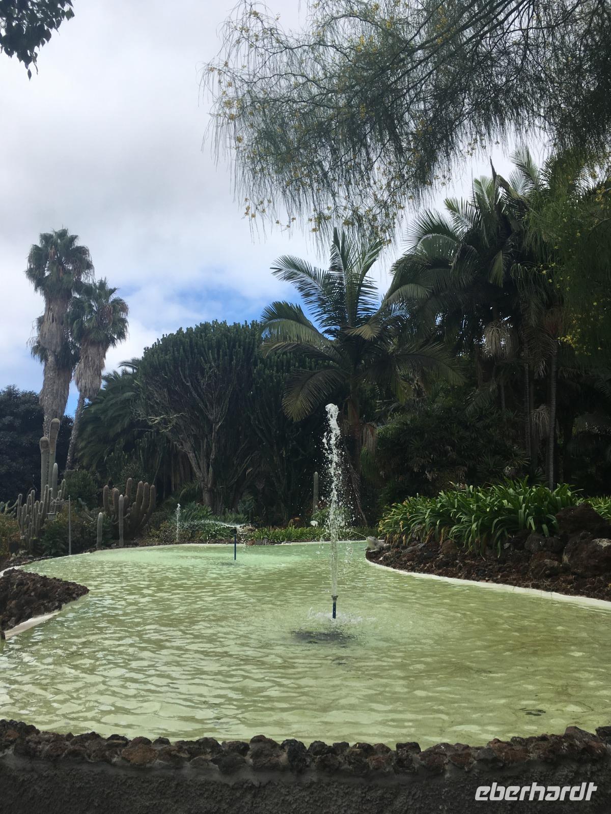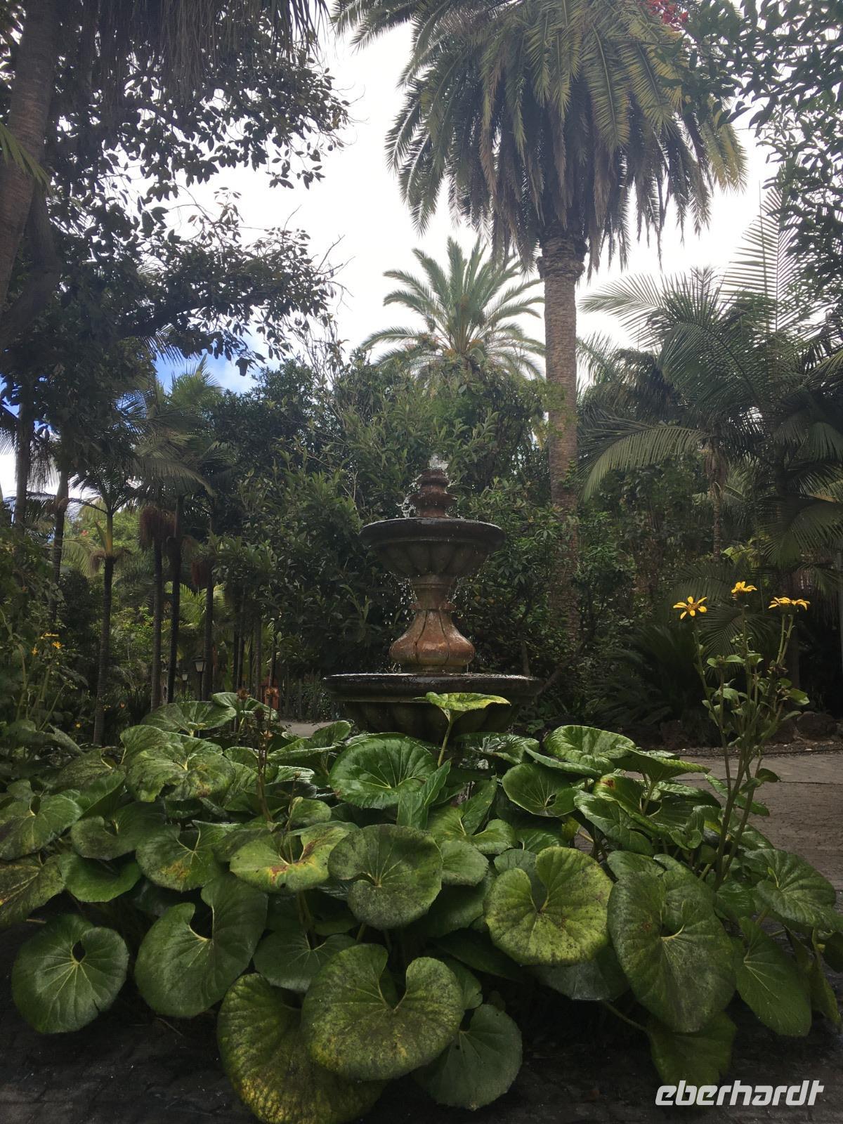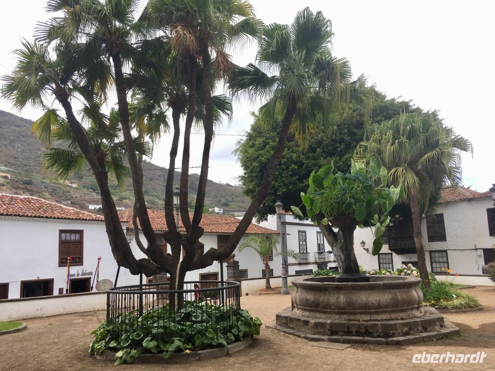 Am Nachmittag setzen wir unsere Inselrundfahrt weiter fort zu den Chorros de Espina in Valle hermoso. Wir biegen in den Waldweg ein, wo uns pure Idyllik erwartet. Wir steigen ein paar Steintreppen hinunter und gelangen zu einem Ort, der mystisch anmutet. Der Legende nach kann die Kraft des Wassers dazu genutzt werden, den richtigen Partner zu finden. So haben die Frauen das klare Wasser, welches aus den sieben Rohren fließt, von links nach rechts in der Reihenfolge zu trinken, um die wahre Liebe zu finden. Die Herren haben es andersherum auszuführen. Wenn das Wasser dann noch klar ist, handelt es sich um die richtige Wahl. Bei trübem Wasser ist es ratsam, weiter Ausschau zu halten. Der idyllische Ort Chorros de Espina wird uns nicht nur wegen seiner Legende im Gedächtnis bleiben, sondern auch wegen einer spontanen lyrischen Darbietung einer Mitreisenden unserer Eberhardt-Gruppe. Der Nachmittag neigt sich langsam dem Ende zu und wir kehren zurück nach San Sebastián. Unsere Inselrundfahrt schließt mit einer Stadtführung durch die beschauliche Hauptstadt, entlang an den Herrenhäusern und der Kirche. Bevor unsere Fähre nach Palma ablegt, kehren wir noch in das Restaurant Los Caprichos am Hafen ein und lassen uns eine Tapasvariation schmecken. Neben dem kanarischen Aufstrich Almogrote werden Kroketten, Salat, Thunfisch sowie eine Reispfanne mit Pilzen gereicht.