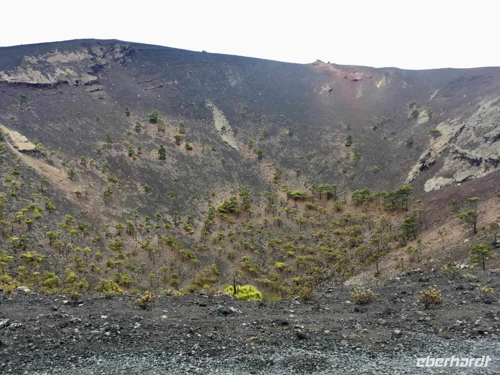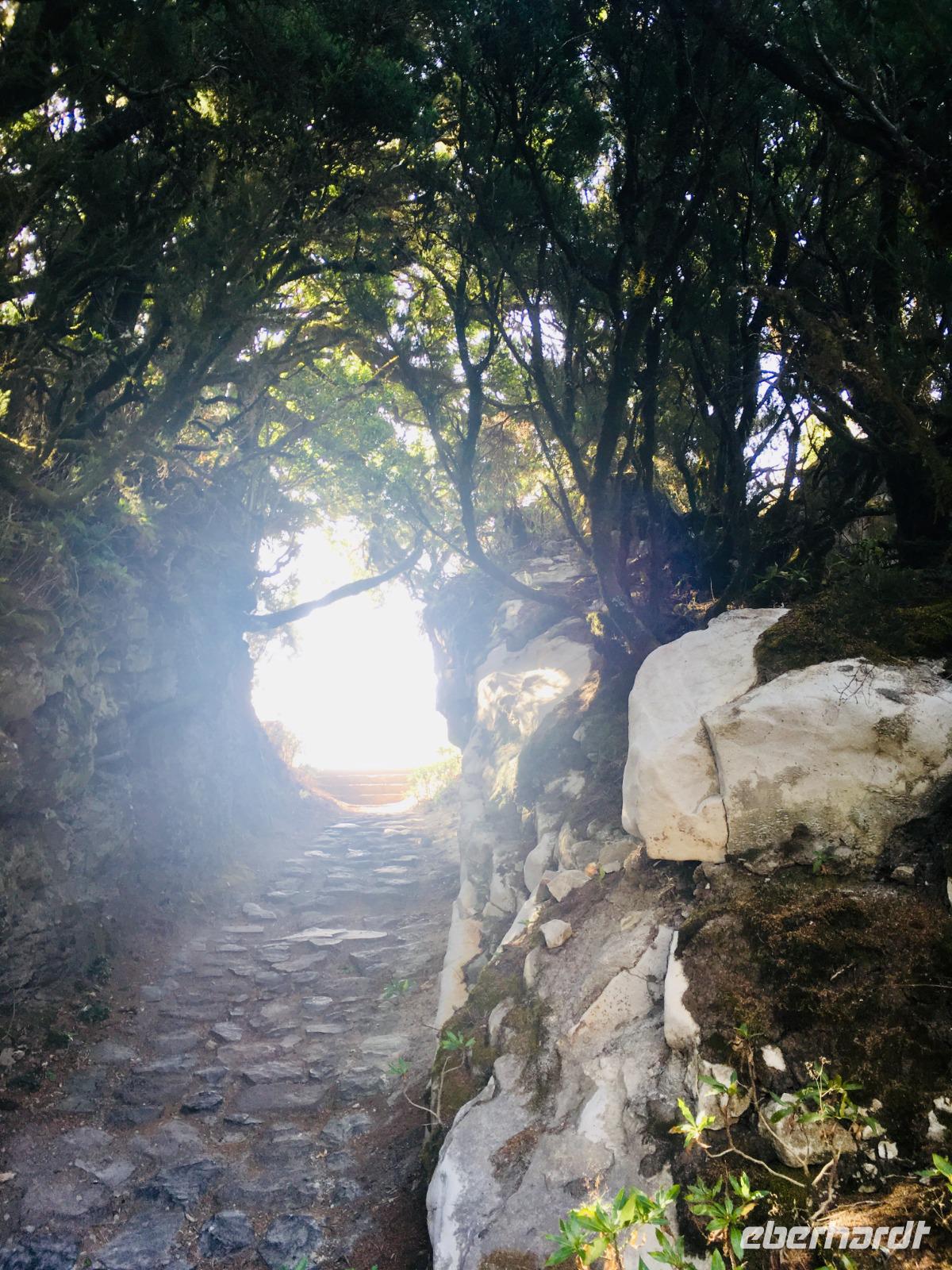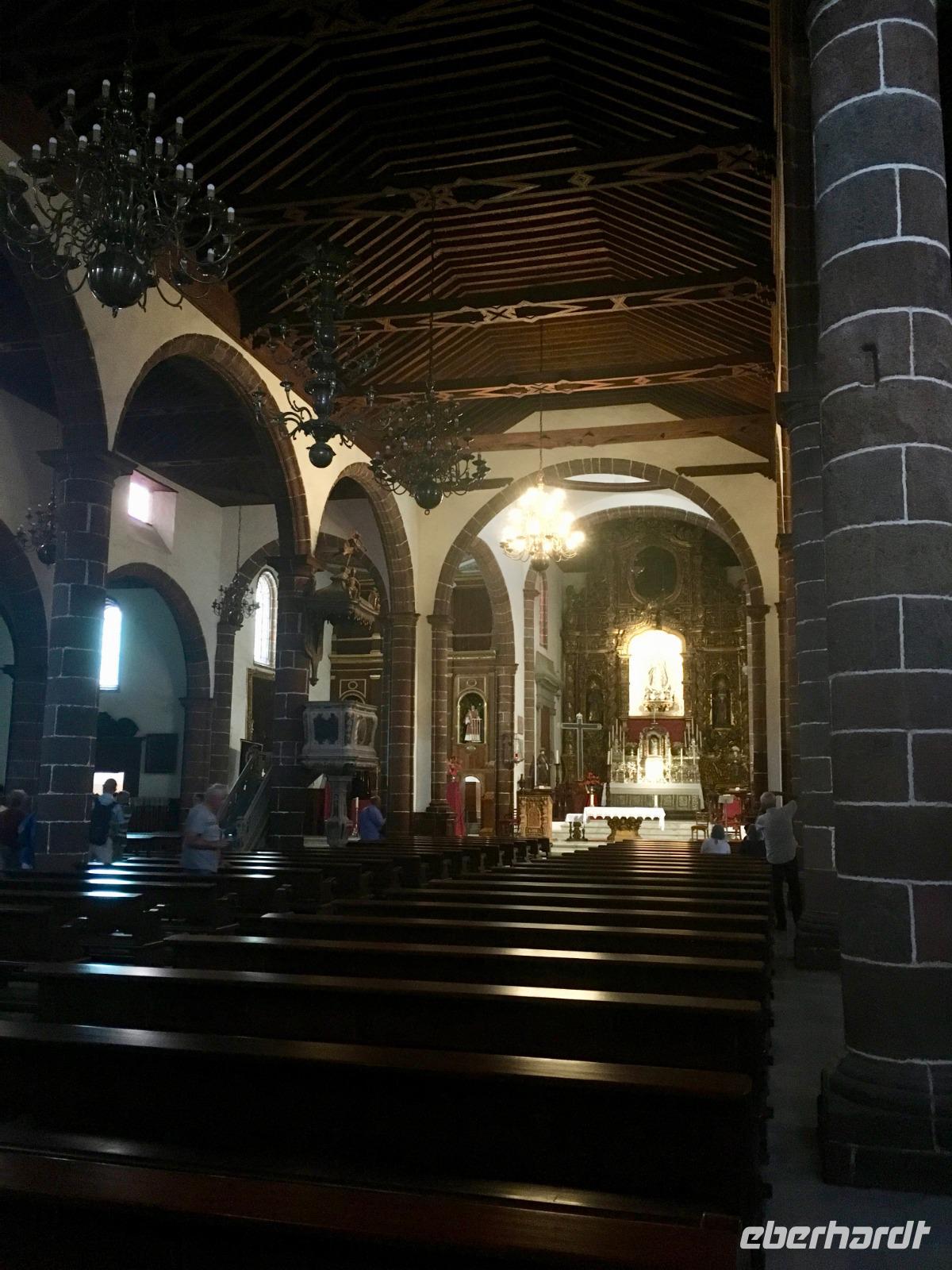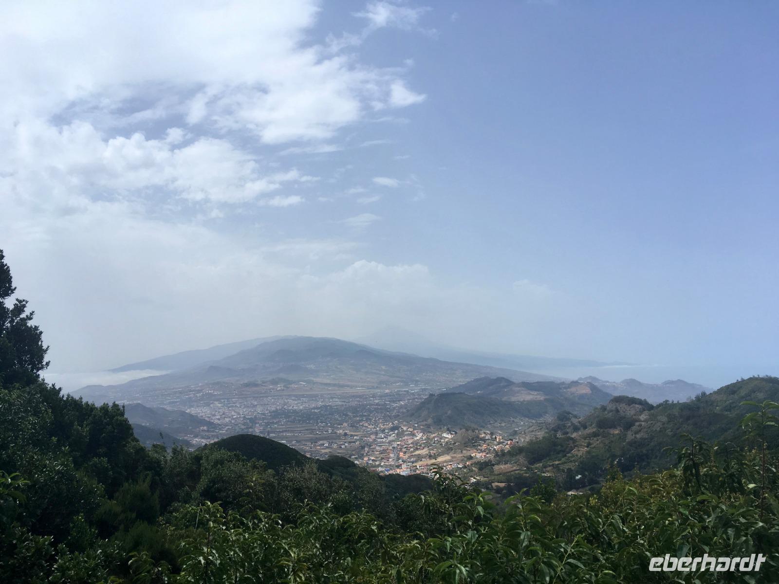 Wir führen unsere Fahrt weiter fort und gelangen zu der Kirche Nuestra Señora de Las Nieves (unsere Dame des Schnees). Sie ist die Schutzpatronin der Insel, weshalb die Kirche auch als Wallfahrtsort gilt und von den Menschen verehrt wird. Anschließend gelangen wir zum Aussichtspunkt Mirador de La Concepción, von dem aus man das Meer und die Hauptstadt Santa Cruz überblickt. Nun verlassen wir auch schon die Stadt und werden in den nächsten zwei Stunden die Natur in vollen Zügen genießen. Wir machen uns auf in den Nationalpark, noch zeichnet sich die Landschaft durch Baumheide und Esskastanien aus, doch schon bald finden wir ausschließlich prächtige Kiefern vor, deren Nadeln in einem kräftigen Grün erstrahlen. Auch zwei Raben begrüßen uns bei unserer Ankunft. Rudi nimmt uns mit auf eine kleine Wanderung durch den Nationalpark. Die Sonne strahlt, es herrschen warme Temperaturen und wir atmen den intensiven Duft der Kiefern ein.