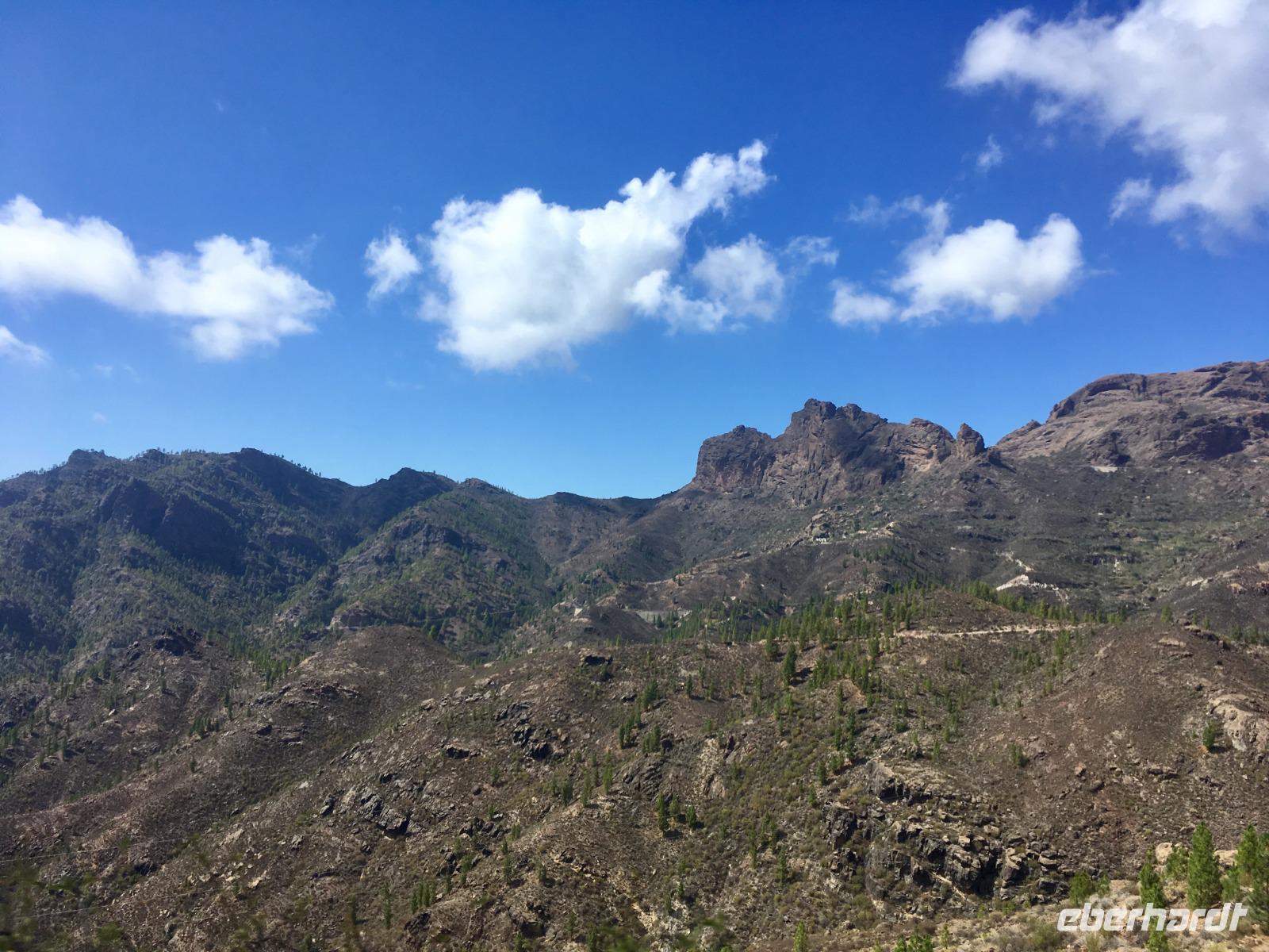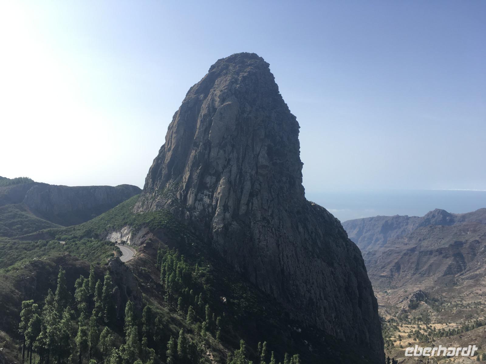 Wir erreichen sodann den höchsten Punkt Gran Canarias, den Pico de Tejeda auf 1149 m Höhe, von wo aus wir wieder eine schöne Sicht auf den Teide in Teneriffa haben. Auf der Weiterfahrt passieren wir den Roque nublo.