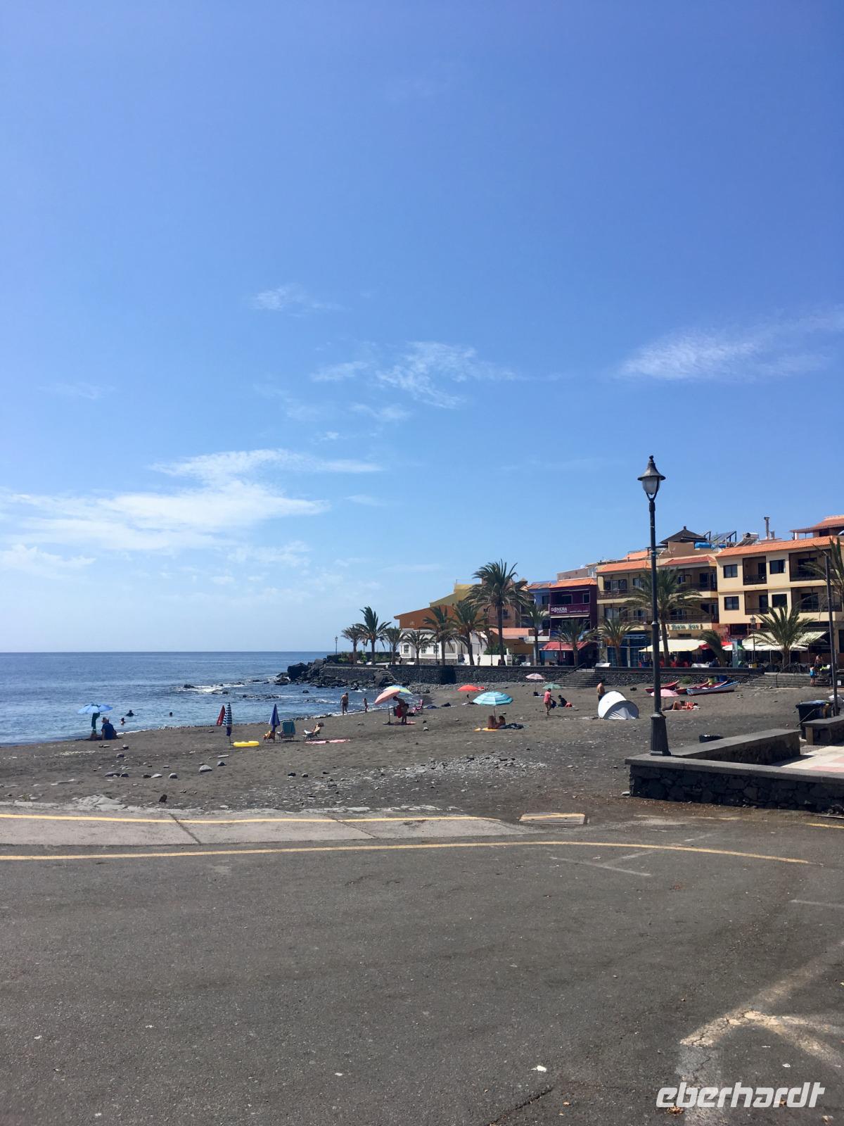 Doch bevor uns Teneriffa Willkommen heißen darf, müssen wir uns wegen einer Flugverspätung noch etwas gedulden. Zum Glück startet der Flieger dann auch schon und mit ein bisschen Rückenwind können wir die Zeit sogar etwas aufholen. Wir werden sodann zu unserem schönen 4-Sterne Hotel La Siesta gefahren, was in der Ortschaft Playa de las Américas gelegen ist. Dem Namen hat der Ort den nord- und südamerikanischen Investoren zu verdanken, die dort als erste Bauvorhaben realisiert haben und aus dem einstigen Fischerdörfchen ein wichtiges touristisches Zentrum Teneriffas entstehen lassen haben. Das bietet für unsere Gruppe viele Vorteile: Die Einkaufslädchen sind rasch zu erreichen und es lässt sich durch die ,bunte' Fußgängerzone bummeln. Besonders schön ist auch der Strand in unmittelbarer Umgebung, der durch seinen schwarzen Sand hervorsticht.
