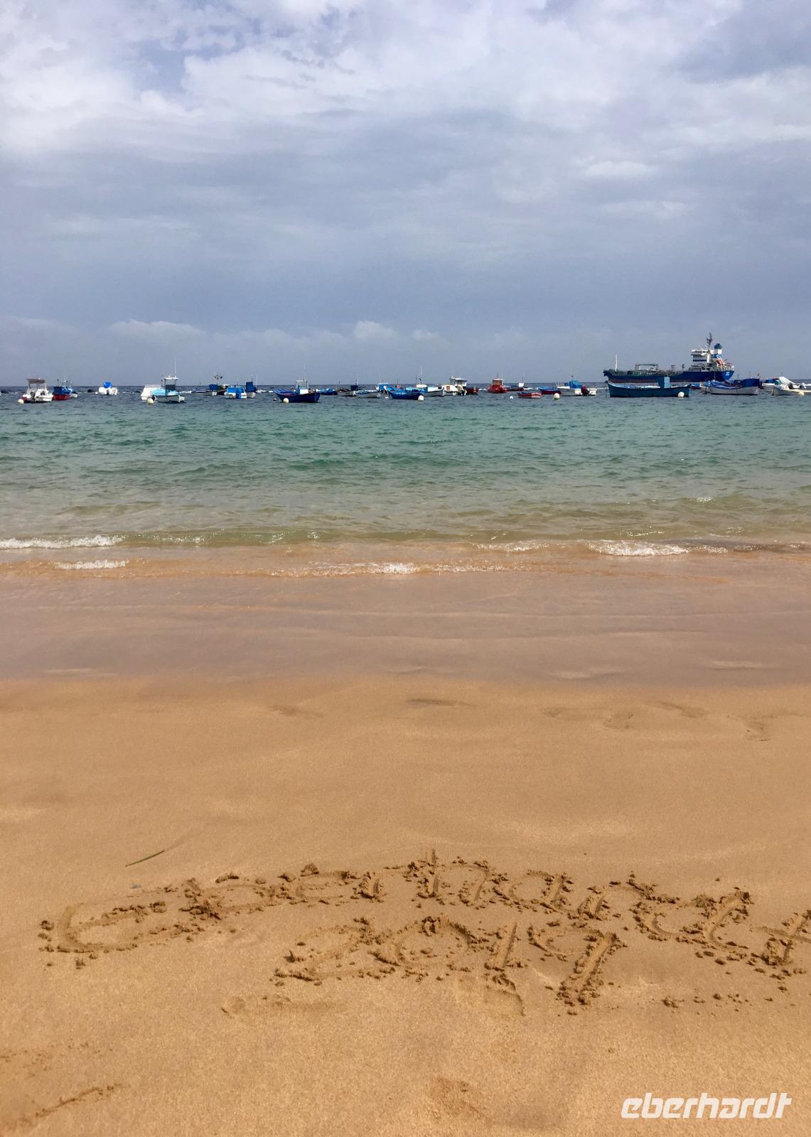 Mit neuer Energie begrüßt unsere Eberhardt-Gruppe den heutigen Tag. Nach einem leckeren Frühstück im Hotel werden wir von unserer Reiseleiterin Anita abgeholt. Kurz darauf trifft auch unser Busfahrer Paco ein, womit der Ausflug in den schönen Südwesten Gran Canarias beginnen kann. Während der Fahrt lässt uns die gebürtige Österreicherin wissen, dass sie bereits 29 Jahre auf der Insel lebt und diese uns heute näherbringen möchte. Wir steuern zunächst Puerto Rico im Westen an, wo wir unseren ersten Halt einlegen. Von hier aus haben wir einen Blick über den touristisch erfassten Ort am Meer, in dessen Felsen sogar Appartements gebaut wurden als Reaktion auf den Touristenboom in den 1960er Jahren. Früher prägten ausgedehnte Tomatenfelder noch die Landschaft, doch diese sind heute großen Hotelanlagen gewichen. Unten in Puerto Rico angelangt, fahren wir mit dem Boot nach Puerto de Mogán über. Wir steigen von Bord und sind direkt von dem charmanten Ort angetan, der sich durch seine Gassen samt Blumenpracht sicherlich zu den schönsten der Kanareninseln zählen darf. Wir spazieren durch die Gassen und erkunden Puerto de Mogán auf eigene Faust. Dabei bummeln einige durch die Lädchen, gönnen sich ein kaltes Getränk bei schöner Aussicht oder spazieren weiter durch den Ort. Im Anschluss führt uns Anita an die Costa Meloneras, die ihren Namen dem einstigen Melonenanbau zu verdanken hat. Wir schlendern zum Meer, vorbei an dem Leuchtturm und stoßen auf ein aufwendiges Kunstwerk aus Sand, das einen Salamander darstellt.