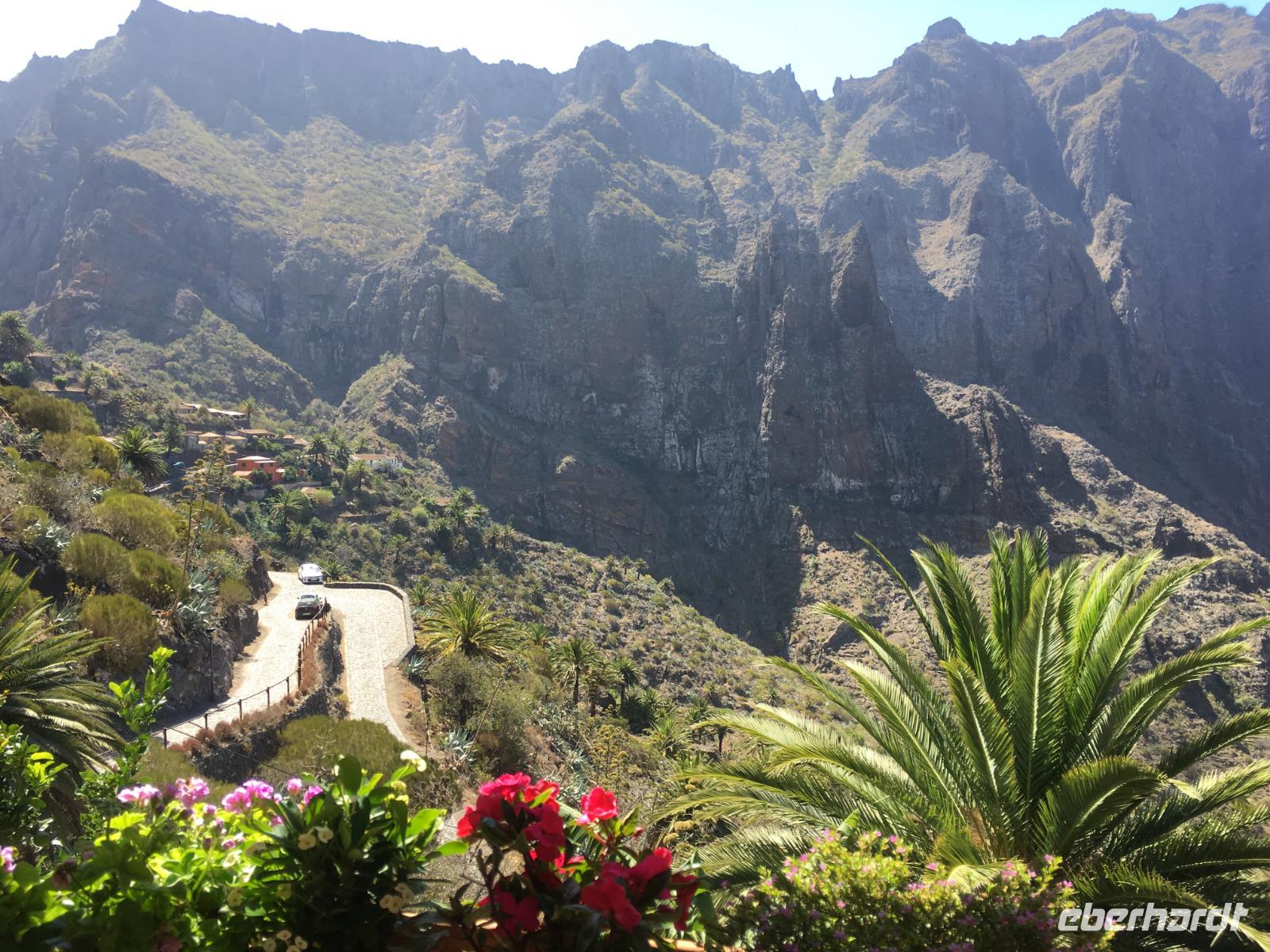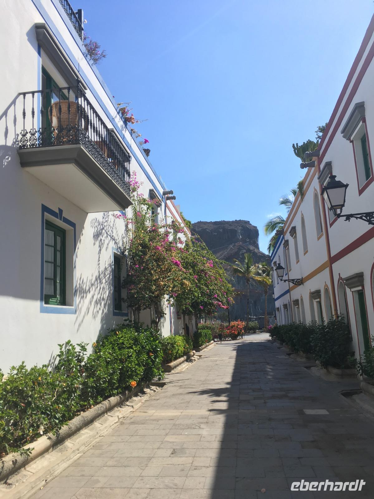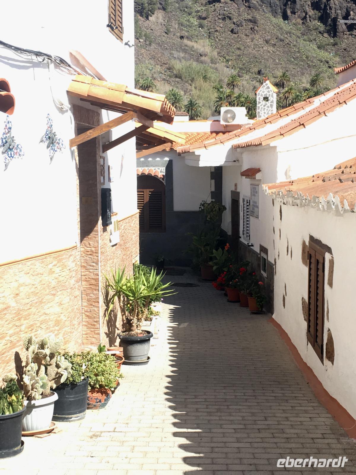 Am Nachmittag erreichen wir das charmante Dorf Fataga, das wir mit einem kleinen Spaziergang durch die schmalen Gassen erkunden. Es wirkt recht verschlafen, als wir dort eintreffen, was nicht zuletzt der Siesta-Zeit geschuldet sein mag. Das Bild dieses Dorfes wird von weißen Steinhäusern und Pflanzenprachten bestimmt.