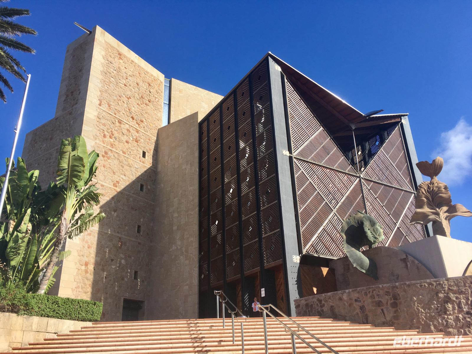 Unsere heutige Inselrundfahrt lassen wir nach einem ausgiebigen Frühstück beginnen. Wir starten mit unserer Reiseleiterin Anita und Busfahrer José zunächst in Richtung Ostküste. Wir passieren die drittgrößte Stadt Gran Canarias Vecindario sowie die industrielle Zone samt Entsalzungsanlage. Nachdem wir im Norden angelangt sind, legen wir einen ersten Halt am Strand von Canteras ein. Dort befindet sich auch das Auditorium Alfredo Kraus. Der Tenor ist der Namensgeber des 1997 eingeweihten Konzert- und Konferenzsaales. Architektonisch weist das Gebäude eine Schiffsoptik auf und es scheint, als würde das Auditorium direkt im Meer münden. Sogar Filmfestivals wurden hier bereits ausgetragen und hat so manche Berühmtheit bei sich zu Gast werden lassen, erzählt uns Anita.
