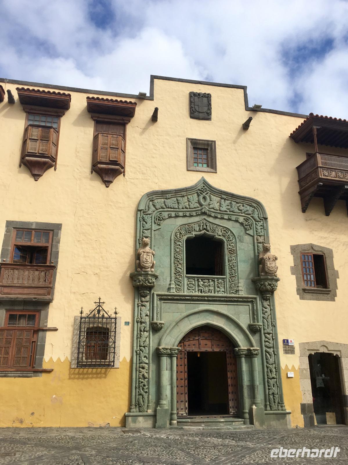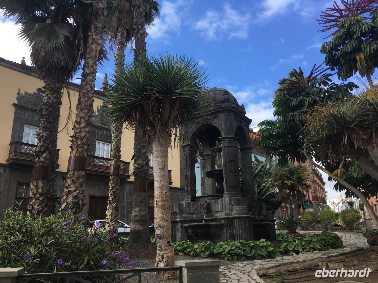 Ein weiterer Teil erkundet die Hauptstadt Las Palmas, die mit dem Linienbus rasch erreicht ist. Die Fußgängerzone führt in die Altstadt, von wo aus die Türme der Katedrale Santa Ana schon aus der Ferne emporragen. Einer dieser Türme lässt sich sogar über einen Fahrstuhl erreichen und garantiert eine fantastische Sicht über die Stadt, an die sich das Meer anschließt. Hinter der Katedrale befindet sich das Kolumbushaus, das ein Museum beherbergt. Wir statten auch der Markthalle Mercado de Vegueta einen Besuch ab und sind begeistert, welche Vielfalt an frischem Obst, Fisch und Fleisch dort angeboten wird. Am Nachmittag erreichen wir wieder den Playa de Inglés und somit unser Hotel. Am Abend findet sich unsere Eberhardt-Gruppe zusammen und stößt bei einem Glas Sekt auf die vergangenen zwei Wochen an, die reich an schönen Erlebnissen waren. Ein letztes Mal lassen wir uns im Anschluss das Abendessen schmecken. Eine Verführung stellt heute der Schokoladenbrunnen mit Früchten dar, dem einige von uns nicht widerstehen können.