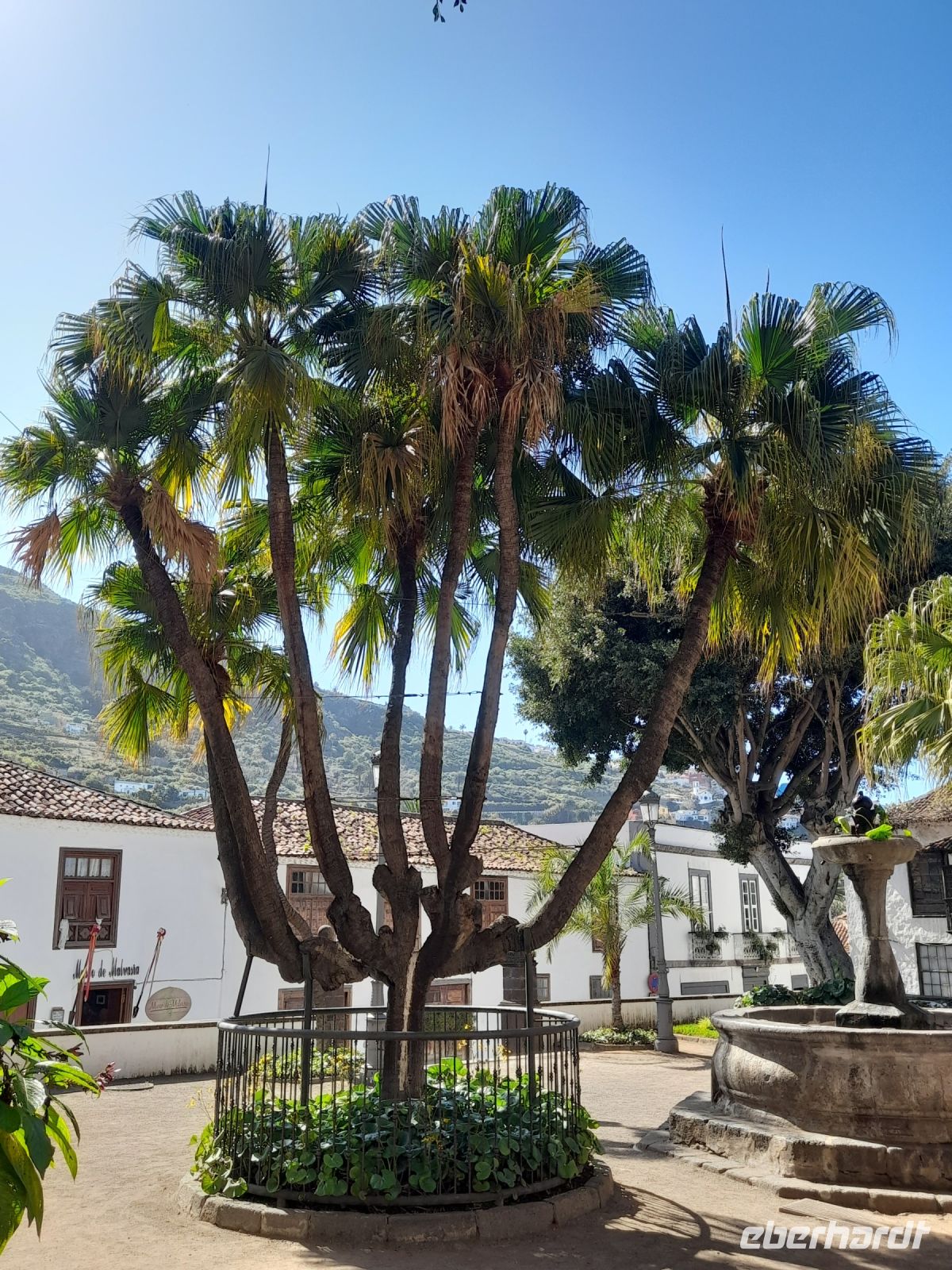 Dank Andreas Organisationstalent haben wir das Glück, dass wir heute auch einen Abstecher ins Valle Gran Rey, das Palmental La Gomeras, in den Zeitplan einbauen können. Weit weg ist auf der knapp 370km² kleinen Insel zwar nichts, aber die Wege über die zum Teil engen Serpentinenstraßen beanspruchen mitunter ganz schön viel Zeit. Das Valle Gran Rey war schon zu Zeiten als es noch keine regelmäßigen Fährverbindungen gab ein beliebtes Ziel für Hippies und Aussteiger. Mit den Fähren kamen dann die Pauschaltouristen und die ersten richtigen Hotels. Wir sind vor allem fasziniert von den schönen Aussichten und den vielen kanarischen Palmen, von denen ausschließlich auf La Gomera der süße Palmsirup gewonnen werden darf.