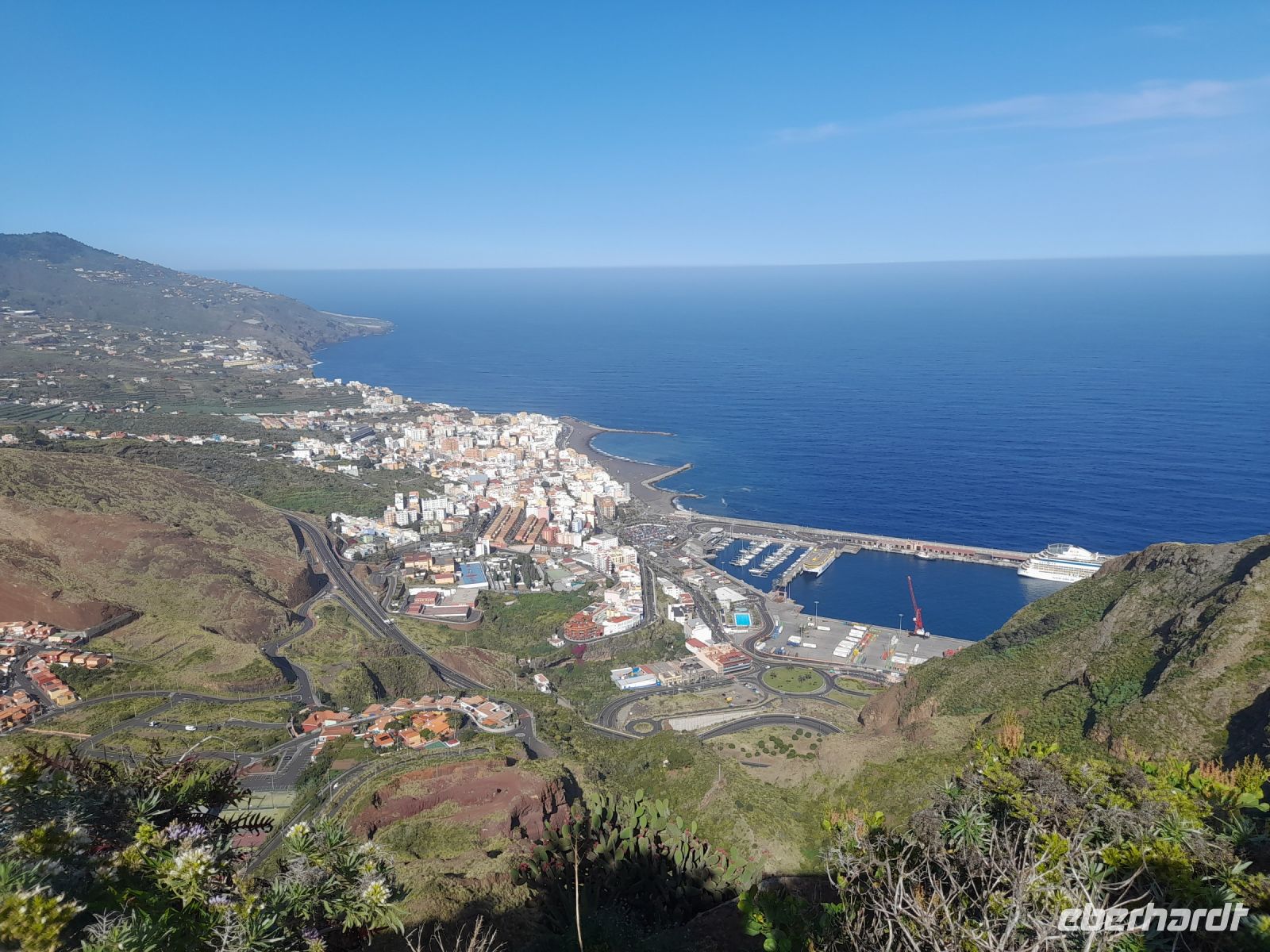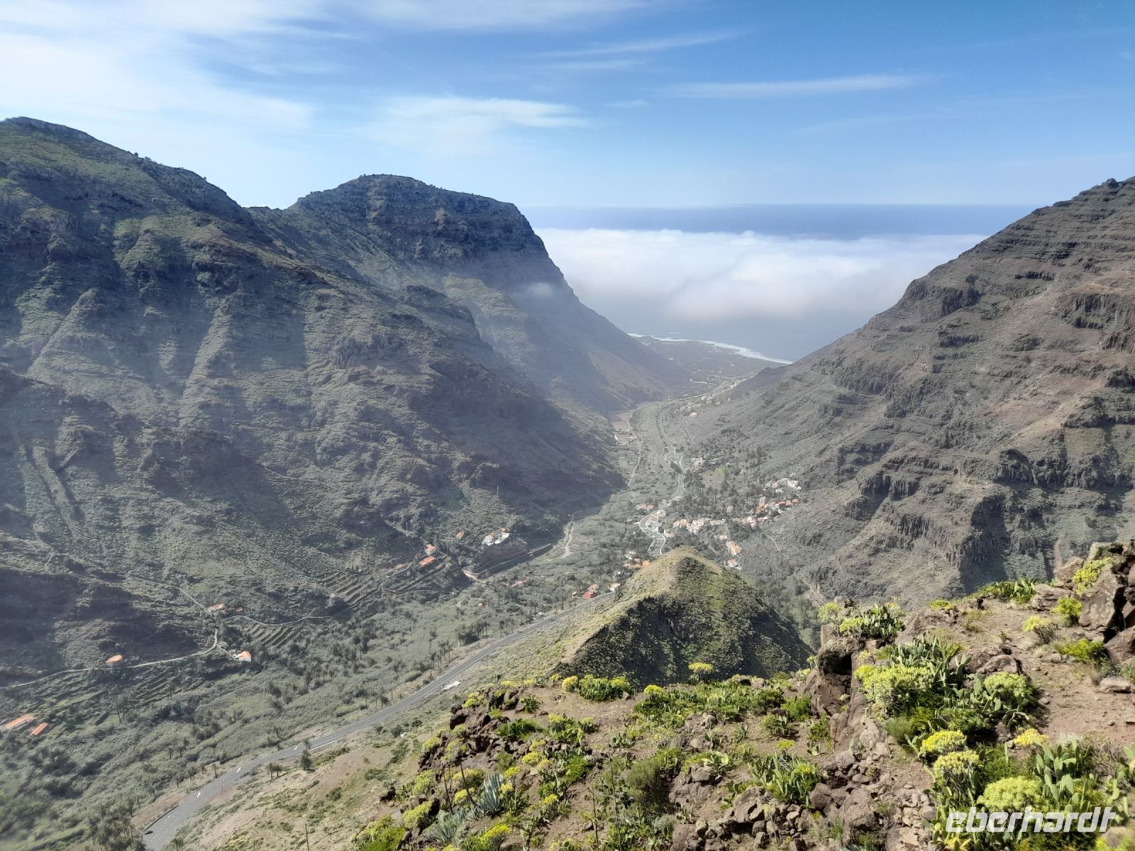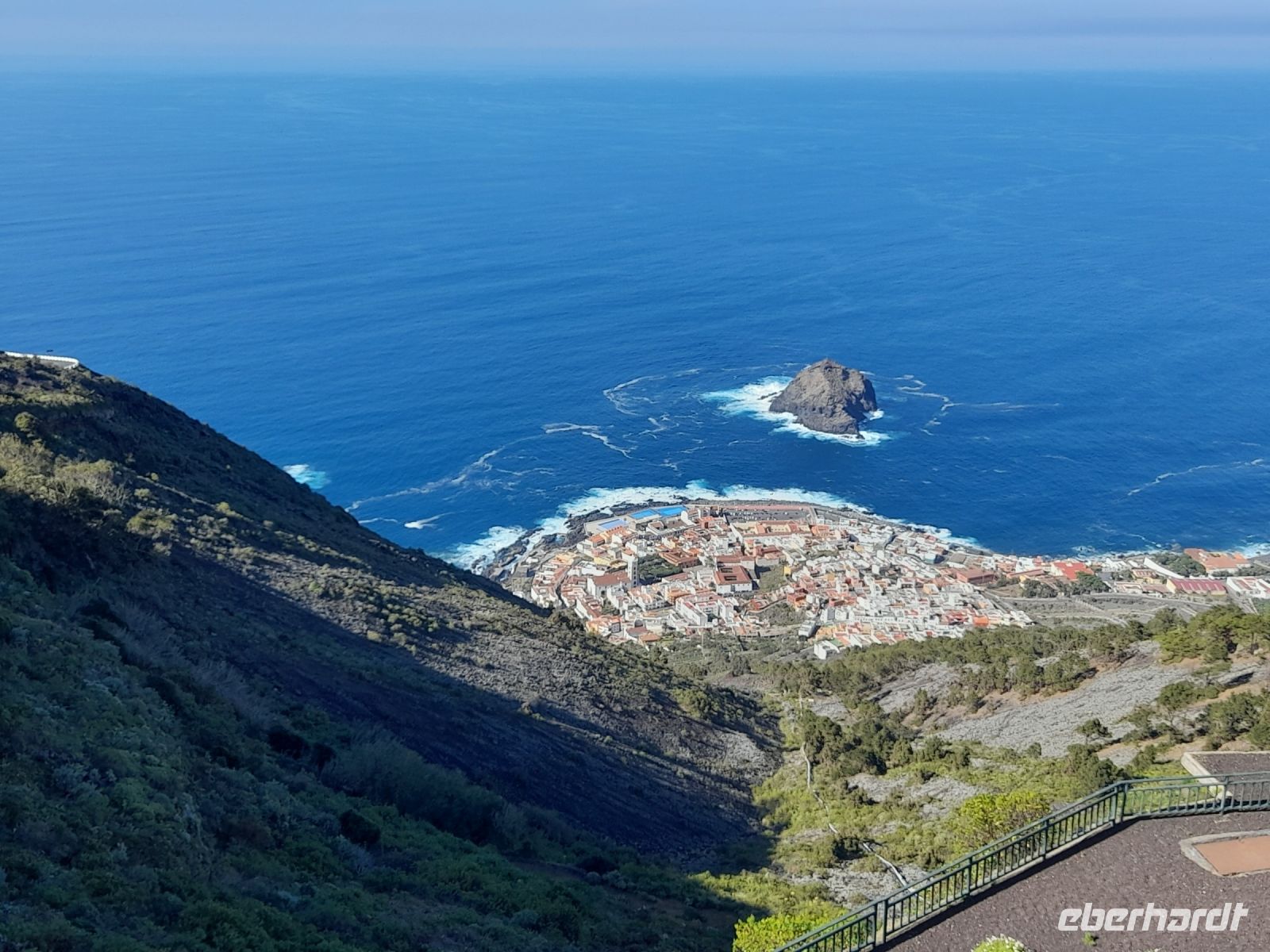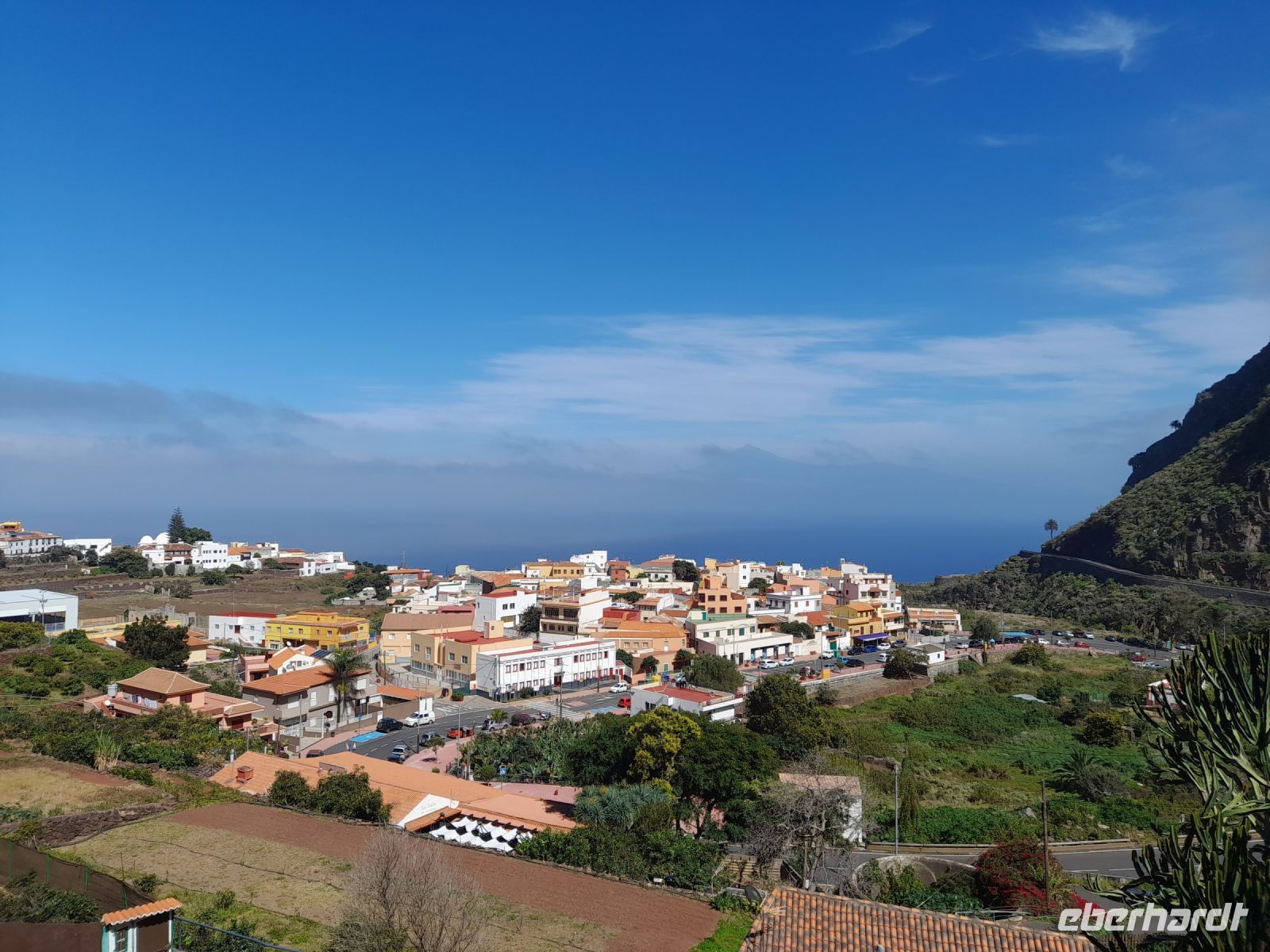 Anschließend geht es hinunter in Richtung Küste zu dem kleinen Ort Agulo, das als schönstes Dorf La Gomeras gilt und auch in die Liste der schönsten Dörfer Spaniens aufgenommen wurde. Hier unternehmen wir einen kleinen Spaziergang, bevor es dann durch die Schlucht von Hermigua langsam wieder zurück in Richtung San Sebastián geht. Auf dem Weg sind noch Teile der alten ersten Straße aus den 1950er Jahren zu sehen und wir sind ganz froh, dass es mittlerweile doch einige Tunnels mehr gibt und die Fahrt nicht mehr ganz so abenteuerlich ist wie damals.