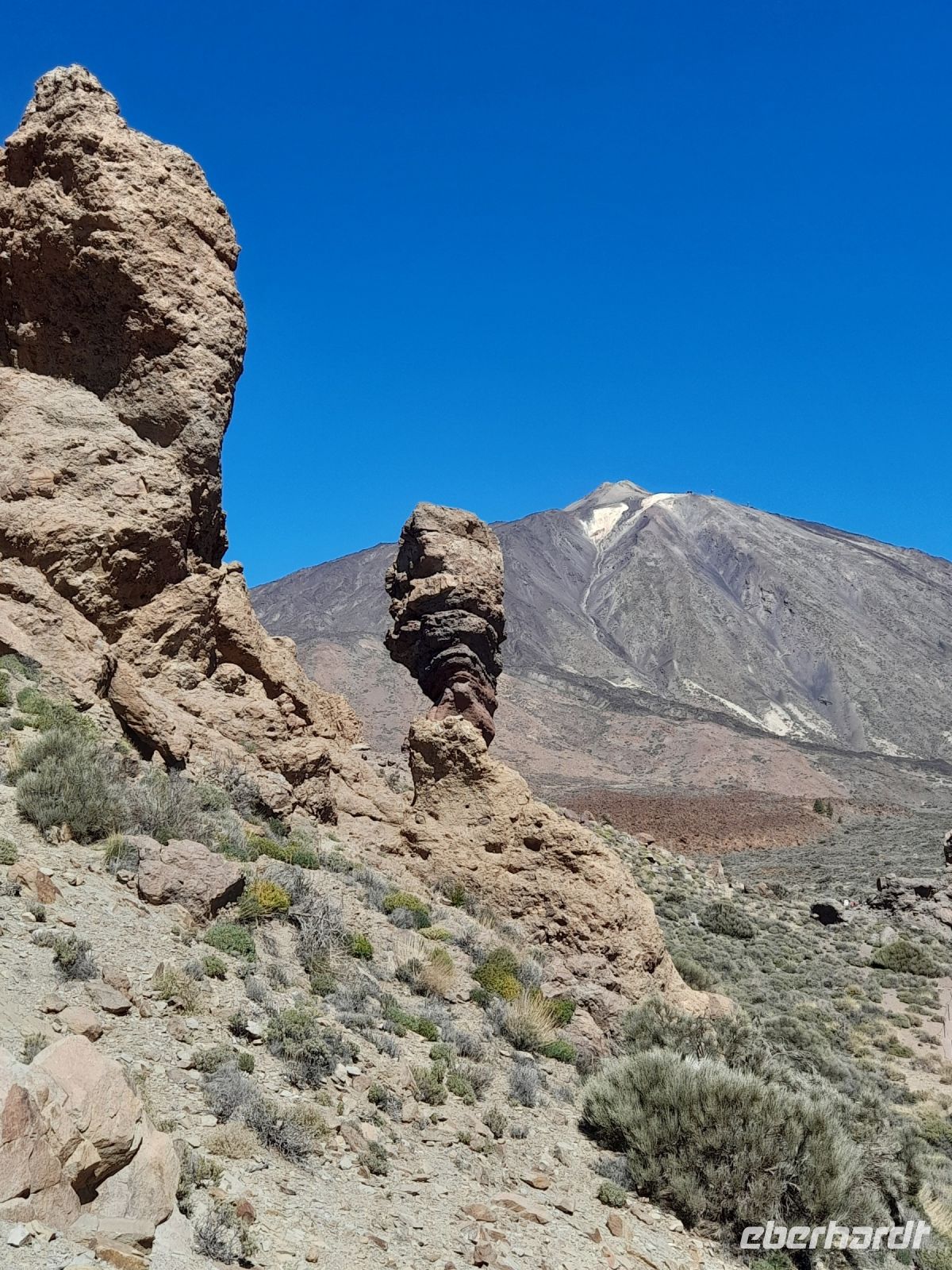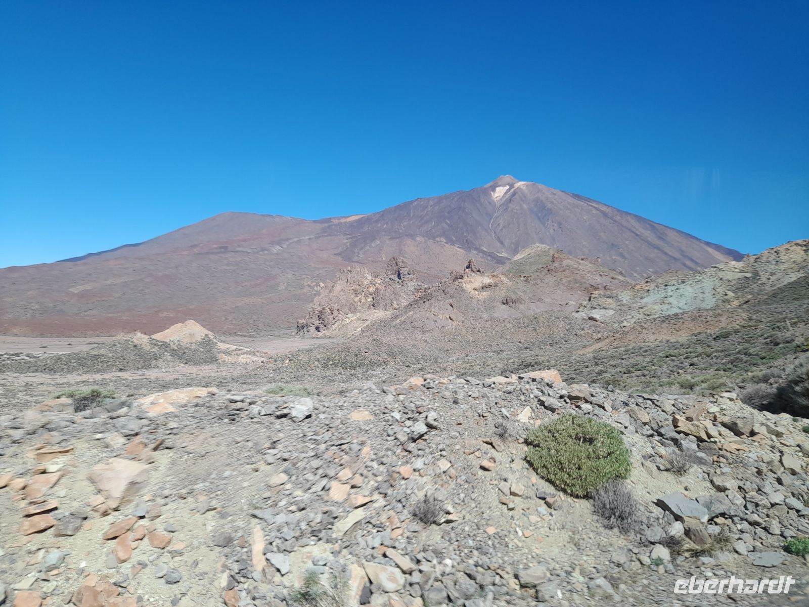 Am nächsten Morgen sehen wir dann Gisela wieder, heute jedoch im Team mit Busfahrer Miguel. Auf dem Tagesprogramm steht heute die Erkundung des 1954 gegründeten größten und ältesten Nationalparks der Kanaren. Der Teide Nationalpark umfasst 190 km² und das Zentrum bildet natürlich der einzige aktive Vulkan der Insel, der Teide selbst, mit 3715 Metern höchster Punkt der Insel und gleichzeitig auch höchster Berg Spaniens. Rundherum erstreckt sich eine wundersame Kraterlandschaft mit einzigartiger Flora und Fauna.