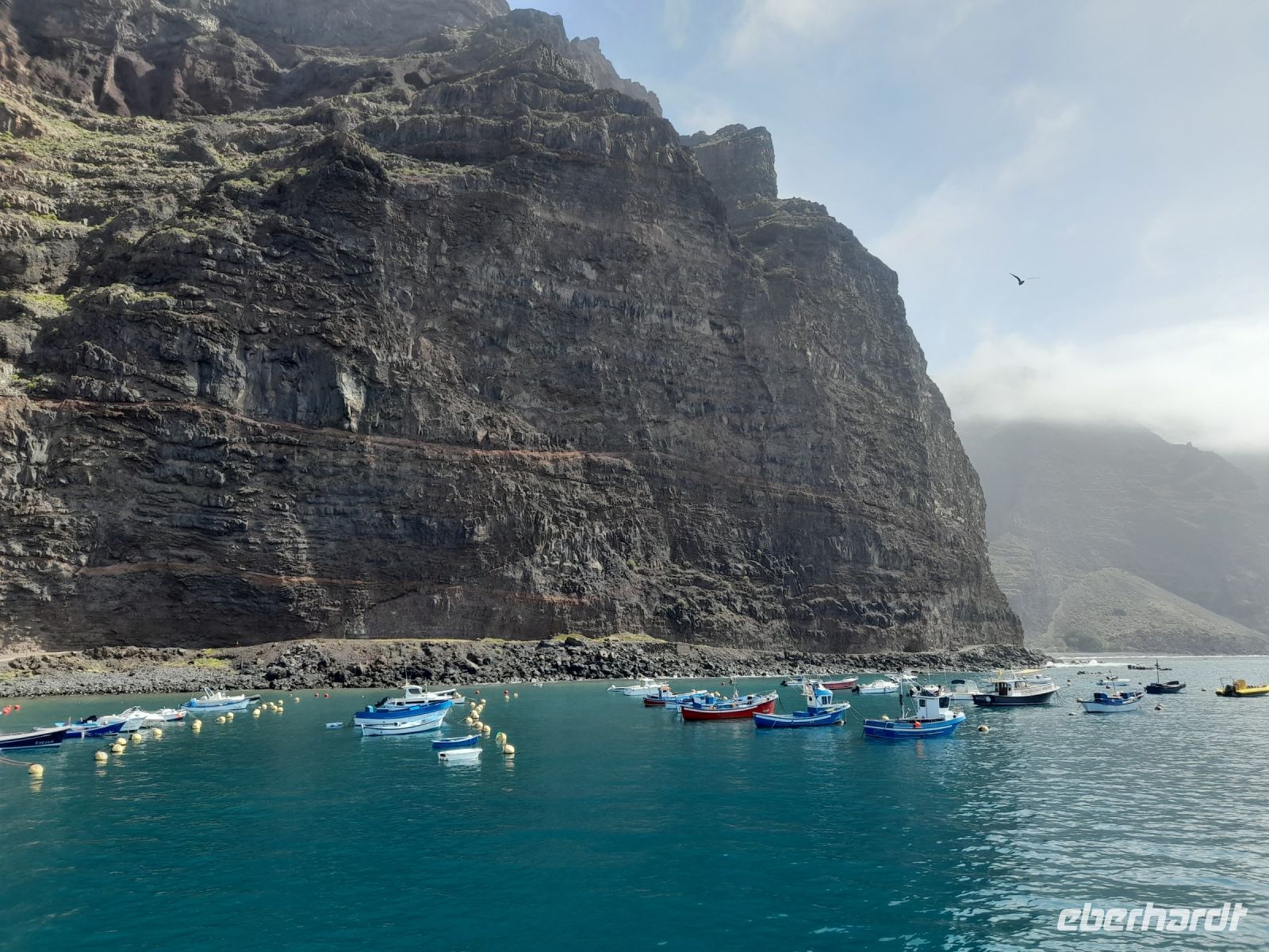 Nach dem Essen nähern wir uns der Steilküste vor Masca und können Los Gigantes nun von dem Wasser aus bestaunen – das ist tatsächlich noch ein wenig eindrucksvoller als vom Land aus. Die Mutigen unter uns haben nun die Möglichkeit ein erfrischendes Bad im Atlantik zu wagen und auszutesten, wie kalt das Wasser tatsächlich ist.