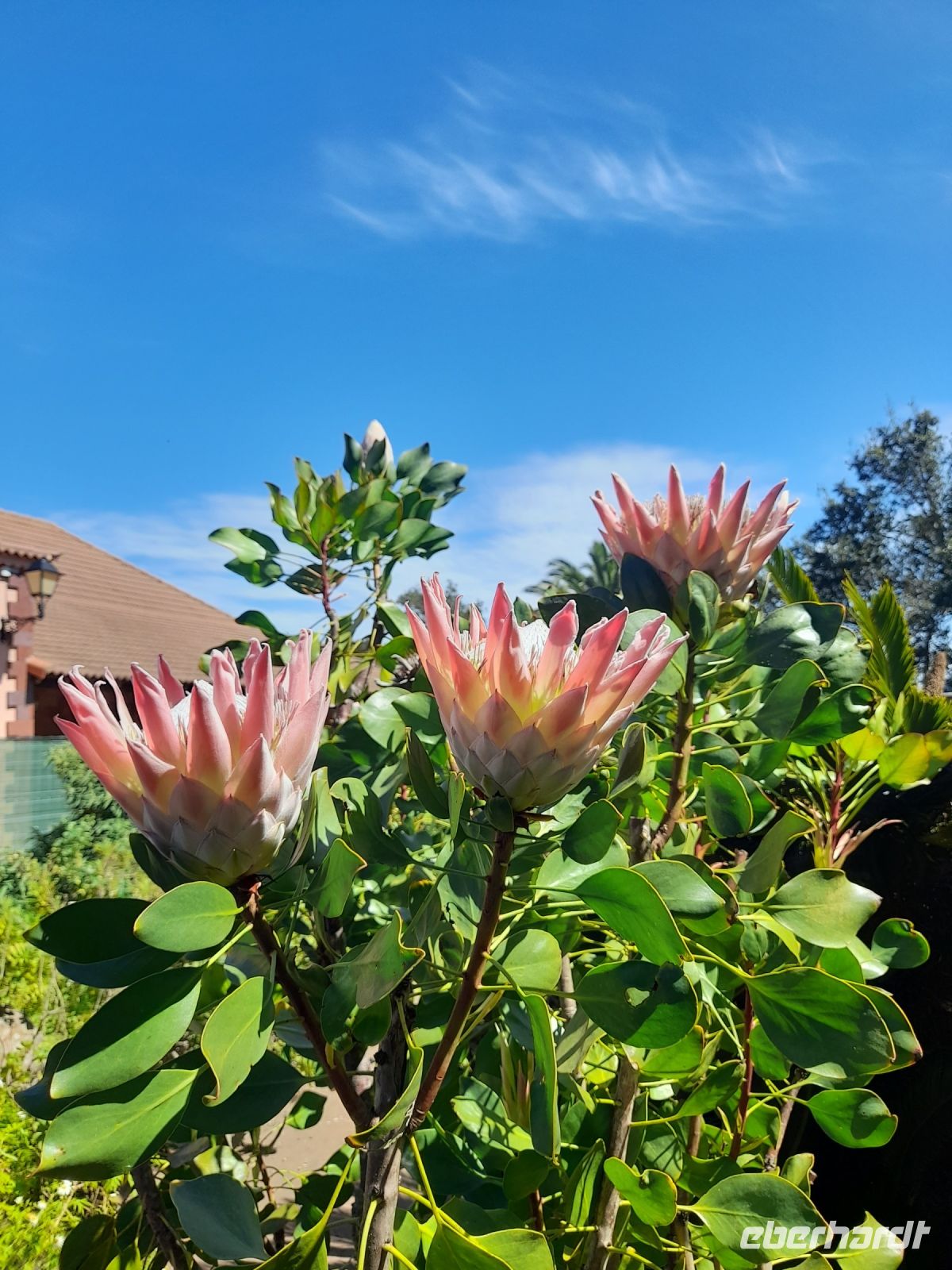 Nach dem Essen fahren wir noch einmal in den Nationalpark hinein und besuchen das Informationszentrum „Juego de Bolas“, neben einer kleinen Ausstellung zum traditionellen Leben der Gomerer gibt es hier auch einen kleinen botanischen Garten mit einheimischen Pflanzen, sowie einer aus Afrika eingeführten Königs-Protea, die gerade in voller Blüte steht.