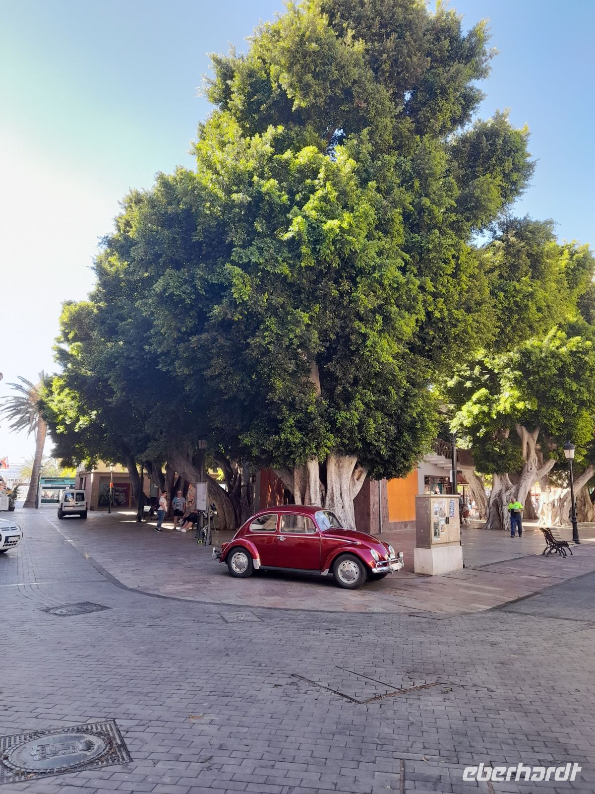 Unser erstes Ziel des Tages ist die Inselhauptstadt Santa Cruz. Wir fahren vorbei an der 2003 eröffneten Kongress- und Konzerthalle „Auditorio de Tenerife“, das von dem renommierten Architekten Santiago Calatrava entworfen wurde. Weiter geht es, vorbei an den Verwaltungsgebäuden der Insel bis ins Zentrum. Von hier aus sind wir in wenigen Minuten an der Plaza España, die als größter Platz in Santa Cruz seit dem 15. Jahrhundert eine lange Geschichte hinter sich hat. Zwischen 2006 und 2008 übertrug man dem Schweizer Architekturbüro Herzog &