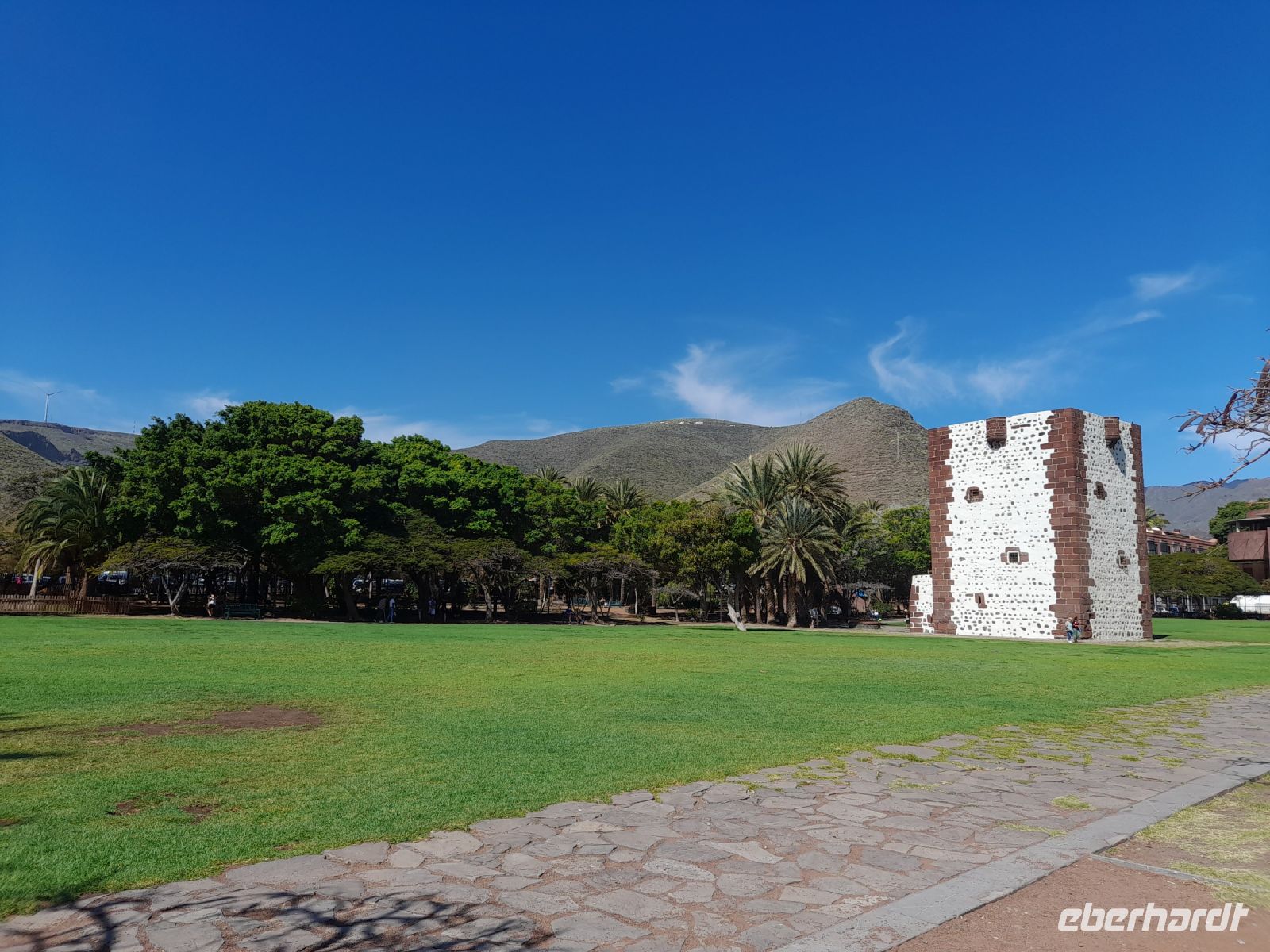 Bevor wir La Gomera am Nachmittag wieder verlassen, wollen wir am Vormittag noch die Inselhauptstadt etwas genauer unter die Lupe nehmen. Wir beginnen am Namensgeber unserer Unterkunft, dem Turm des Grafen – Teil einer Befestigung der kastilischen Eroberer aus dem 15. Jahrhundert. Fast ein Jahrhundert lang brauchten sie, um die Oberhand über die Ureinwohner La Gomeras zu gewinnen, die ihre Insel den Eindringlingen nicht kampflos überließen. So wird berichtet, dass sich der Graf zusammen mit seiner Frau und einigen Mitstreitern drei Wochen lang in dem kleinen Turm verschanzen musste, und das ohne sanitäre Anlagen und Wasserreserven.