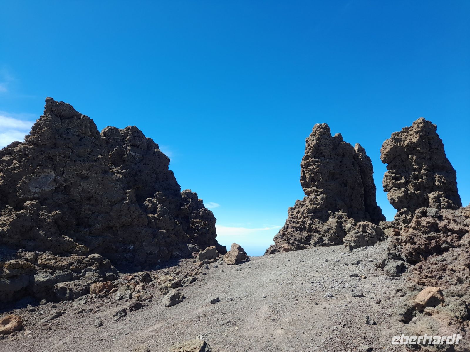 Oberhalb der Baumgrenze erreichen wir dann den Nationalpark, der jedes Jahr von durchschnittlich 3,5 Millionen Menschen besucht wird. Auf über 2000 Metern Höhe haben können wir nun die bizarren Felsformationen der Lavaströme der vergangenen Vulkanausbrüche bestaunen, sowie die grandiose Aussicht auf die Nachbarinseln Gran Canaria, La Gomera, El Hierro und La Palma genießen. Was für ein Glück wir doch mit dem Wetter haben! Wir fahren weiter zu den berühmten Felsformationen Roque de García, wo aktuell Dreharbeiten für mehrere Filmproduktionen stattfinden. Der Teide Nationalpark ist schon seit Jahrzehnten ein viel frequentierter Schauplatz für diverse Kassenschlager wie zum Beispiel „Star Wars“ oder „Fast and Furious“.