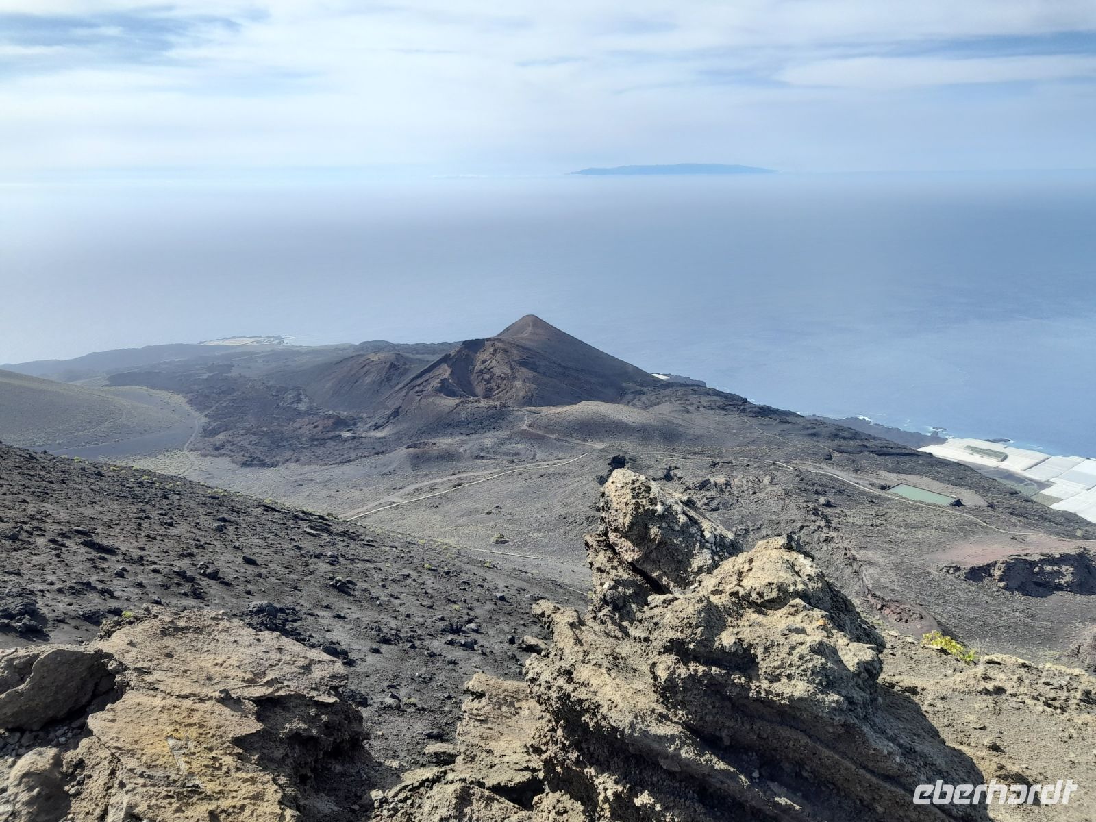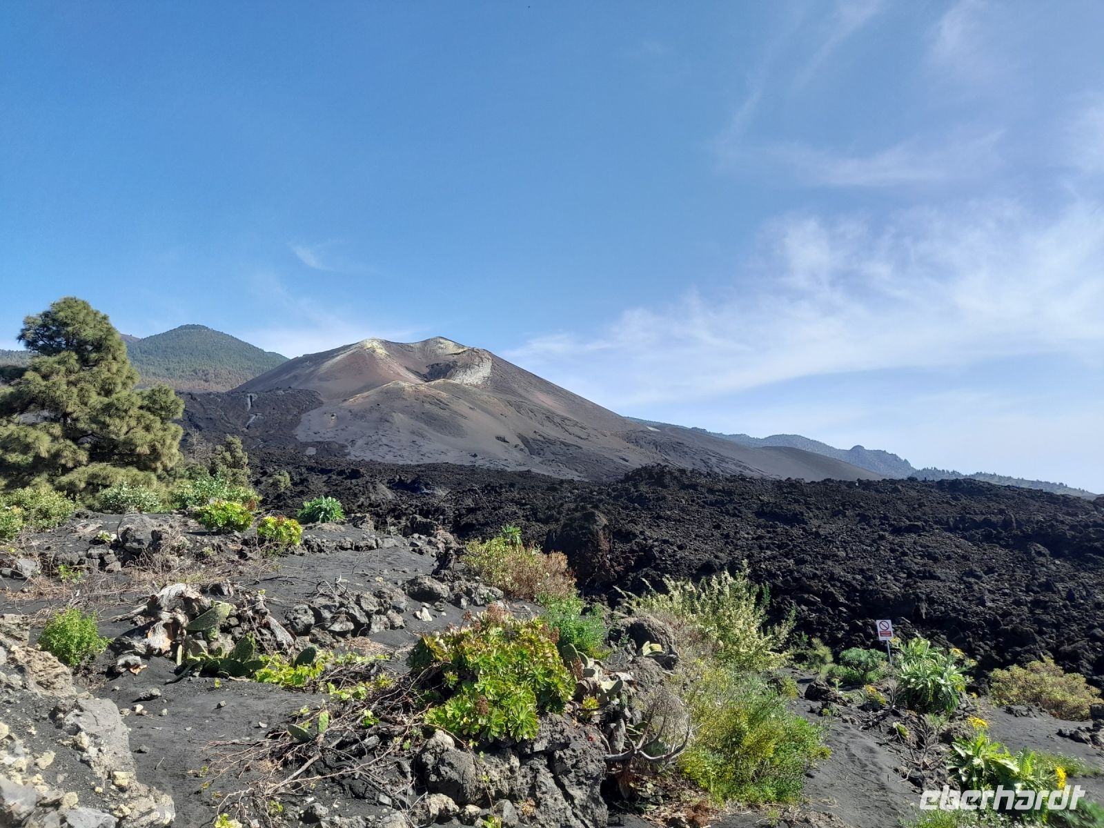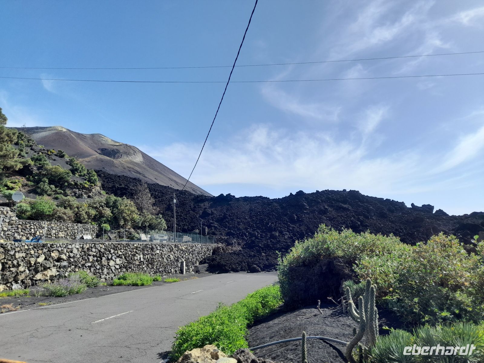 In Arnolds altem Dorf La Mancha haben wir dann den ersten Ausblick auf den Tajogaíte, der immerhin 1122 Meter hoch aufragt. Die Auswirkungen der Erruption sind hier unmittelbar sichtbar. Etwa 500 Meter von Arnolds altem Haus hört die Straße auf - ein Lavastrom von 3,5 Kilometer breite hat alles unter sich begraben: die Straße, Häuser, Bananenplantagen... wo vorher ganz normales Leben herrschte ist nun nichts mehr übrig. Solche Naturgewalten kann man sich wirklich nur dann vorstellen, wenn man es mit seinen eigenen Augen gesehen hat.