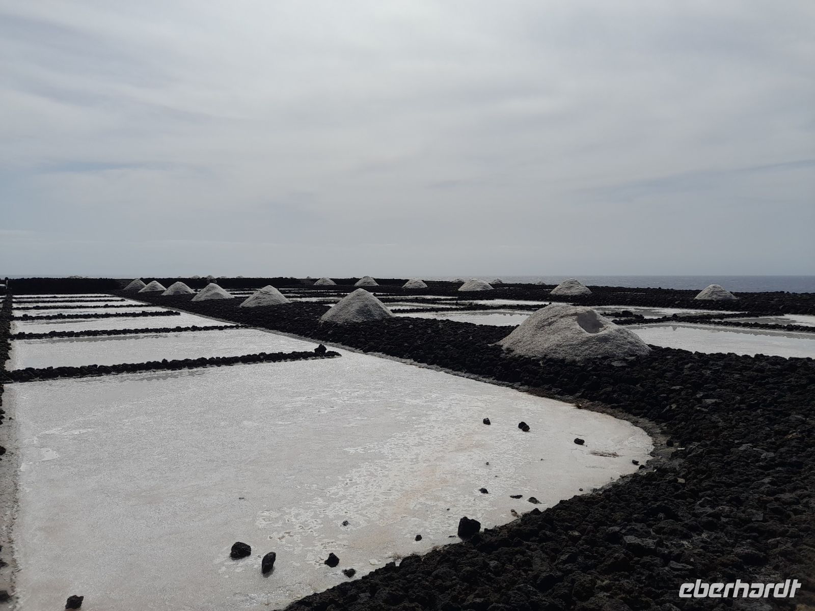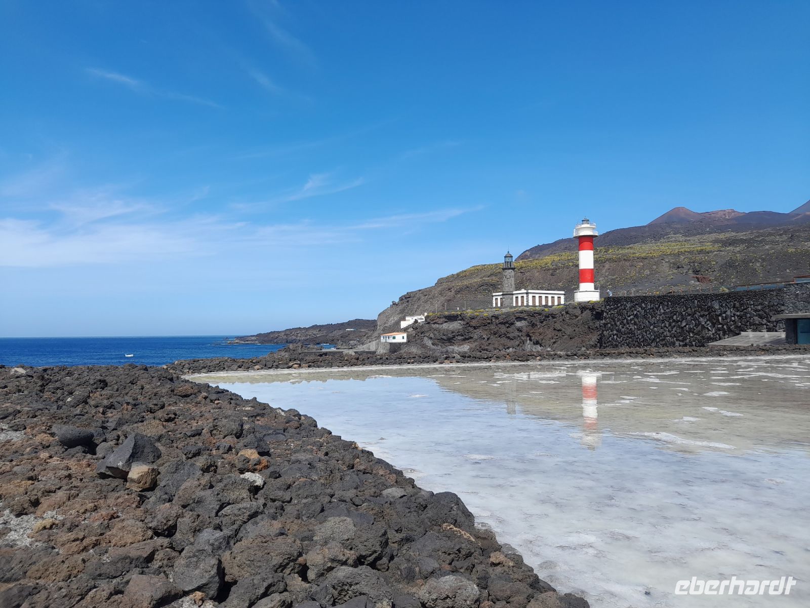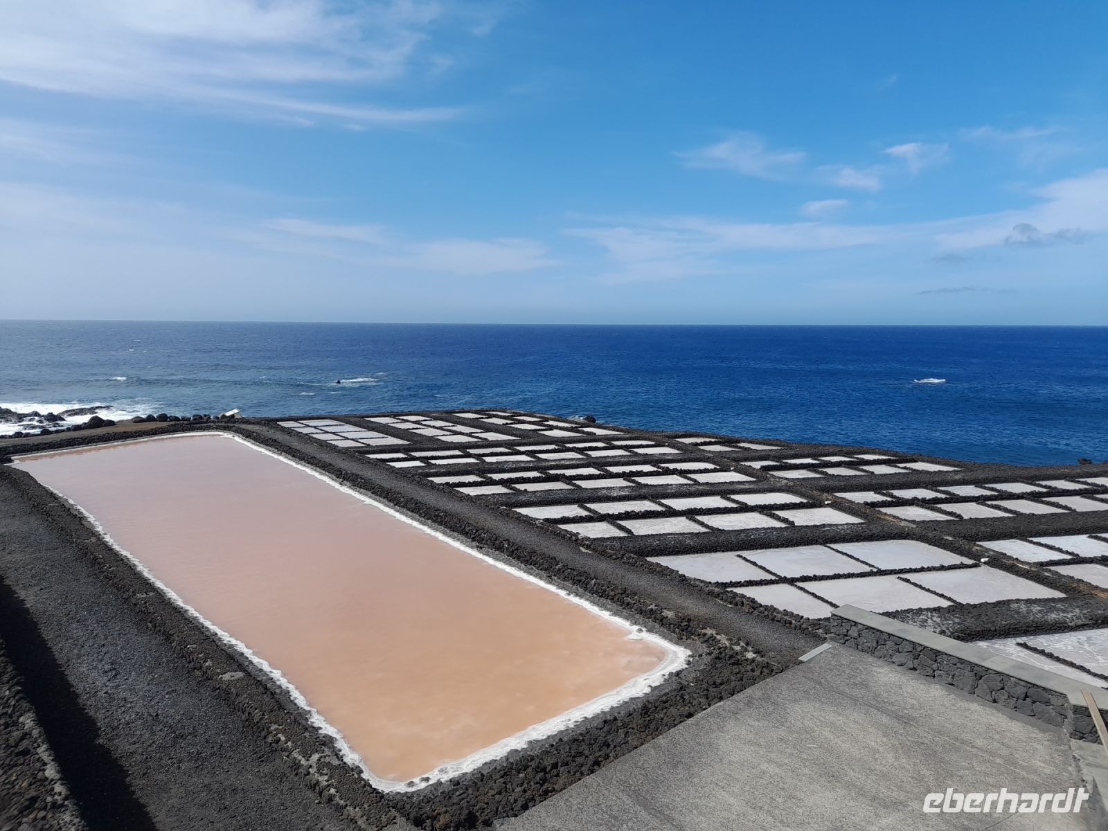 Unser erstes Ziel ist heute der beim Ausbruch 1677 entstandene Vulkan San Antonio. Auf dem Kraterrand wandern wir bis ans südlichste Ende und haben von hier eine tolle Aussicht auf die Südspitze der Insel und den zweitjüngsten Vulkan, den Teneguía. Hier strömte 1971 heiße Lava aus der Erde und vergrößerte die Insel in Richtung Meer. Arnold nutzt die Gelegenheit uns hier hautnah von den vulkanischen Aktivitäten auf La Palma zu erzählen, das ist doch noch einmal etwas ganz anderes, als wenn man sich nur theoretisch mit der Materie befasst. Zurück im Bus erzählt er uns dann auch von seinen ganz persönlichen Erlebnissen im Jahr 2021. Wir können kaum glauben, als er uns erzählt, dass er quasi im Epizentrum des Vulkanausbruchs gewohnt hat und fluchtartig mit seiner Familie sein Haus verlassen hat, weniger als 24 Stunden bevor der Vulkanausbruch nur etwa 500 Meter von seinem Haus stattgefunden hat - die Sachverständigen hatten kurz zuvor noch Entwarnung geben... Bevor wir uns die Auswirkungen des Ausbruchs jedoch von ganz nah ansehen dürfen, legen wir noch einen Stopp ein bei den Salinen von Fuencaliente. Hier können wir bei einem kleinen Rundgang die Aussicht genießen und die bizarren Lavaformationen bestaunen, die der Teneguía hinterlassen hat.