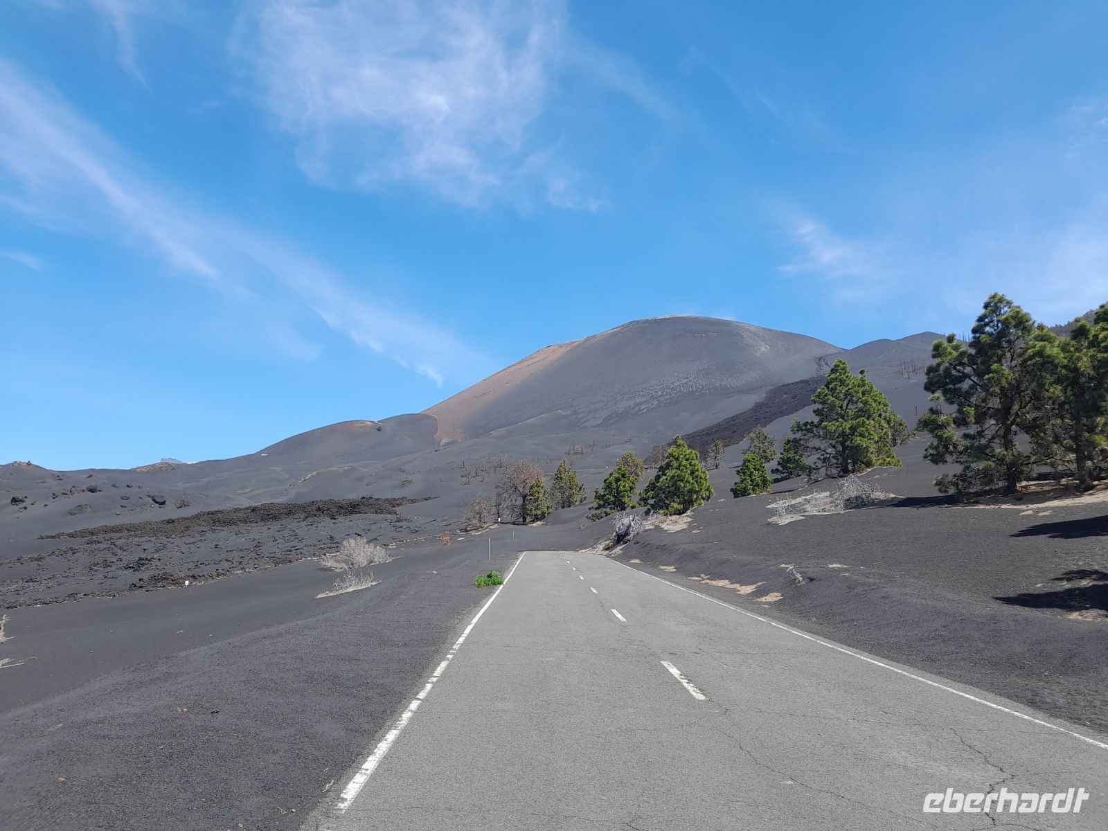 Da die Straße nicht mehr existiert, fahren wir nun über eine neue Behelfsstraße weiter nach Tazacorte. Im Zentrum der Bananenindustrie machen wir am Strand eine Mittagspause, bevor es wir dann die andere Seite der alten Straße befahren, um von dort aus noch einen besseren Blick auf den neuen Vulkankrater zu bekommen.