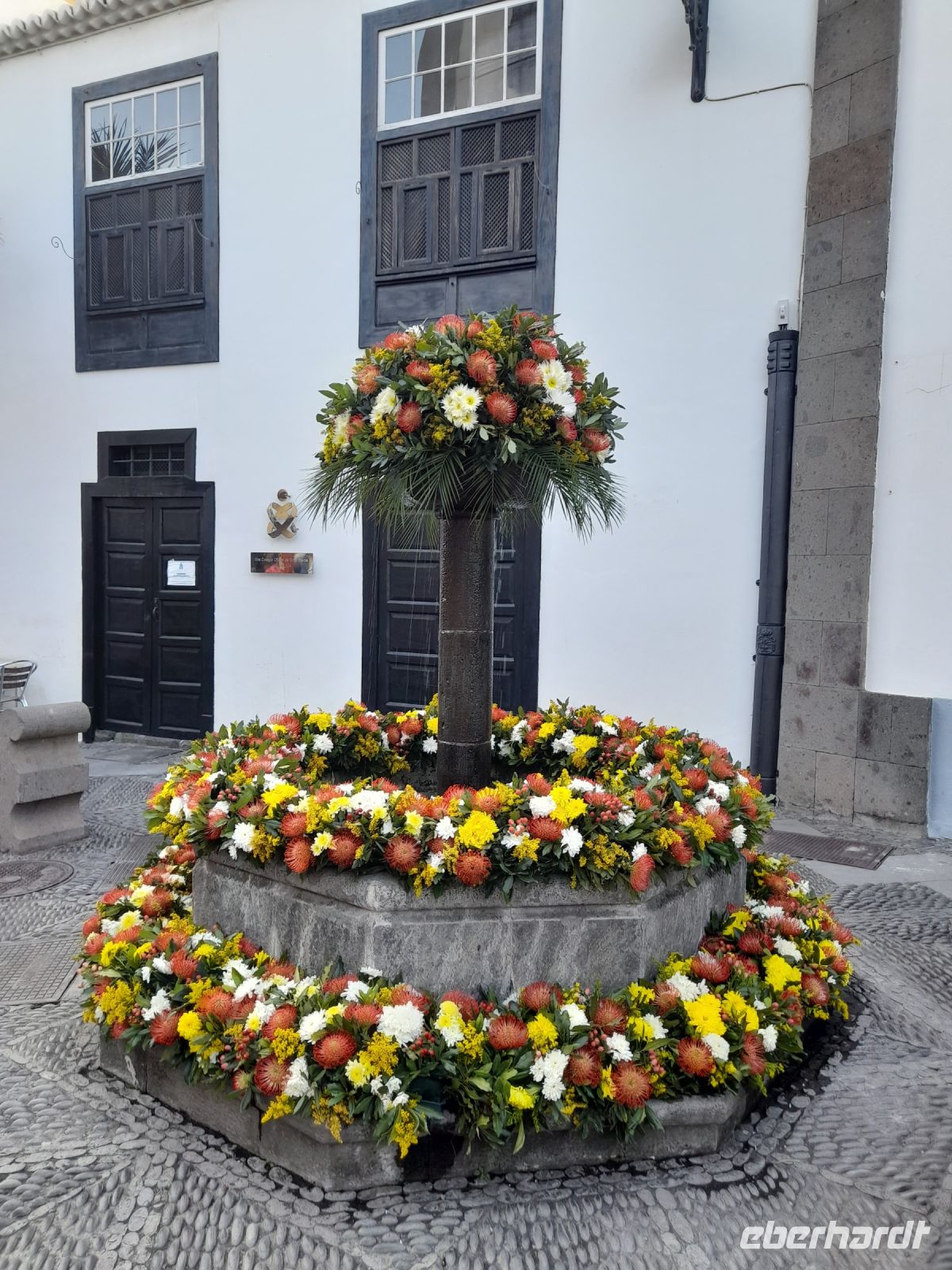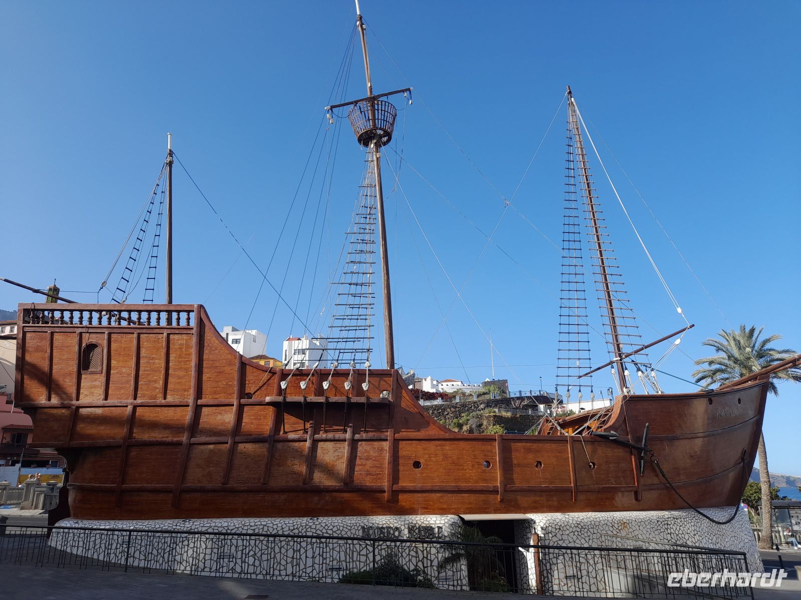 Am Nachmittag geht es dann zurück in Richtung der Hauptstadt Santa Cruz. Wir legen noch einen kleinen Stopp am Aussichtspunkt La Concepción ein und halten an der Wallfahrtskapelle Nuestra Señora de las Nieves, bevor es wir im Zentrum ankommen. Dort machen wir noch einen Spaziergang zu Fuß. Als erstes begegnen wir einer Reproduktion des Schiffes Santa María mit welchem Kolumbus 1492 in die neue Welt aufbrach. Das Schiff repräsentiert die Seefahrt und erinnert an die, die fortgingen. Von hier aus führt uns die Fußgängerzone vorbei an prächtigen Stadthäusern, die eine südamerikanische Atmosphäre verbreiten. Überall sitzen die Einheimischen in Straßencafés und zahlreiche Butiken sorgen immer wieder dafür, dass sich unser Tempo verlangsamt. Hier könnte man gut noch ein wenig verweilen, doch mittlerweile ist es schon spät geworden und so müssen wir uns wohl oder übel auf den Rückweg zu unserem Hotel machen.