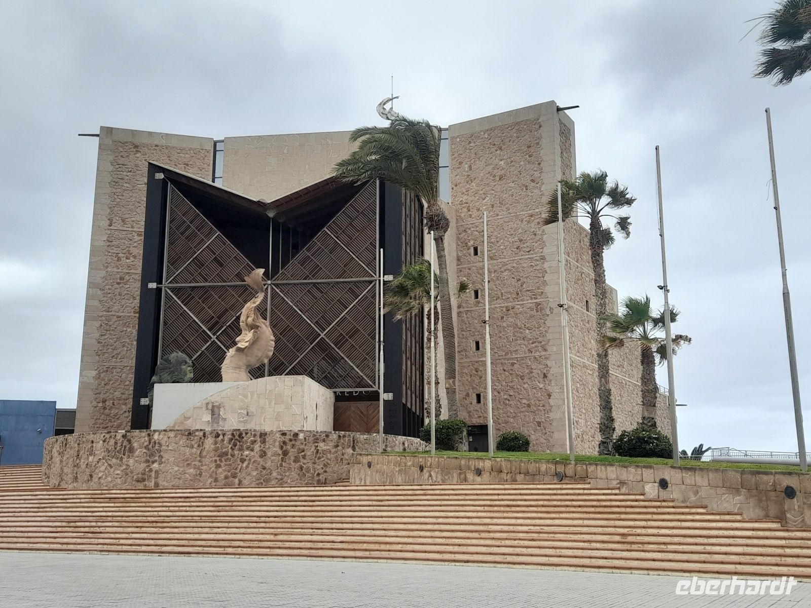 Nach dem Frühstück treffen wir heute auf unsere Reiseleiterin María, bis wir allerdings auf unseren Bus treffen soll noch eine ganze Weile vergehen – warum wir schlussendlich mit etwa 45 Minuten Verspätung zu unserem Tagesprogramm starten, soll jedoch bis zum Ende der Reise ein Rätsel bleiben. Glücklicherweise hat María neben ihrem Wissen über ihre Heimat auch eine ganze Menge Humor und schafft es relativ schnell mit ihrer charmanten Art, im Bus wieder gute Laune zu verbreiten. Während wir Richtung Las Palmas fahren, informiert sie uns wortgewandt über Land und Leute. Die Hauptstadt sehen wir auf der Fahrt entlang der Küste und haben wenig später auch eine tolle Aussicht beim Fotostopp an der berühmten Konzerthalle Auditorio Alfredo Kraus. Heute erleben wir auch zum ersten Mal was es heißt, wenn man erzählt bekommt, dass es auf den Kanaren häufig bewölkt ist – unser Glück mit dem Wetter hat tatsächlich einen völlig falschen Eindruck hinterlassen. Doch tatsächlich sollen sich auch heute die Wolken gegen Mittag wieder verziehen.