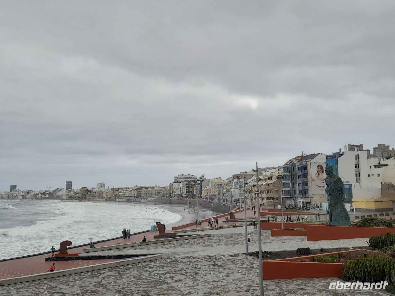 Schweren Herzens müssen wir uns schon nach zwei kurzen Tagen von der Isla Bonita und unserem Hotel verabschieden. Nach dem Frühstück fahren wir mit dem Bus die kurze Strecke zum Flughafen von La Palma und checken ein für unseren kurzen Flug auf unsere letzte Insel: Gran Canaria. Nach einer knappen Stunde setzen wir schon zur Landung am Flughafen der Hauptstadt Las Palmas an. Schon bei der Landung merken wir auch, dass die Passatwinde, von denen man hier so häufig spricht, die Insel tatsächlich deutlich beeinflussen.