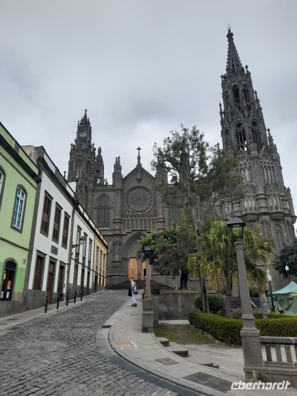 Zunächst fahren wir jedoch weiter in den hübschen Bergort Arucas, der vor allem für seine erst 1977 fertiggestellte neogotische Kirche bekannt ist. Das Gotteshaus ist so überproportional groß und auffällig, dass es auch gerne „Kathedrale“ genannt wird, obwohl der einzige Bischofssitz der Insel natürlich in Las Palmas ist. Bei einem kleinen Stadtrundgang lernen wir unter anderem, dass auf Gran Canaria der tatsächliche Ursprung des spanischen Bürgerkriegs zu finden ist und man sich hier in Arucas ganz bewusst daran erinnert, damit so ein historischer Fehler nie wieder geschehen kann.