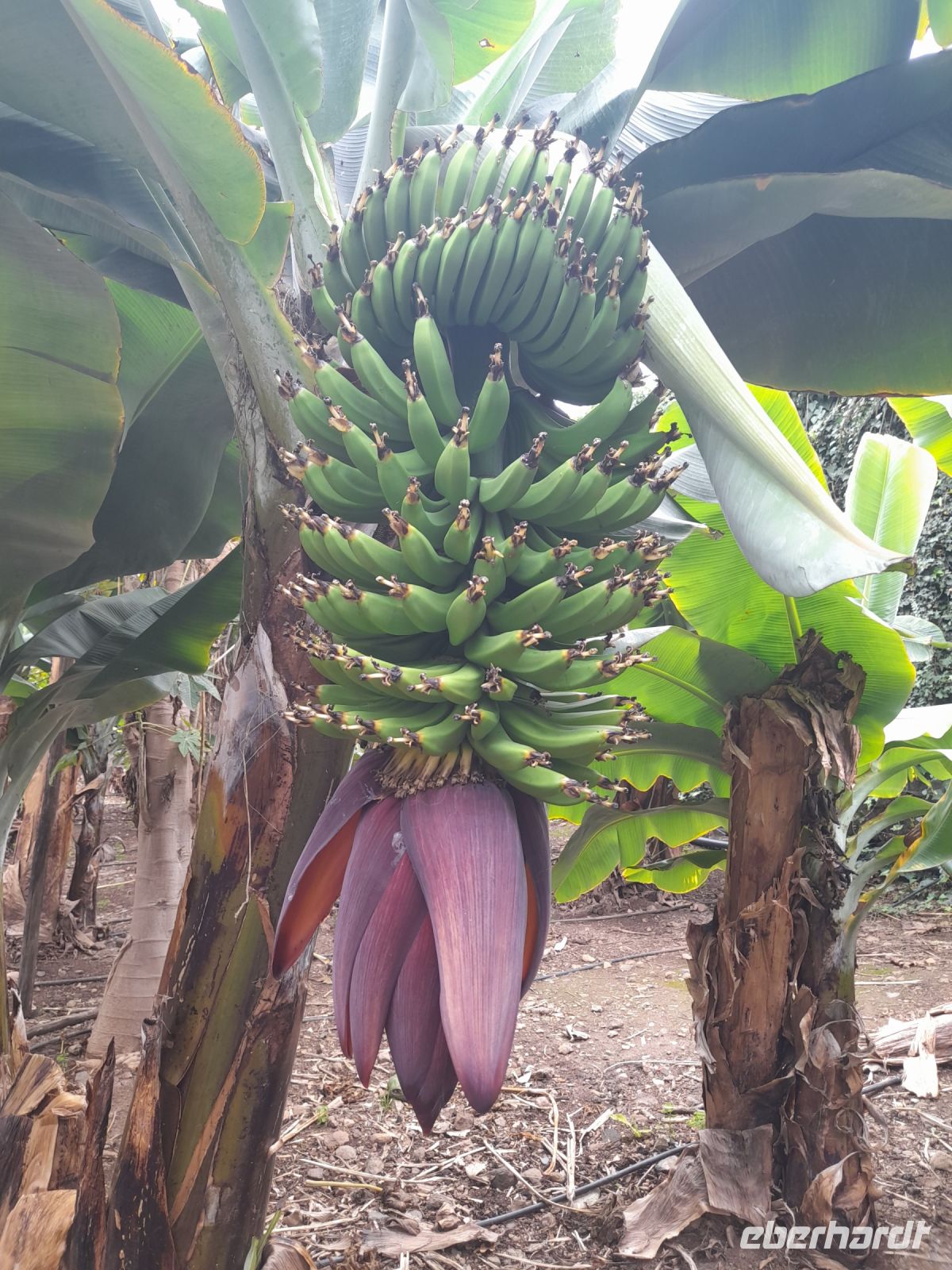 Unsere Rundfahrt führt uns weiter, vorbei an der Inselhauptstadt Santa Cruz, in den Nordwesten. Die Landschaft ist hier aufgrund der häufigen Bewölkung sehr viel grüner und üppiger. Nach den ersten Weinbaugebieten erreichen wir dann die Gegend von La Orotava, Garten Teneriffas. Hier wird das meiste Obst und Gemüse der Insel in mühevoller Handarbeit produziert. Dominiert wird das Landschaftsbild durch Bananenplantagen soweit das Auge reicht.