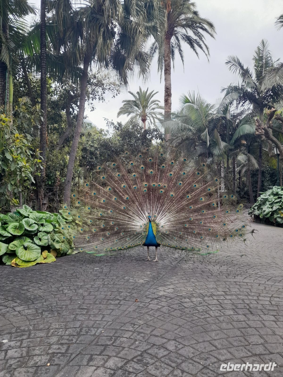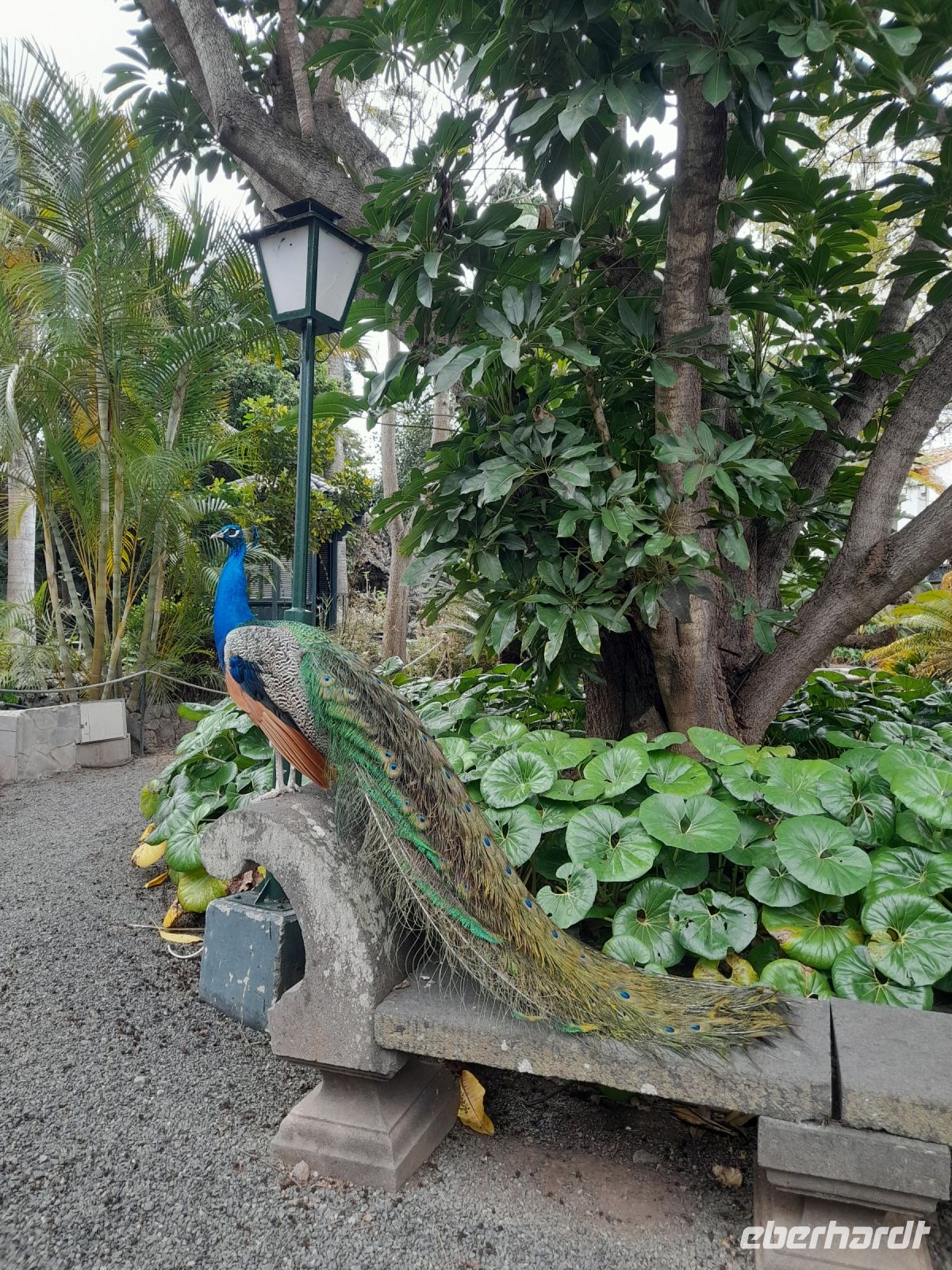 Auf unserer Weiterfahrt passieren wir die örtliche Rum-Fabrik und landen schließlich im sogenannten „Garten der Gräfin“. Der kleine botanische Garten ist auf Initiative einer reichen Familie entstanden, die hier ihre Finca hatte. Man brachte Pflanzen und Samen aus der ganzen Welt hier her und schuf damit ein wahrliches Kleinod. Neben Bananenstauden können wir hier Kakteen, Palmen, Drachenbäume und zahlreiche Blumen bestaunen – für eine extra Showeinlage sorgen unzählige Pfauen, die scheinbar nur auf uns gewartet haben, um für uns um die Wette zu schreien.