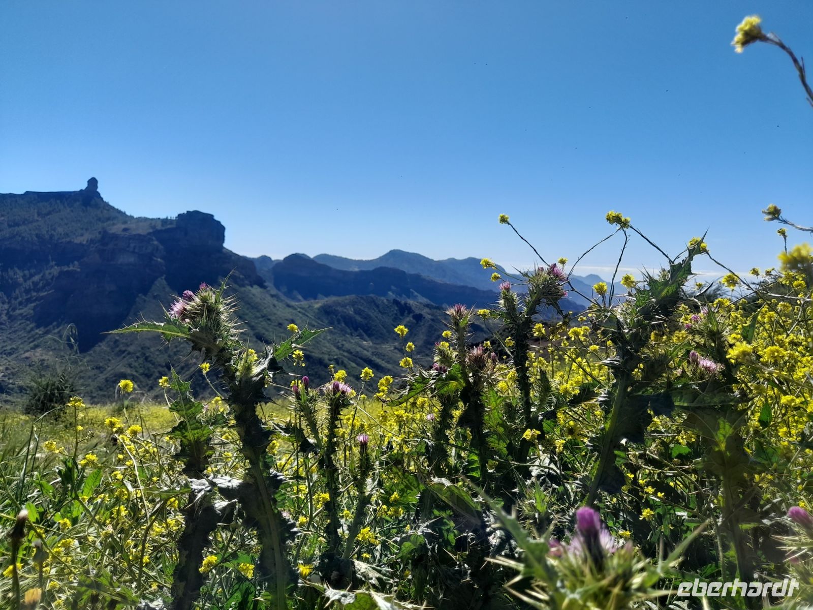 Unsere Mittagspause verbringen wir dann mit herrlicher Aussicht ins Tal und lokalen Spezialitäten, bevor wir weiter ins Gebirge fahren. Am Cruz de Tajada lassen wir auf rund 1500 Metern den höchsten Pass der Insel hinter uns und nähern uns den interessanten Felsformationen des Roque Nublo.