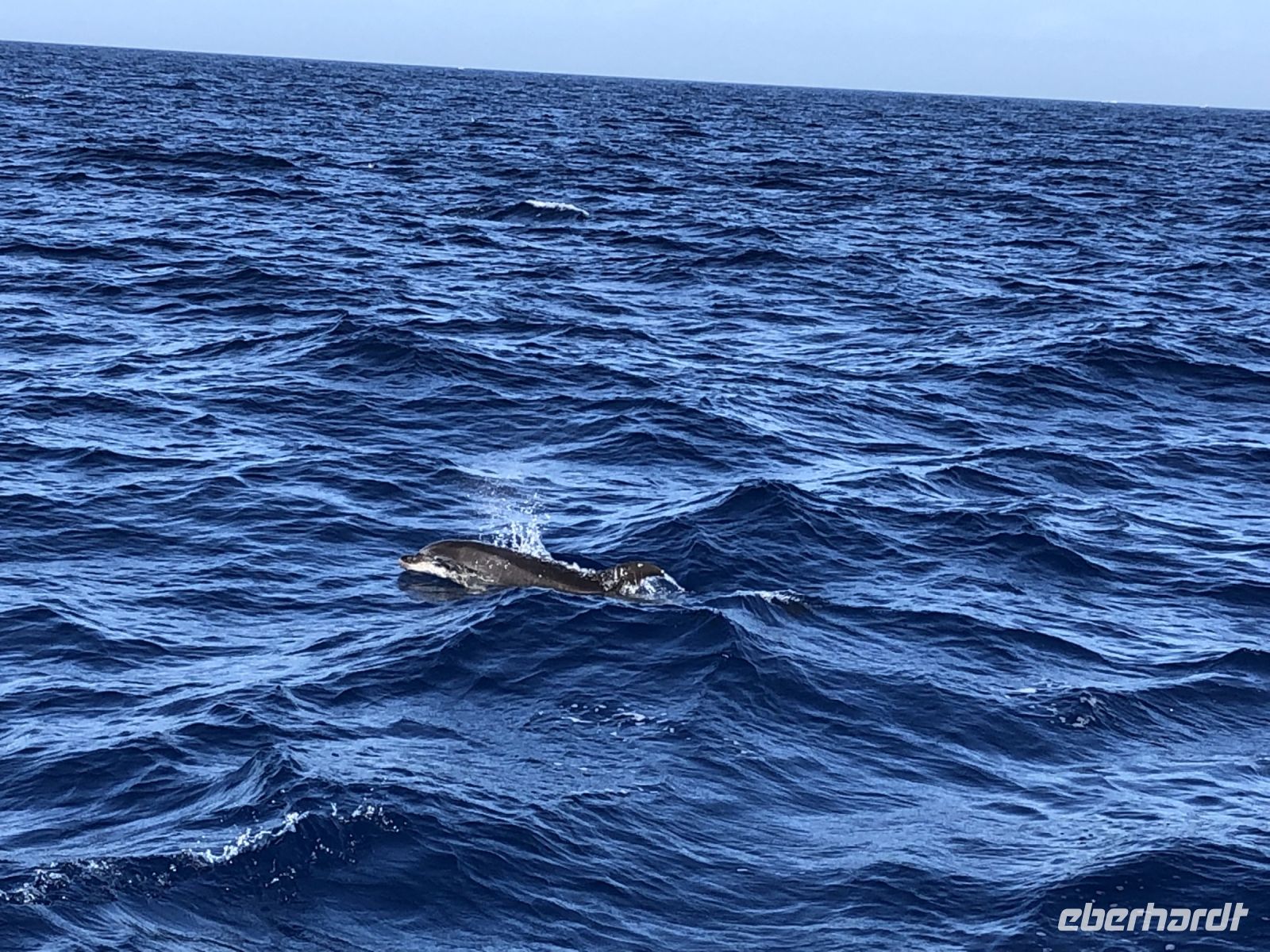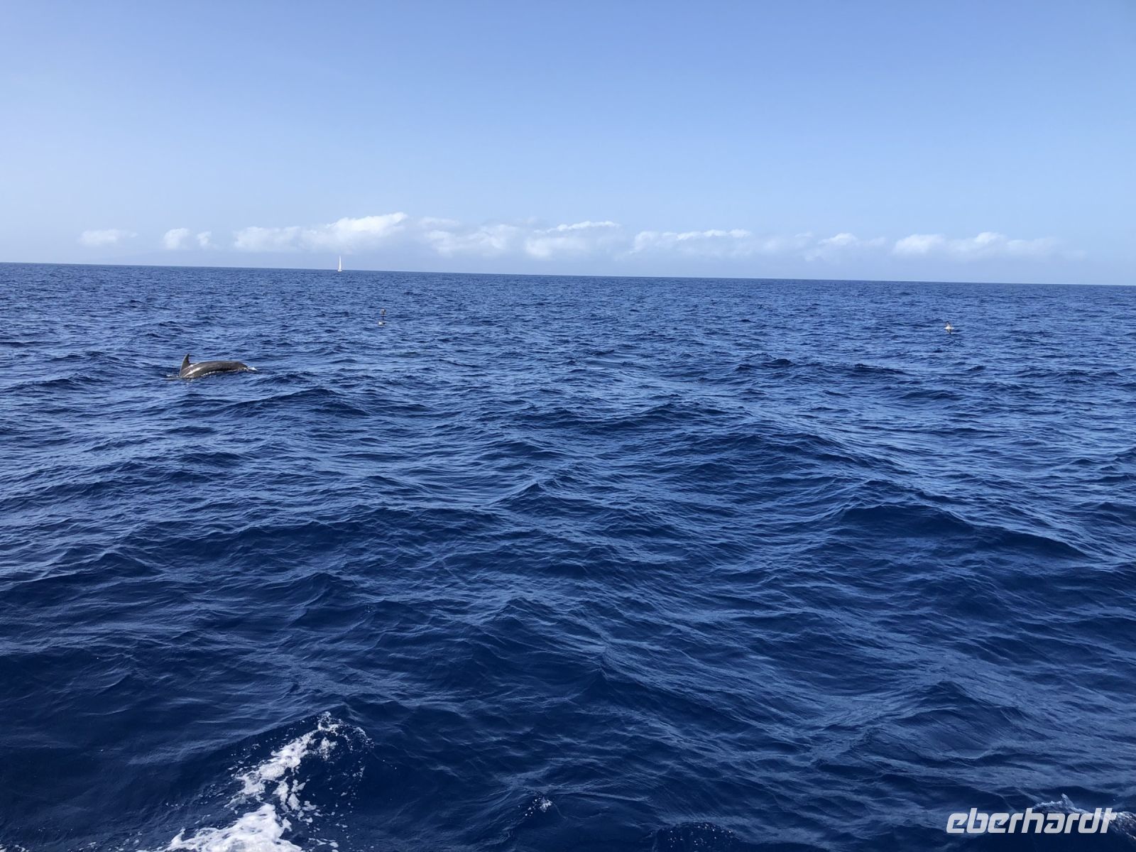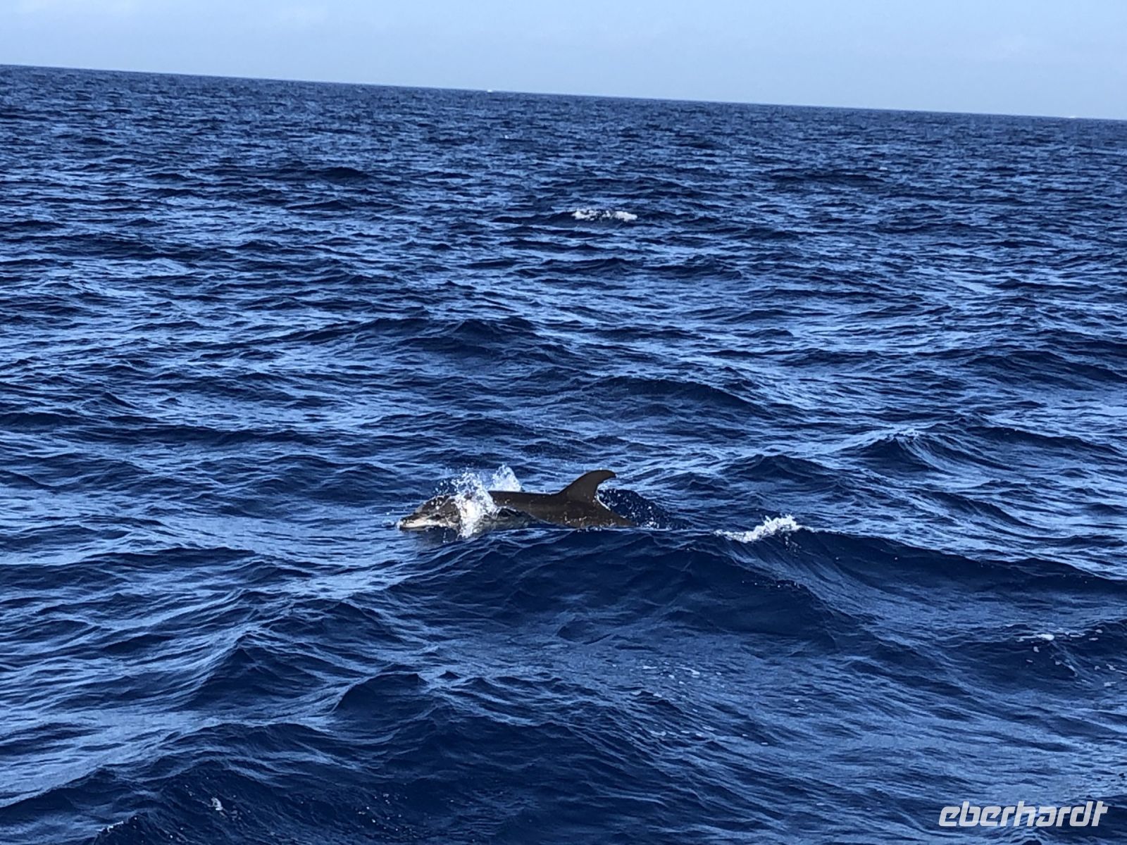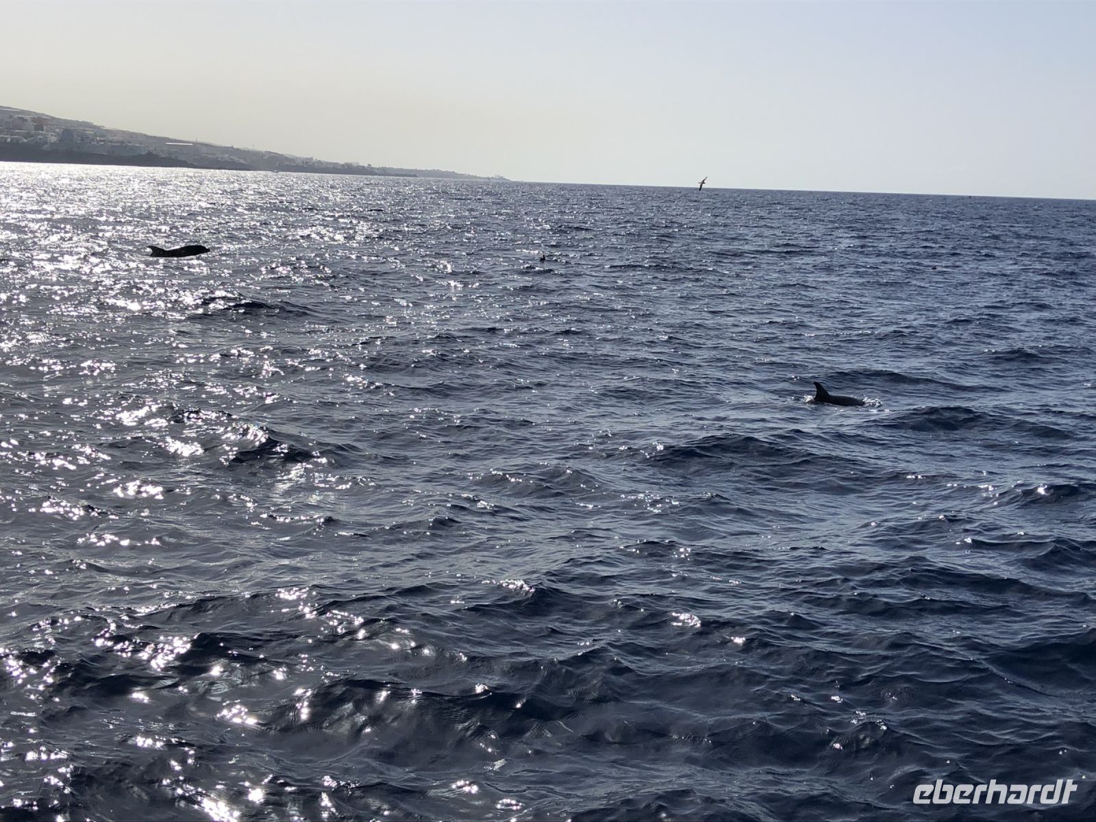 Eine ganze Gruppe Delfine hat auf uns gewartet und ist direkt zu uns gekommen. Glücklicherweise konnten wir sogar ein paar Tiere aus dem Wasser springen sehen, da sie die warme Temperatur genossen haben.