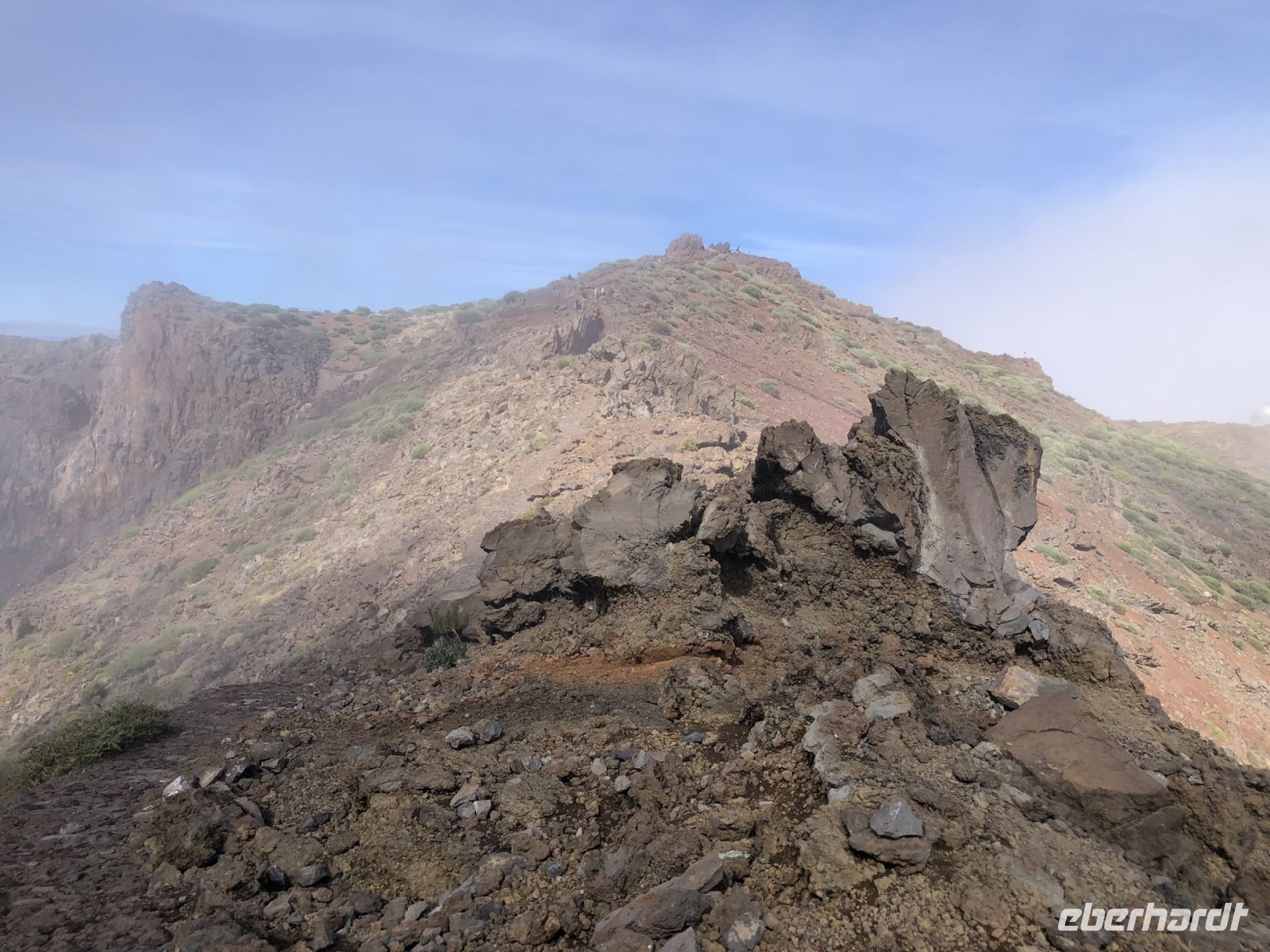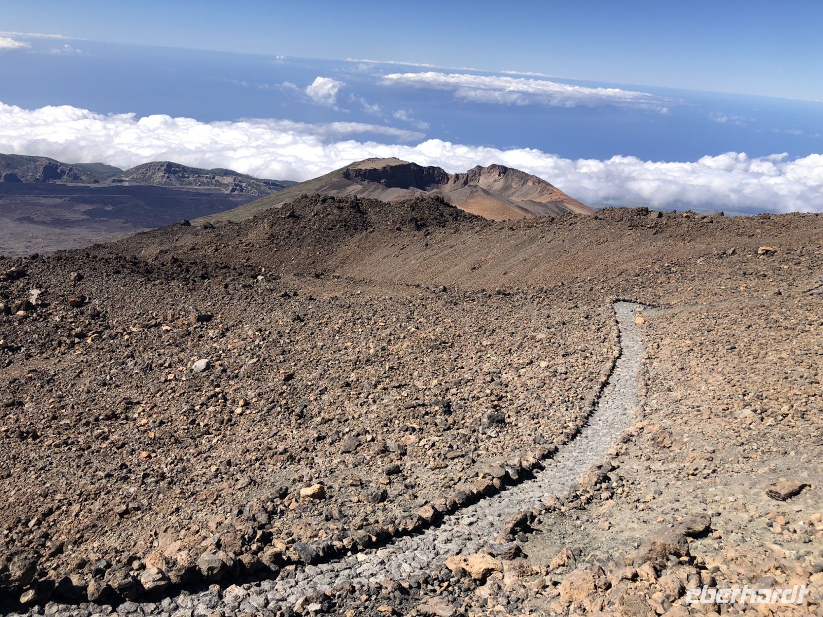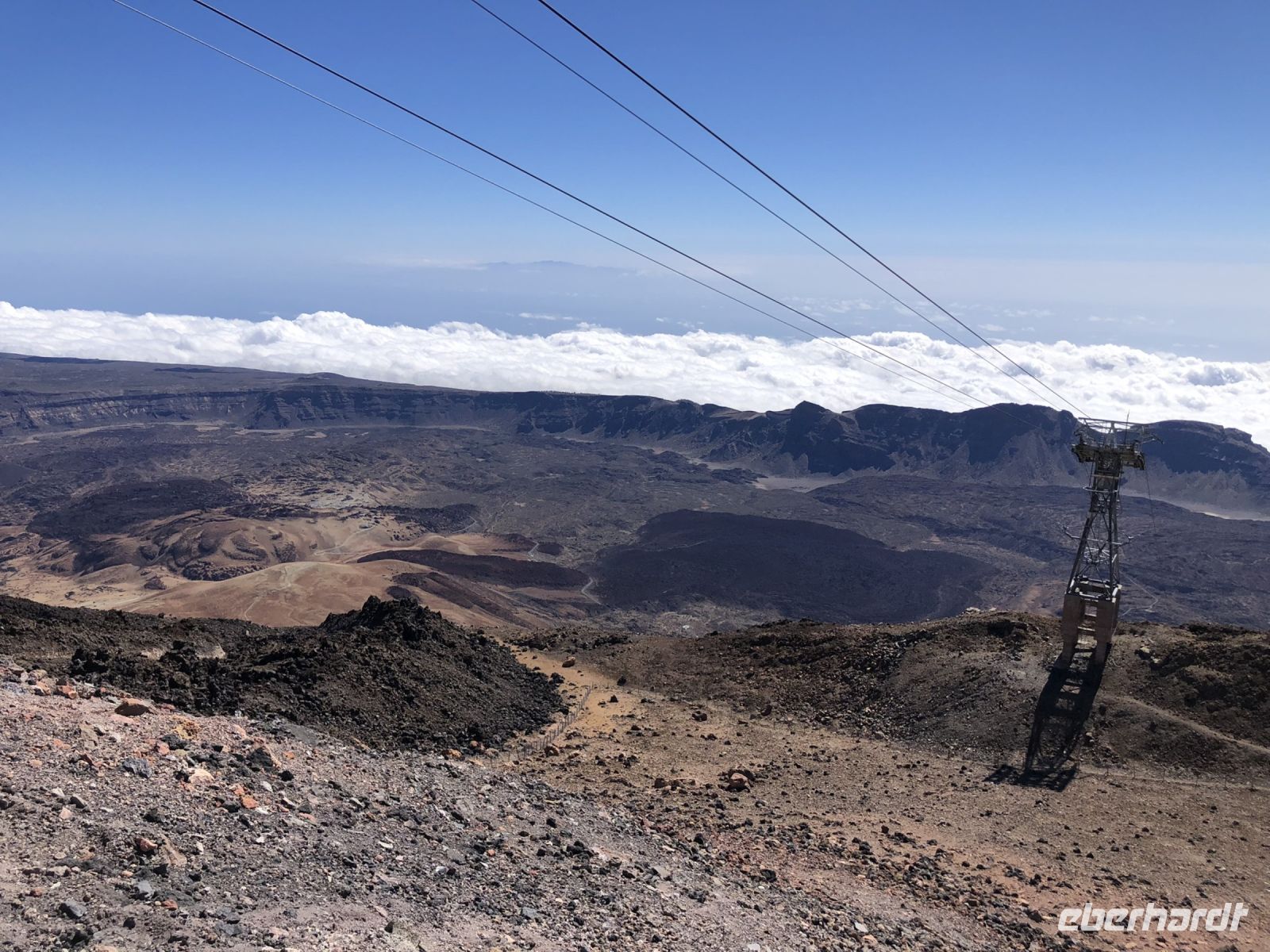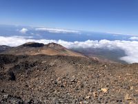 Oben angekommen, begannen wir eine kleine Wanderung zum Aussichtspunkt Pico Viejo, um den Krater von oben zu beachten. Im Hintergrund des Kraters hatten wir einen schönen Blick auf die Inseln La Gomera und La Palma. Auf der anderen Seite sahen wir die ganze Zeit die Bergspitze des Teide mit ihren 3718 Meter Höhe.