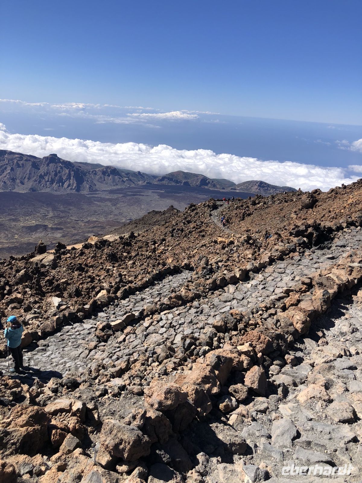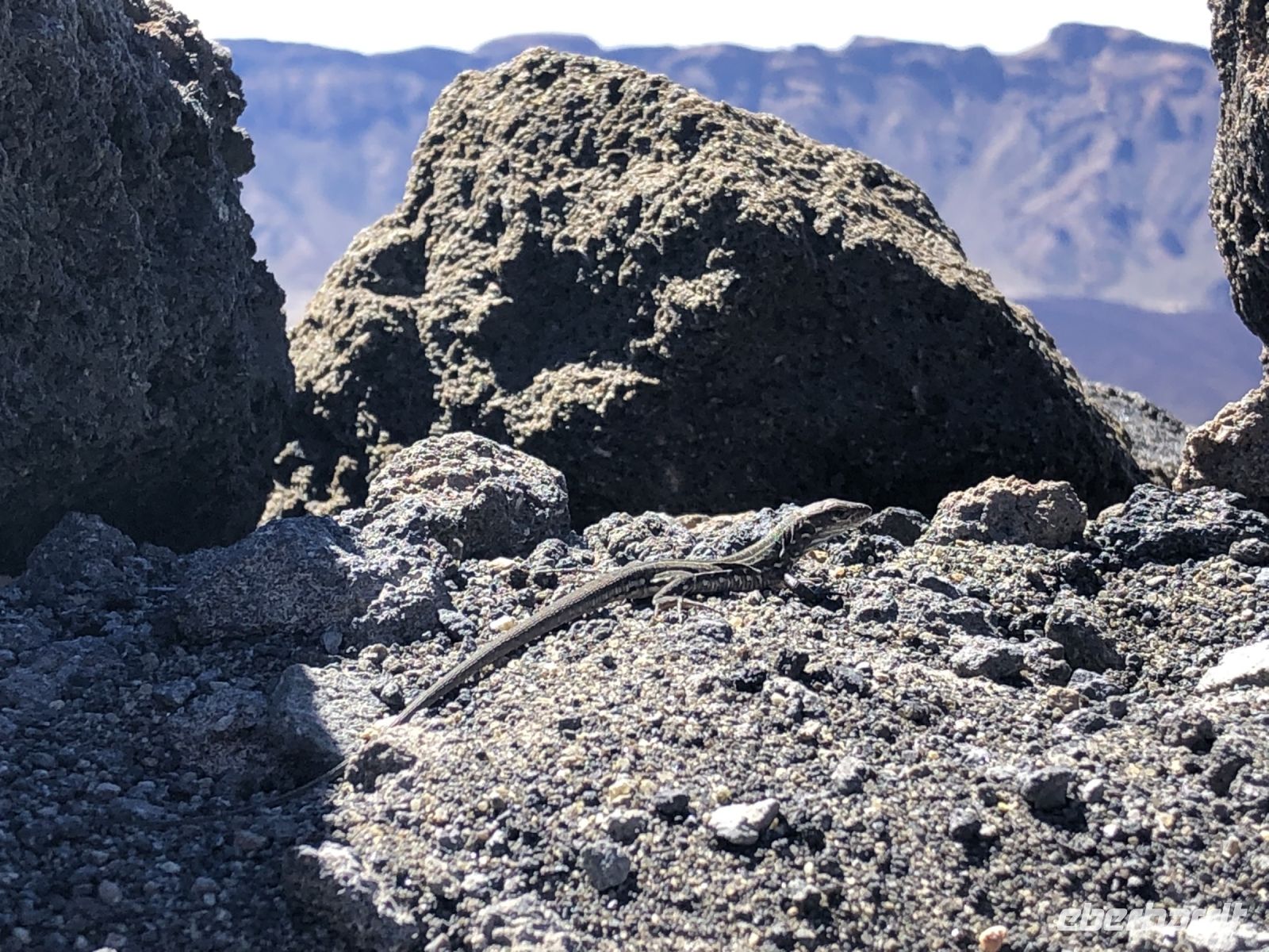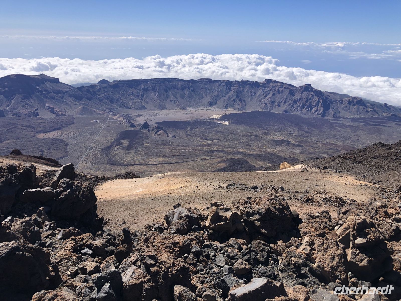 Oben angekommen, begannen wir eine kleine Wanderung zum Aussichtspunkt Pico Viejo, um den Krater von oben zu beachten. Im Hintergrund des Kraters hatten wir einen schönen Blick auf die Inseln La Gomera und La Palma. Auf der anderen Seite sahen wir die ganze Zeit die Bergspitze des Teide mit ihren 3718 Meter Höhe.