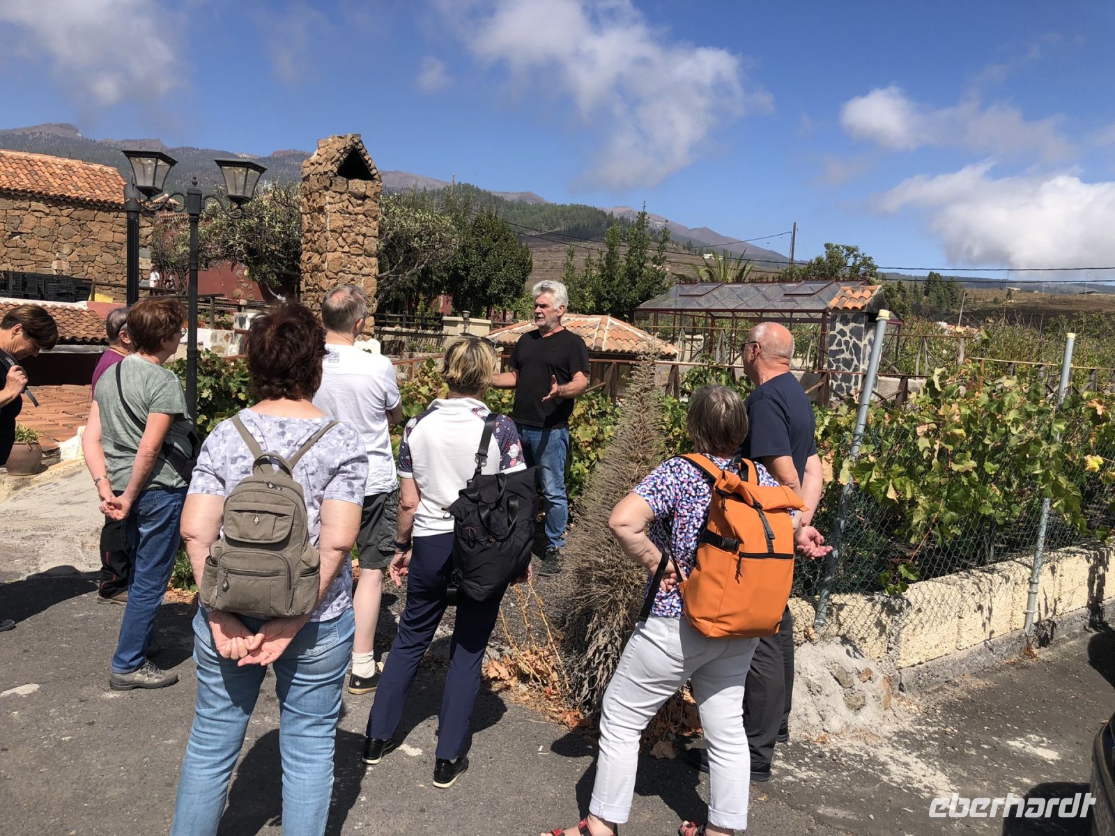 Wir sind mit dem Rauschen des Meeres aufgewacht und haben unser Frühstück genossen, bevor wir uns mit unserer örtlichen Reiseleiterin Christel getroffen haben. Mit ihr sind wir anschließend in Richtung Süden gefahren. Erstmal entlang der Serpentinen bis zum Dorf Mazo, wo wir unseren ersten Fotostopp gemacht haben. Unterwegs haben wir viel über das lokale Leben gelernt und erreichten nach einiger Zeit den Vulkan San Antonio. Hier sind wir entlang des Kraters gelaufen mit tollen Ausblicken über den Vulkan Teneguia, die Weinfelder und die Bananenplantagen, die an der Küstenlinie liegen. Außerdem haben wir ein interessantes Video über den Vulkan San Antonio gesehen.