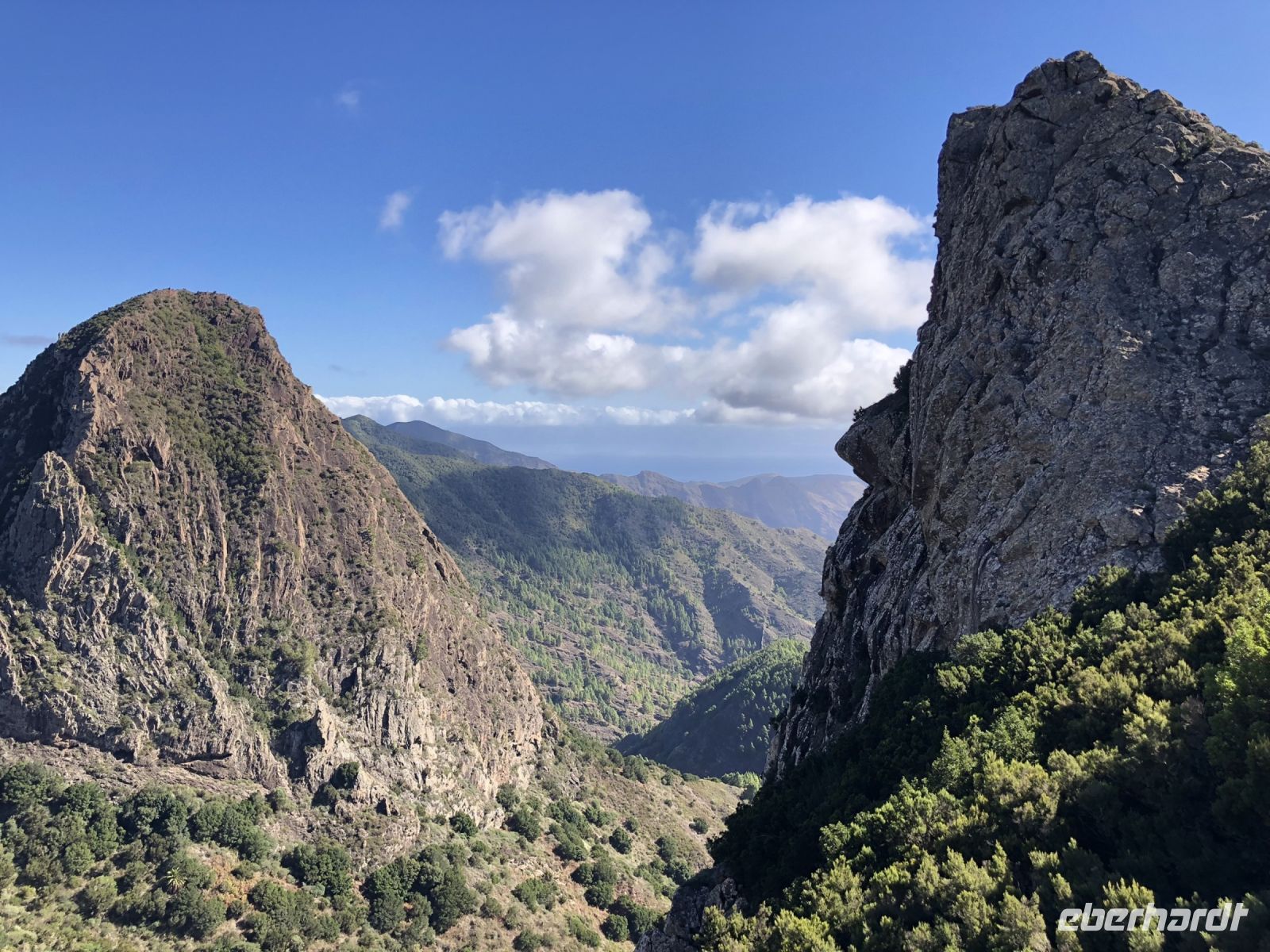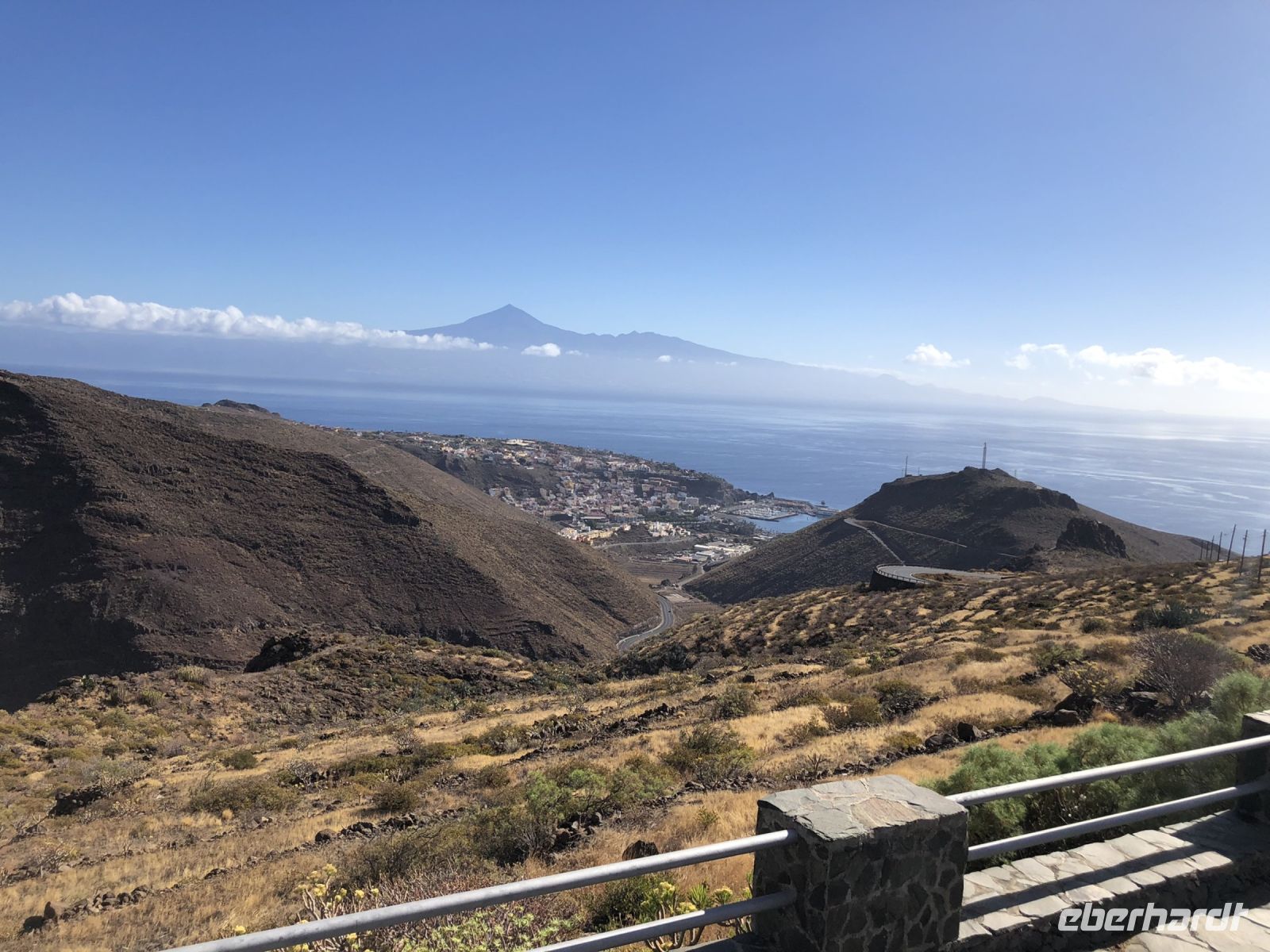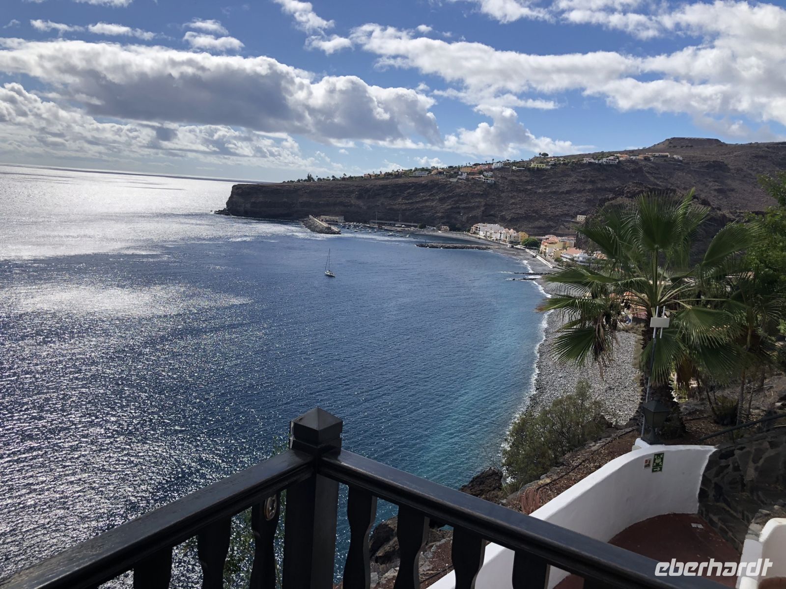 Heute sind wir etwas früher aufgestanden und haben im Hotel gefrühstückt, bevor es los in Richtung Hafen von Los Cristianos ging. Dort nahmen wir die Fähre nach La Gomera, die zweite Insel unserer Reise. Auf La Gomera haben wir unsere Reiseleiterin Melanie begrüßt und sind mit ihr vom Meeresniveau bis auf 1.300 Meter Höhe gefahren. Unterwegs hatten wir unterschiedliche Aussichtspunkt mit eindrucksvollen Ausblicken nach Teneriffa.