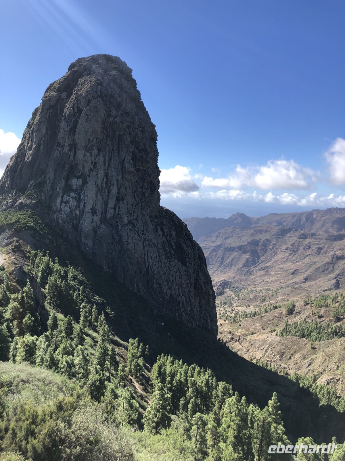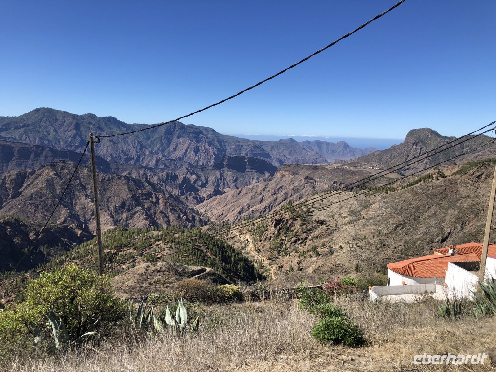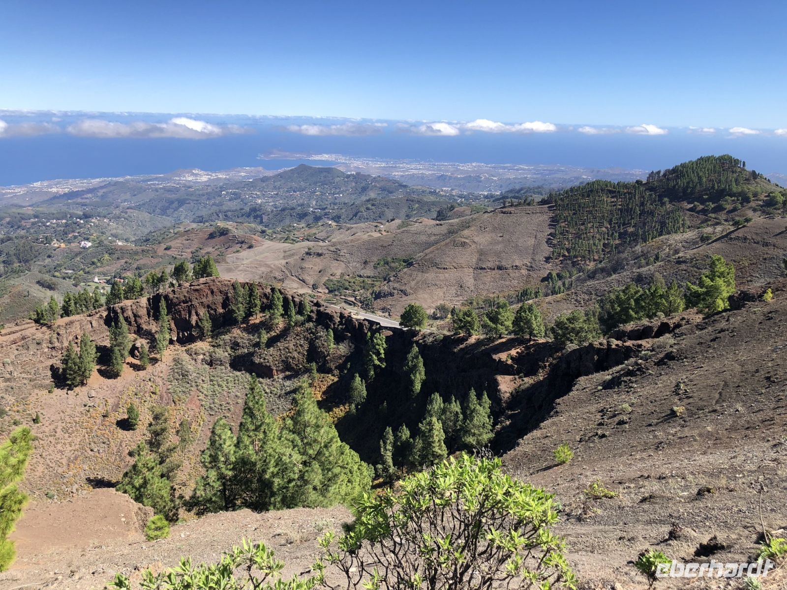 Die Fahrt ging weiter durch einen Kiefernwald auf den höchsten Punkt der Insel mit einer fantastischen Aussicht zum Roque Nublo und dem Canyon. Unterwegs sahen wir die Hauptstadt Las Palmas ganz unten im Tal.