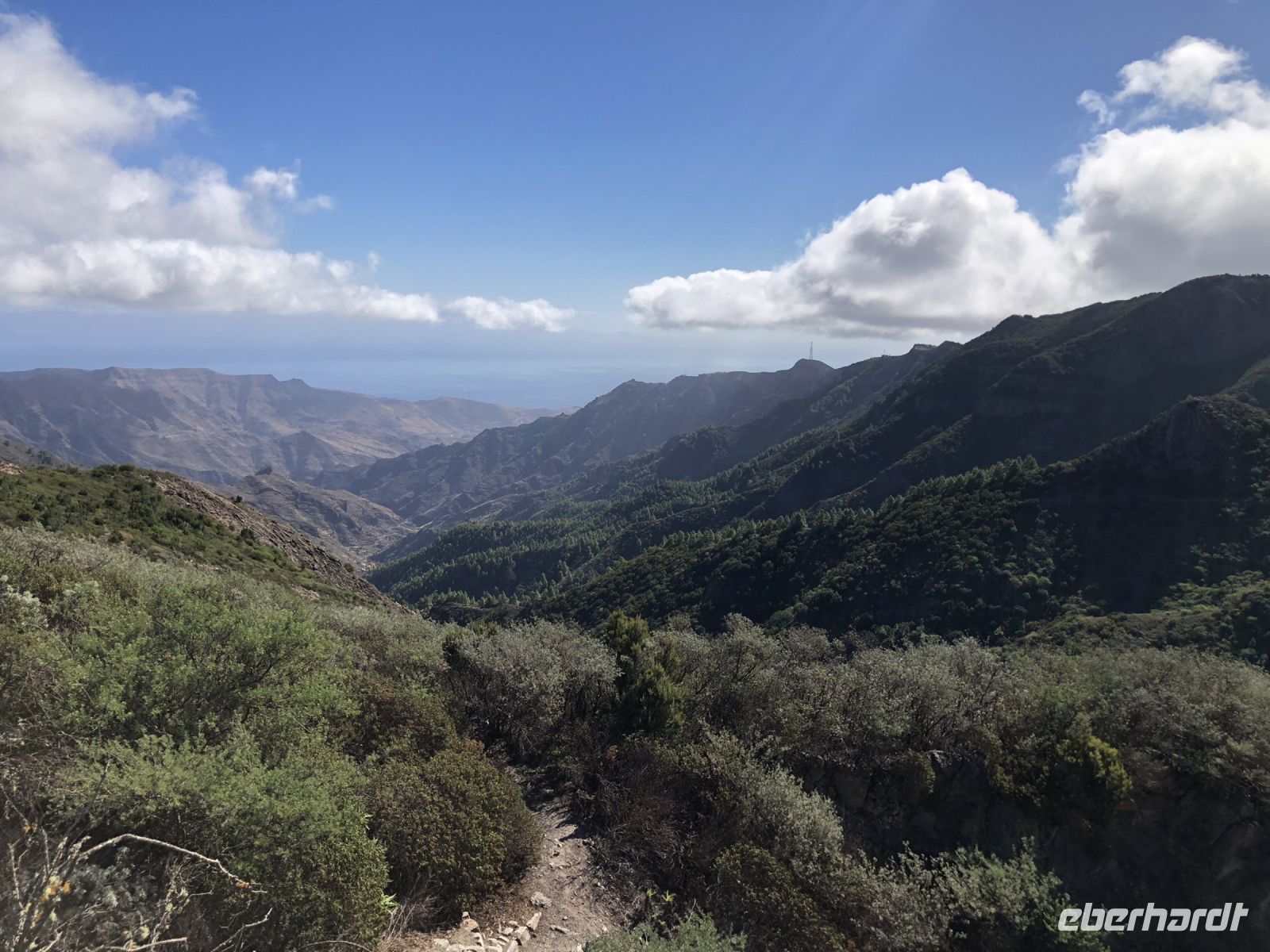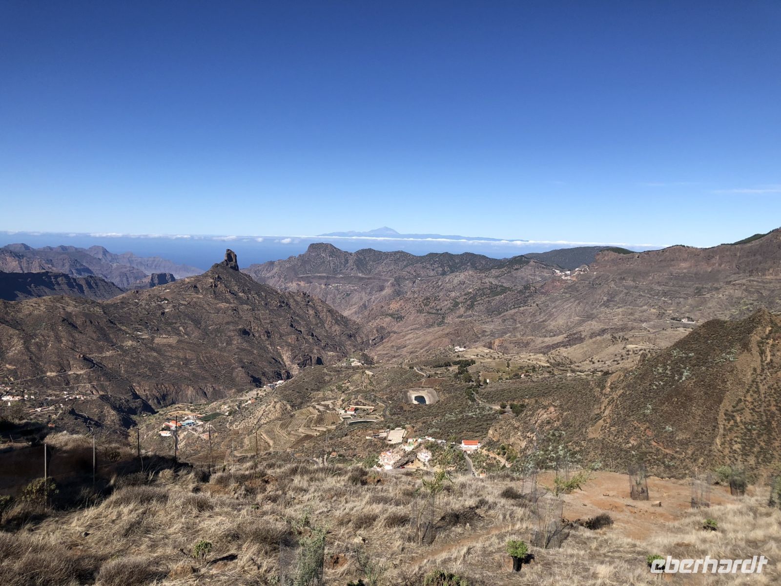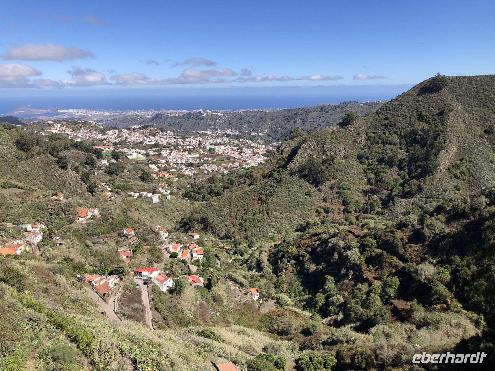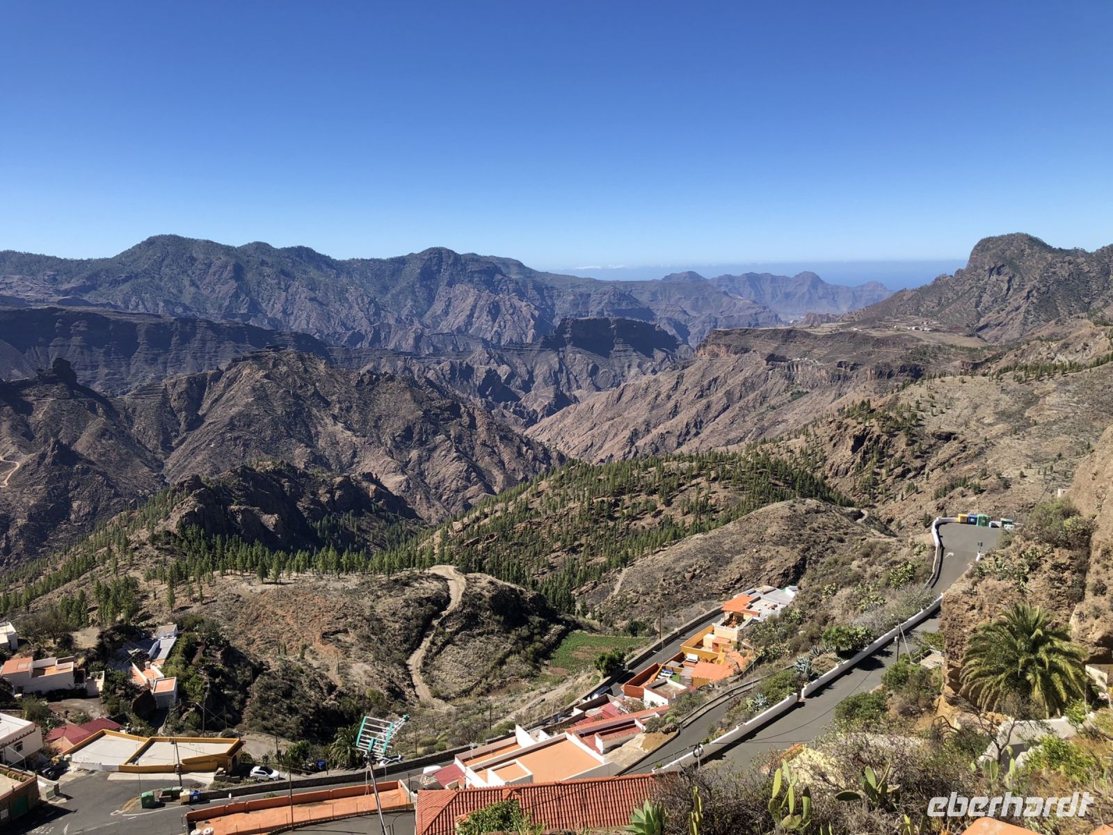 Die Fahrt ging weiter durch einen Kiefernwald auf den höchsten Punkt der Insel mit einer fantastischen Aussicht zum Roque Nublo und dem Canyon. Unterwegs sahen wir die Hauptstadt Las Palmas ganz unten im Tal.