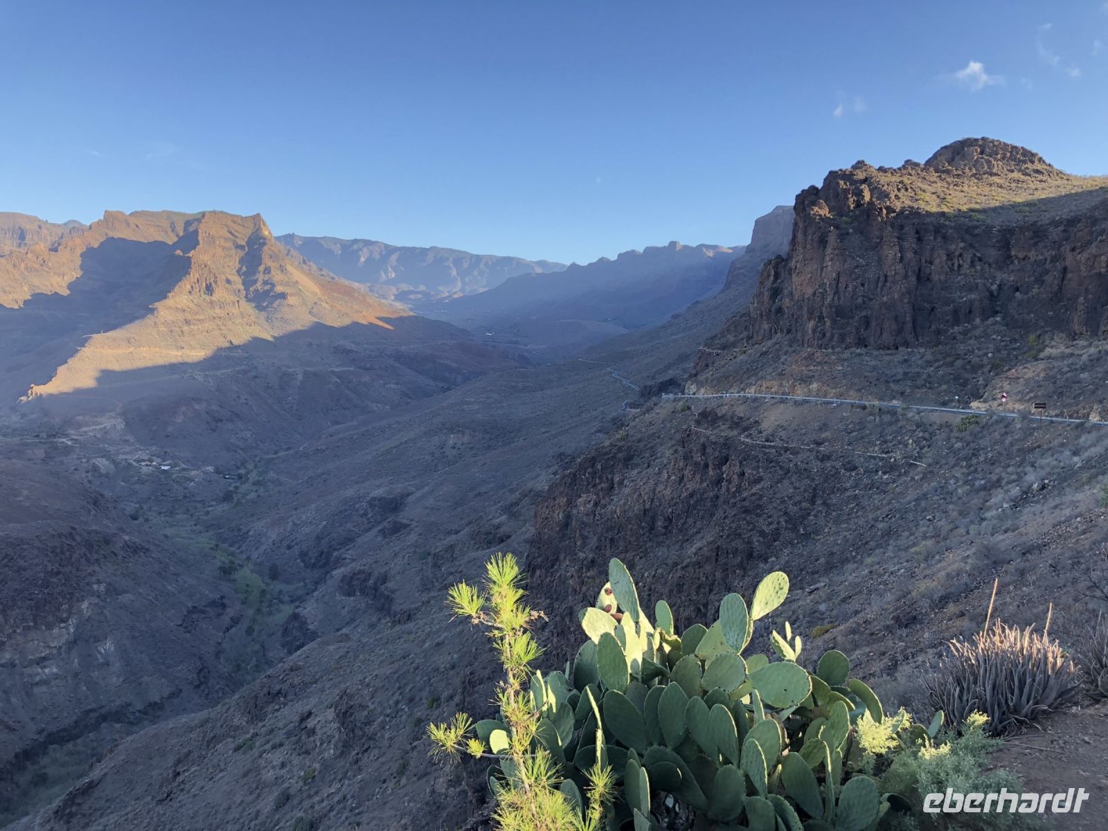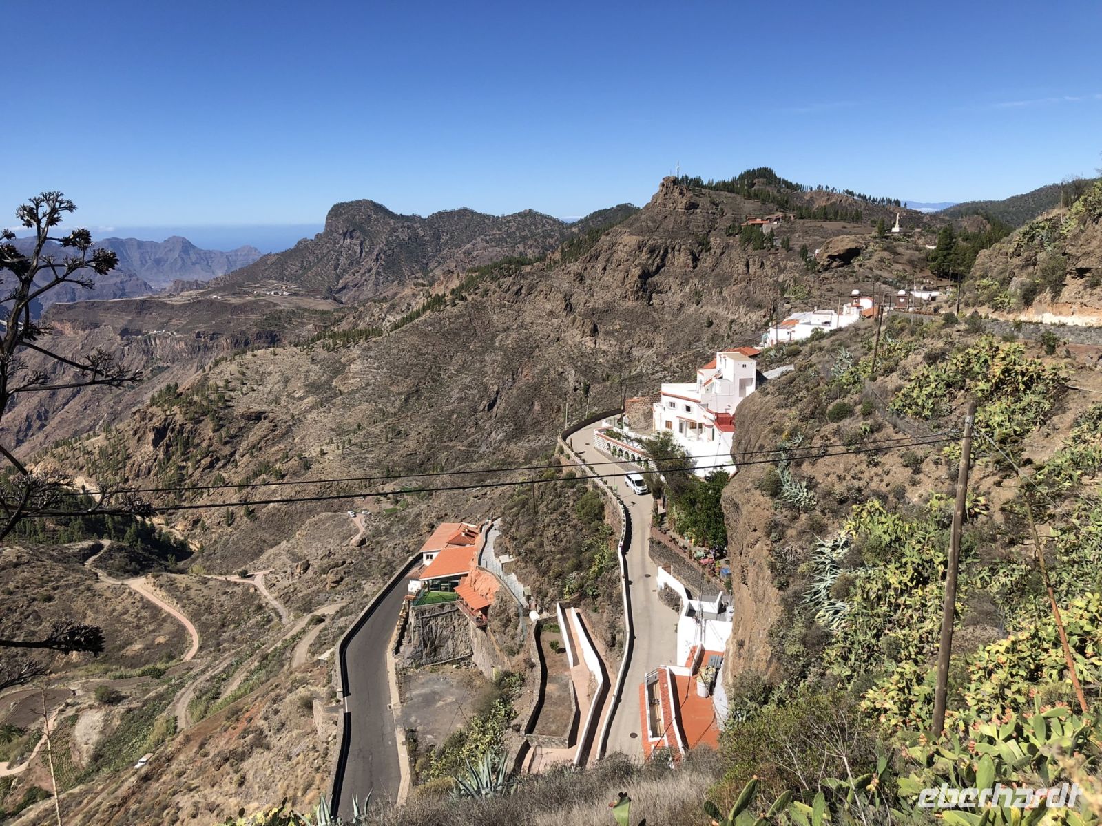 Dann sind wir durch die Serpentinenstraße des Canyons gefahren und fanden auf unserem Weg eine Oase mit Dromedaren, kanarische Palmen und einigen Citrus-Plantagen. Unterwegs haben wir auch das kleine Dorf Fataga durchquert und im ruhigen Dorf Tunte unseren Kaffee getrunken und das Ambiente genossen.