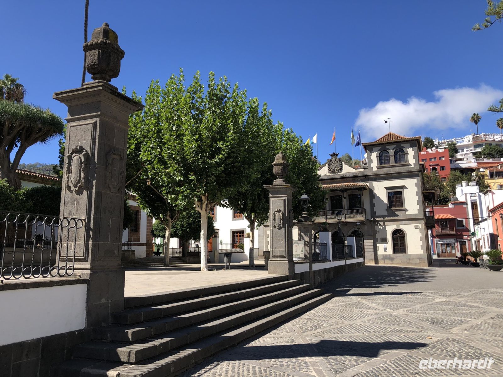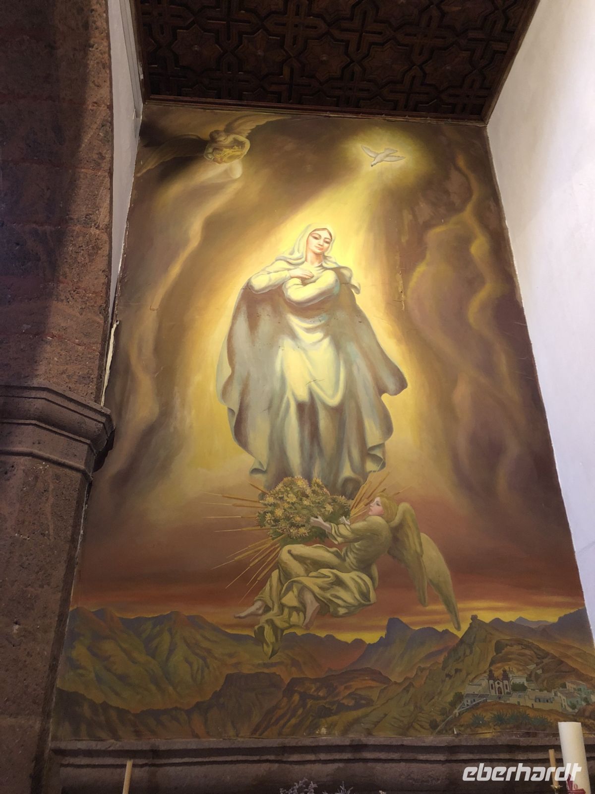 Danach sind wir nach Valleseco gefahren, wo wir unser typisch kanarisches Mittagessen hatten, bevor es weiter nach Teror ging. In Teror haben wir ein hübsches Dorf mit Bäumen aus der ganzen Welt gefunden und die Basilika der Jungfrau „Virgen del Pino“, die Schutzmadonna der Insel, besichtigt.
