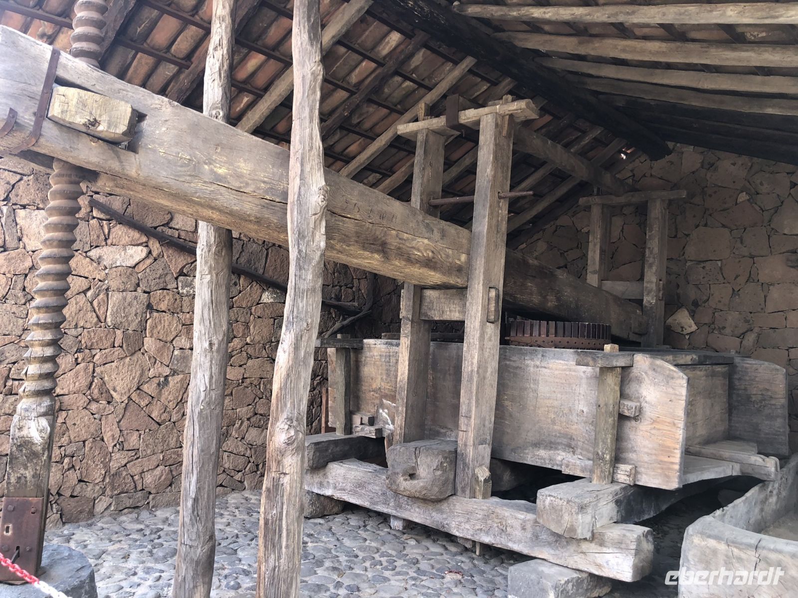 Hier konnten wir auch eine alte Weinpresse aus dem 19 Jahrhundert bewundern, die aus kanarischem Kiefernholz erbaut wurde.