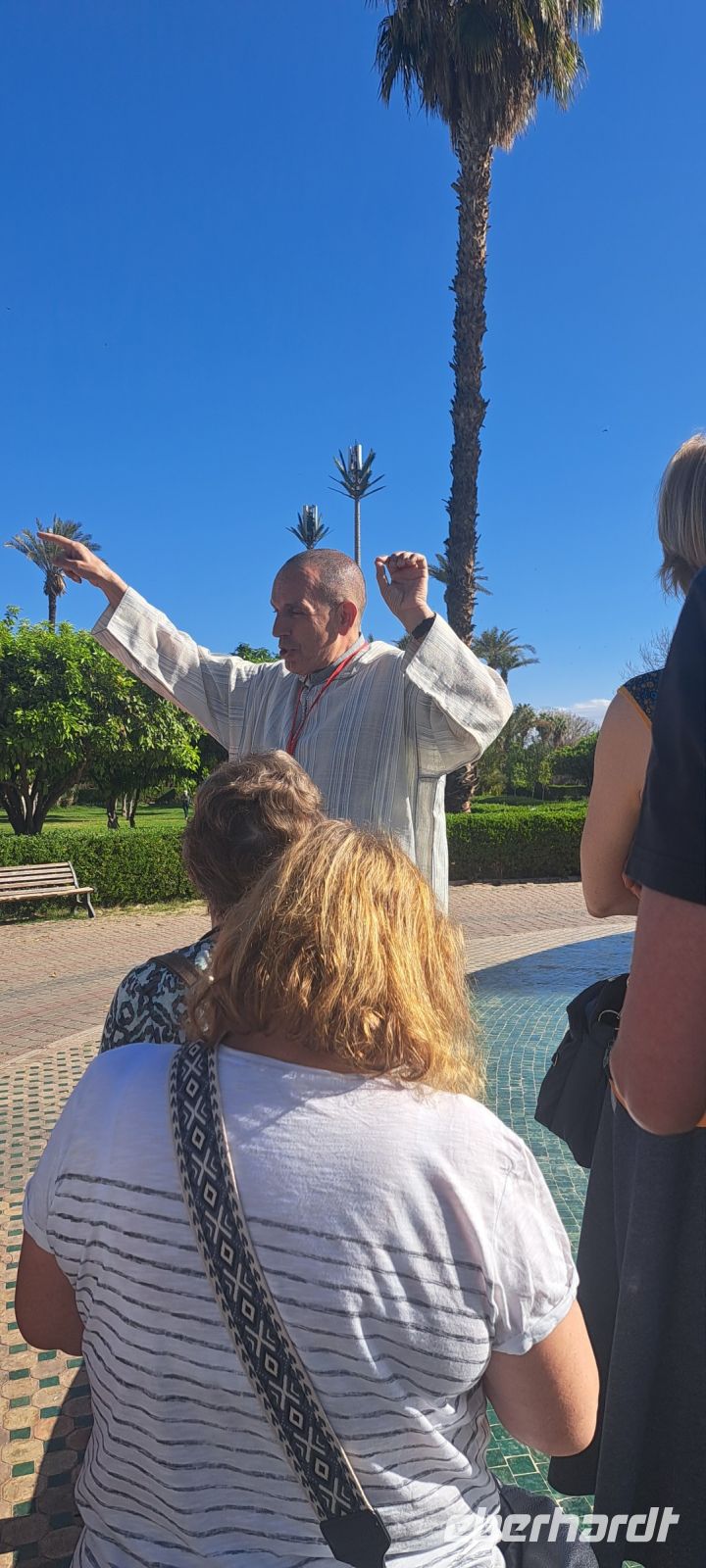 Ein Highlight des Palais de Bahia ist der "Harem"-Bereich, der für die Frauen reserviert war. Wir erfahren von Mohamed wie die "Hauptfrau" den Harem geschickt gemanagt hat (ohne dass es zur Eifersüchteleien zwischen den Frauen kommt). Noch heute gibt es reiche Männer die bis zu vier Ehefrauen haben. Die Männer aus unserer Gruppe zeigen jedoch keine Ambitionen, mehr Frauen heiraten zu wollen, sie haben bereits die Besten!