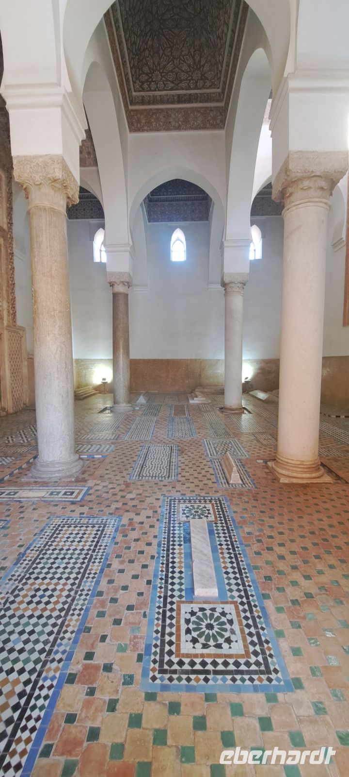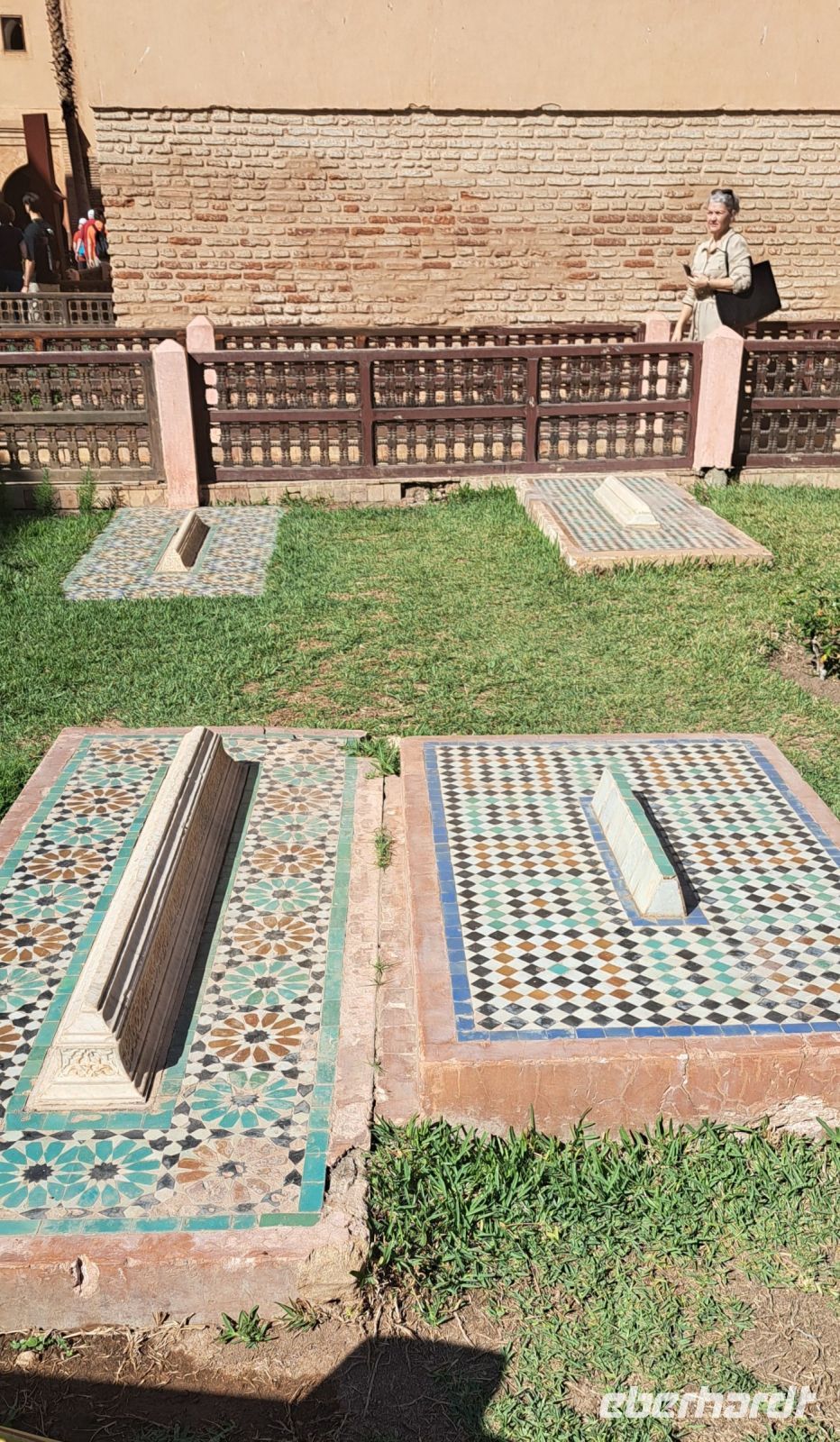 Von dort aus geht es weiter zu den Saadier-Gräbern, einem versteckten Juwel, das die prächtigen Gräber der Saadier-Dynastie beherberg. Diese Gräber stammen aus dem 16. Jahrhundert und wurden erst im Jahr 1917 wiederentdeckt, nachdem sie jahrhundertelang verborgen waren. Die Gräber sind bekannt für ihre beeindruckende Architektur und kunstvollen Verzierungen. Die Wände sind mit wunderschönen Ziegelmosaiken, Stuckarbeiten und Holzdecken verziert.