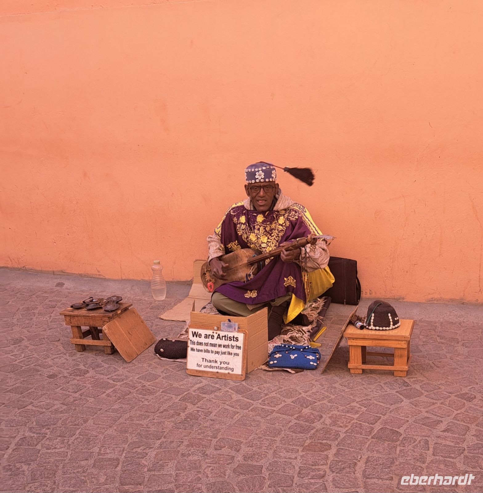 Von Dresden aus angereist treffen wir uns alle am Abfluggate nach Marrakech am Münchner Flughafen. Pünktlich landet der Flieger in Marrakech. Die Einreise in das faszinierende Land Marokko geht flott von statten. Mit unseren Koffern in der Hand werden wir von Mohamed Chamaly schon erwartet. Mohamed ist unser landeskundiger Guide und wird uns während des Aufenthalts in Marokko sein Land näher bringen und uns mit jeder Menge Informationen versorgen. Eine kurze Fahrt im großen Reisebus mit unserem Fahrer Hussein und seinem Helfer Hamid und schon sind wir in unserem ersten Hotel Dellarosa. Am späten Nachmittag geht es, um einen ersten Eindruck zu bekommen zum Djemaa el Fna Platz in Marrakesch. Der Platz ist das pulsierende Herz der Stadt und ein faszinierender Ort, der alle Sinne anspricht. Am Nachmittag ist der Platz ein lebhaftes Treiben aus Händlern, und Straßenverkäufern, die köstliche marokkanische Spezialitäten anbieten. Die Atmosphäre ist bunt und voller Leben. Wir staunen und sind fasziniert!