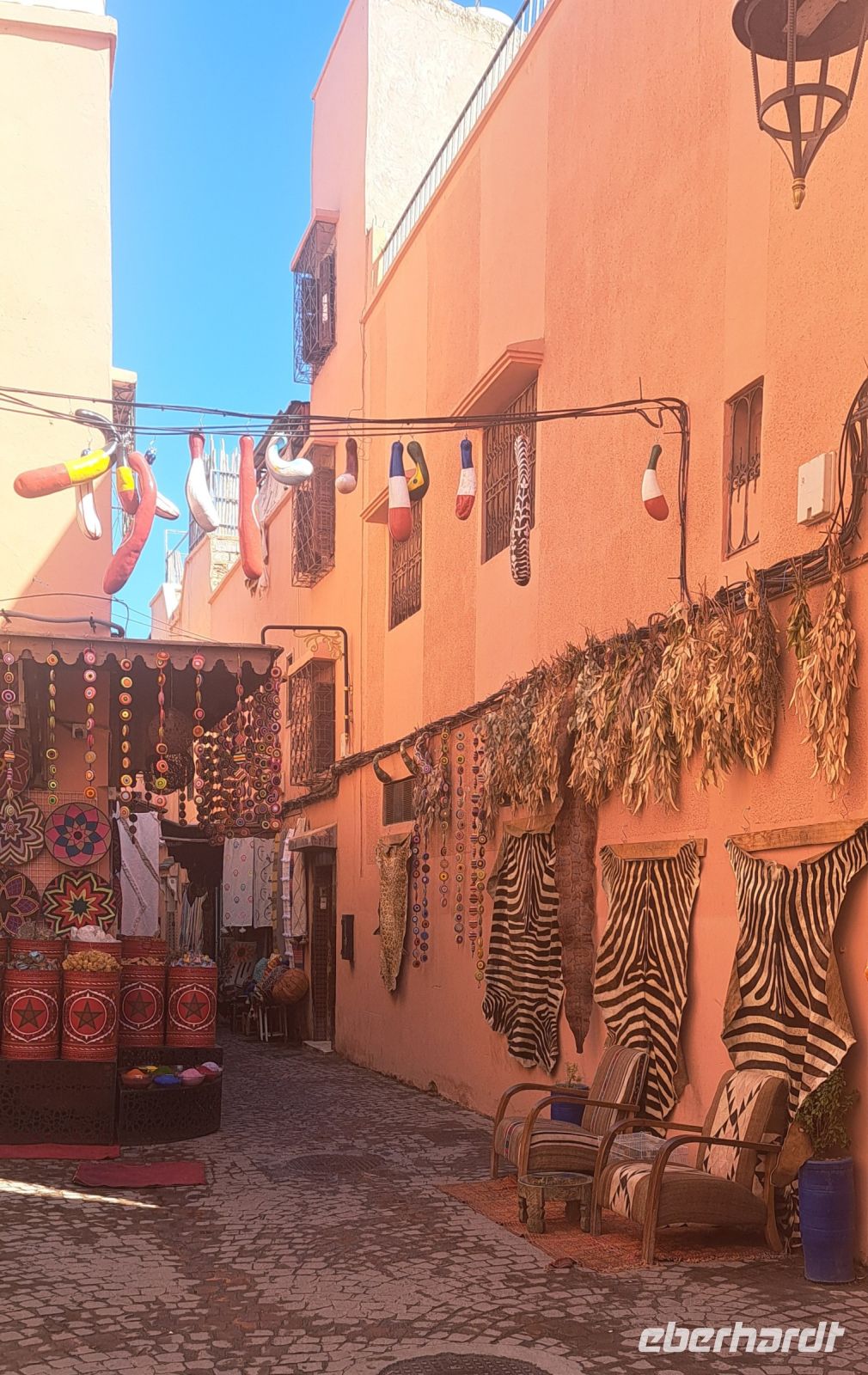 Anschließend marschieren wir im Gänsemarsch hinter Mohamed durch die Suqs, wir müssen aufpassen, dass wir niemanden verlieren zu leicht kann man sich verlaufen, oder staunend zu lange an schönen Geschäften verweilen.