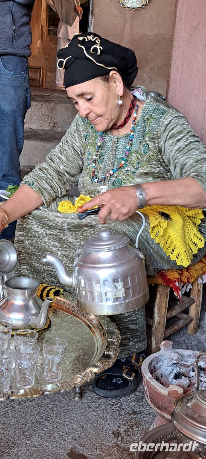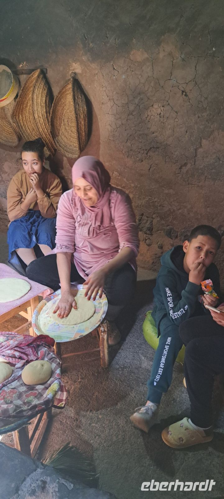 Der erste Stopp ist der Besuch einer Berberfamilie. Wir haben hier die wunderbare Möglichkeit, die lokale Kultur hautnah zu erleben. Wir lernen ein wenig ihre Lebensweise kennen und dürfen das typische Berber Haus besichtigen. (Eine Kuh lebt mit im Haus!). Anschließend werden wir von der Dame des Hauses zu einer Teezeremonie eingeladen.