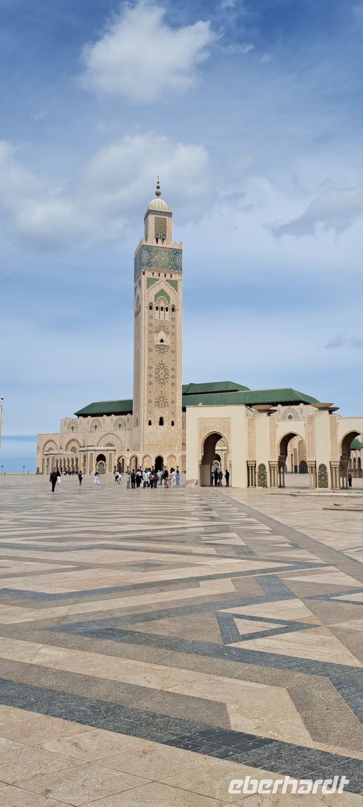 Die Architektur ist eine faszinierende Mischung aus traditionellem marokkanischen Stil und modernen Elementen. Besonders bemerkenswert ist das Minarett, das mit 210 Metern das höchste der Welt ist.