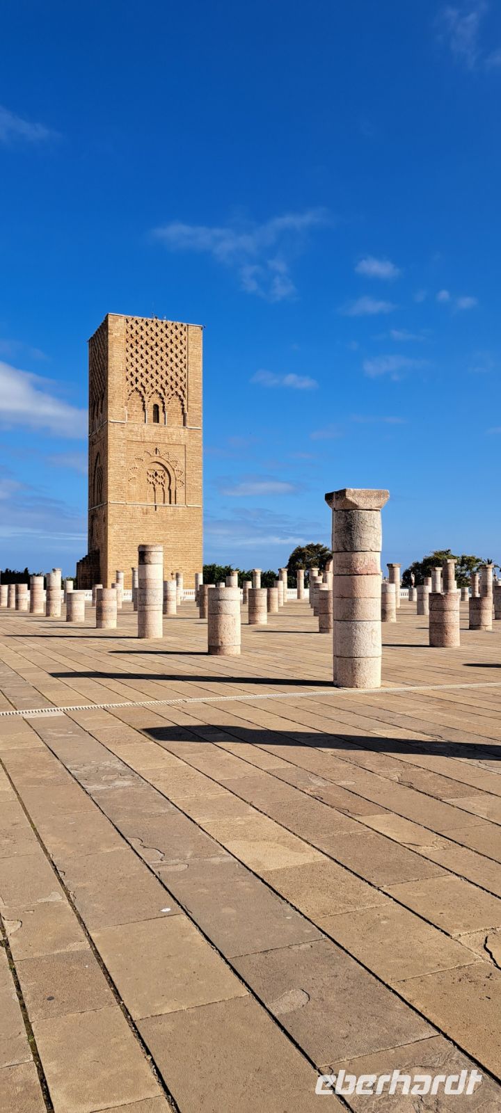 Wir beginnen den sonnigen Tag mit einer Rundfahrt durch das Nobelviertel von Rabat. Dann steht die Besichtigung des Mausoleums von Mohamed V an. Das Mausoleum wurde in den 1960er Jahren erbaut und ist der letzte Ruheort von König Mohammed V., dem Vater der Unabhängigkeit Marokkos, sowie seiner Söhne, König Hassan II. und Prinz Abdallah. Die Architektur des Mausoleums ist eine wunderschöne Mischung aus traditionellem marokkanischen Stil und modernen Elementen. Die Fassade ist mit kunstvollen Mosaiken, Marmor und Holzarbeiten verziert, die die Handwerkskunst des Landes widerspiegeln. Im Außenbereich gibt es viele Säulen römischen Ursprungs zu bewundern.