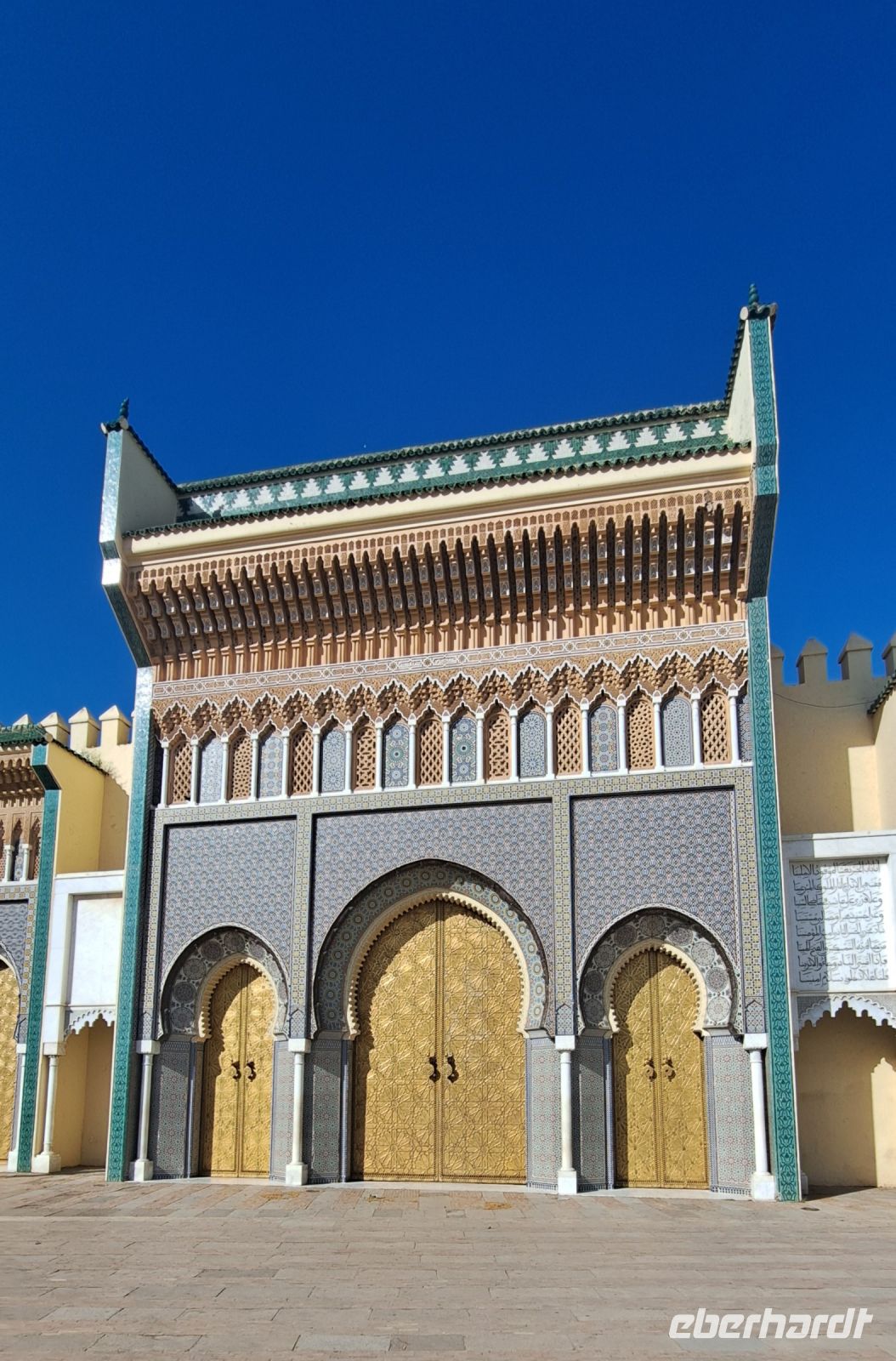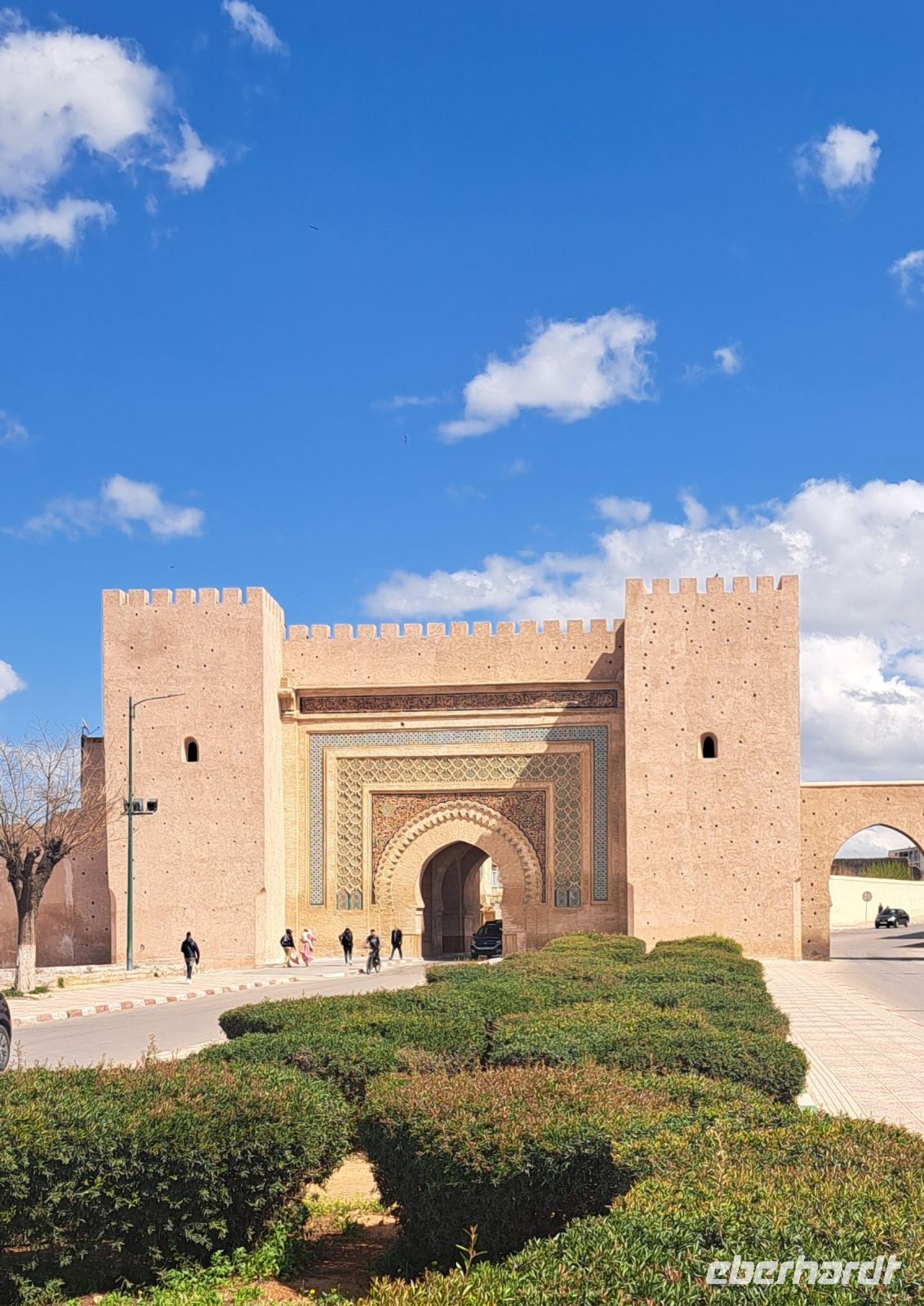 Meknes ist eine der vier königlichen Städte Marokkos und unser nächstes Ziel. Wir fahren entlang der ca 44km langen Stadtmauer zum Bab Mansour: Dieses beeindruckende Stadttor ist eines der schönsten in Marokko. Es wurde im 18. Jahrhundert erbaut und besticht durch seine kunstvollen Mosaiken und die monumentale Architektur, ein Symbol der Stadt. Ein Spaziergang durch das jüdische Viertel in der Medina und die Besichtigung des "goldenen" Eingangstors vom Königspalast runden den kurzen Besuch von Meknes ab............wir haben nicht viel Zeit denn wir wollen noch entspannt Fès erreichen.