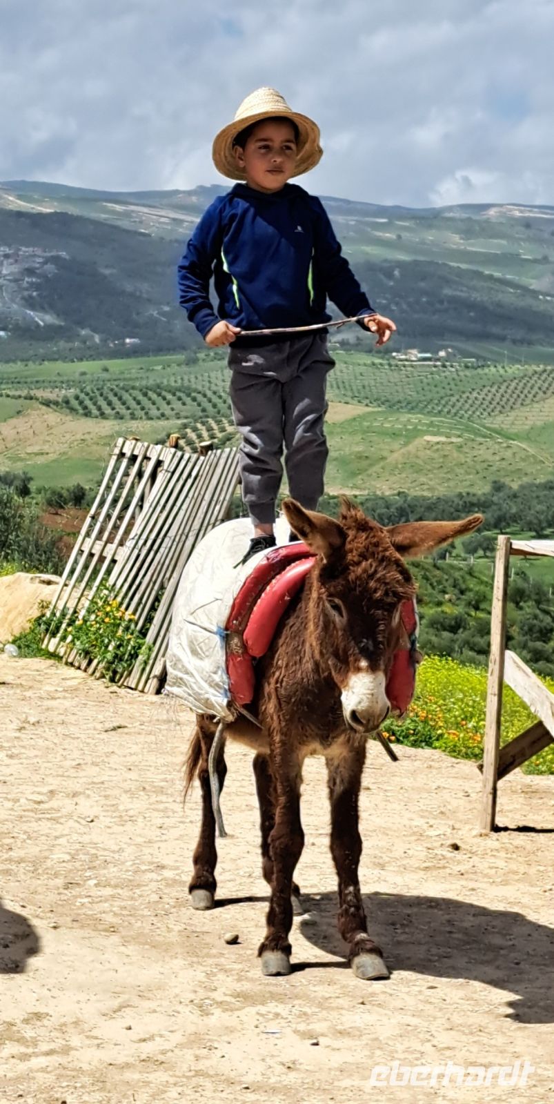 Wir verlassen Rabat und fahren weiter nach Meknes durch eine fruchtbare Hochebene. Wir beobachten vom Bus aus die Menschen, die hier teilweise noch mit Eseln das Feld bestellen. Mohamed berichtet, dass noch immer ca. 45% der Menschen nicht lesen und schreiben können. Doch es gibt es einen allmählichen Wandel. Angebote zum lernen durch Ehrenamtliche Studenten die vom Staat ein kleines Taschengeld bekommen. Auch Kinder werden motiviert regelmäßig die Schule zu besuchen, es gibt bei besonderen Leistungen zum Beispiel ein Fahrrad geschenkt. Für die Menschen in Marokko gibt es keine Sozialhilfe, keine Krankenversicherung, kein Arbeitslosengeld. Reformen sind zwar geplant berichtet uns Mohamed während der Fahrt, aber es wird wohl noch eine Weile dauern sie umzusetzen.