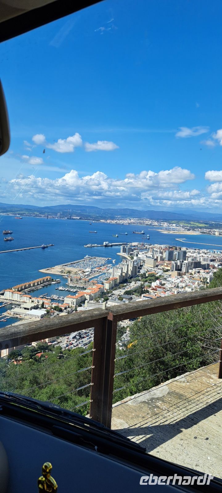 Am Morgen passieren wir mit dem Fährschiff die Meerenge von Gibraltar. Nur 14 Kilometer trennen hier den afrikanischen Kontinent mit Europa. Von Tanger nach Tarifa sind wir eine Stunde unterwegs. Unser spanischer Busfahrer Manuel erwartet uns bereits. Er bringt uns nach Gibraltar.