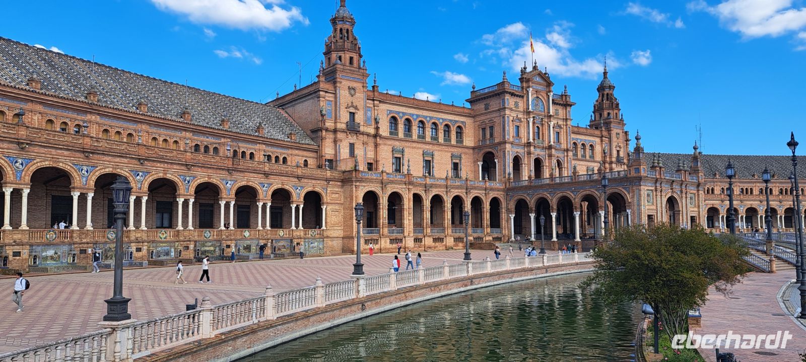 Am frühen Nachmittag erreichen wir unser Hotel in Sevilla. Mit einigen Gästen mache ich noch einen Ausflug zur Plaza Espana. Sie ist ein beeindruckendes architektonisches Meisterwerk, erbaut für die Ibero-Amerikanische Ausstellung 1929. Die halbkreisförmige Anlage symbolisiert Spaniens Umarmung seiner ehemaligen Kolonien. Ein künstlicher Kanal durchzieht den Platz, über den vier reich verzierte Brücken führen. Jede repräsentiert eines der alten Königreiche Spaniens. Entlang des Platzes befinden sich mit farbenfrohen Kacheln geschmückte Bänke, die jeweils eine spanische Provinz darstellen. Direkt angrenzend befindet sich der Parque de Maria Luisa einer der größten und schönsten Parks Sevillas. Hier werden Kutschfahrten angeboten und man kann auf dem Kanal ein kleines Boot mieten. Wir spazieren zurück zum Hotel, damit wir pünktlich zum Abendessen eintreffen.