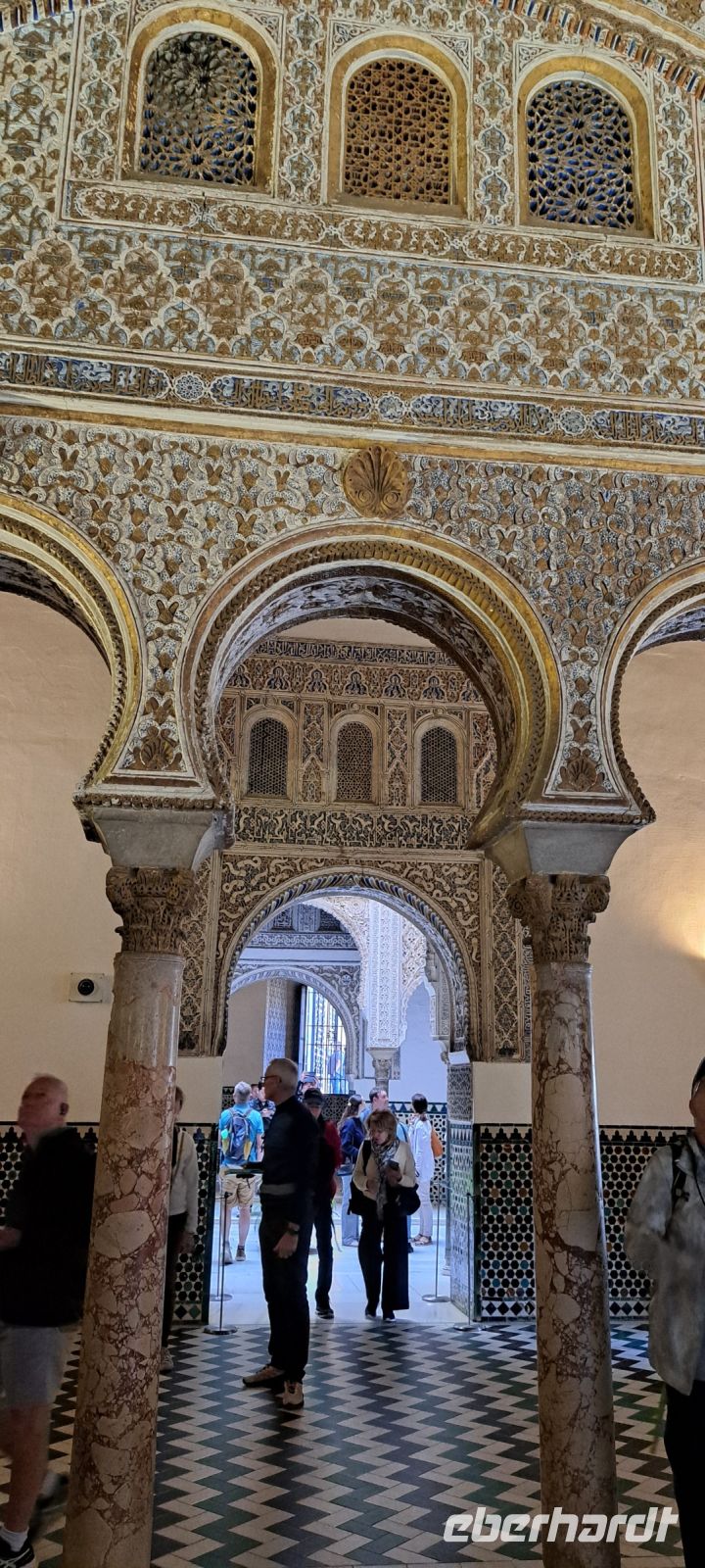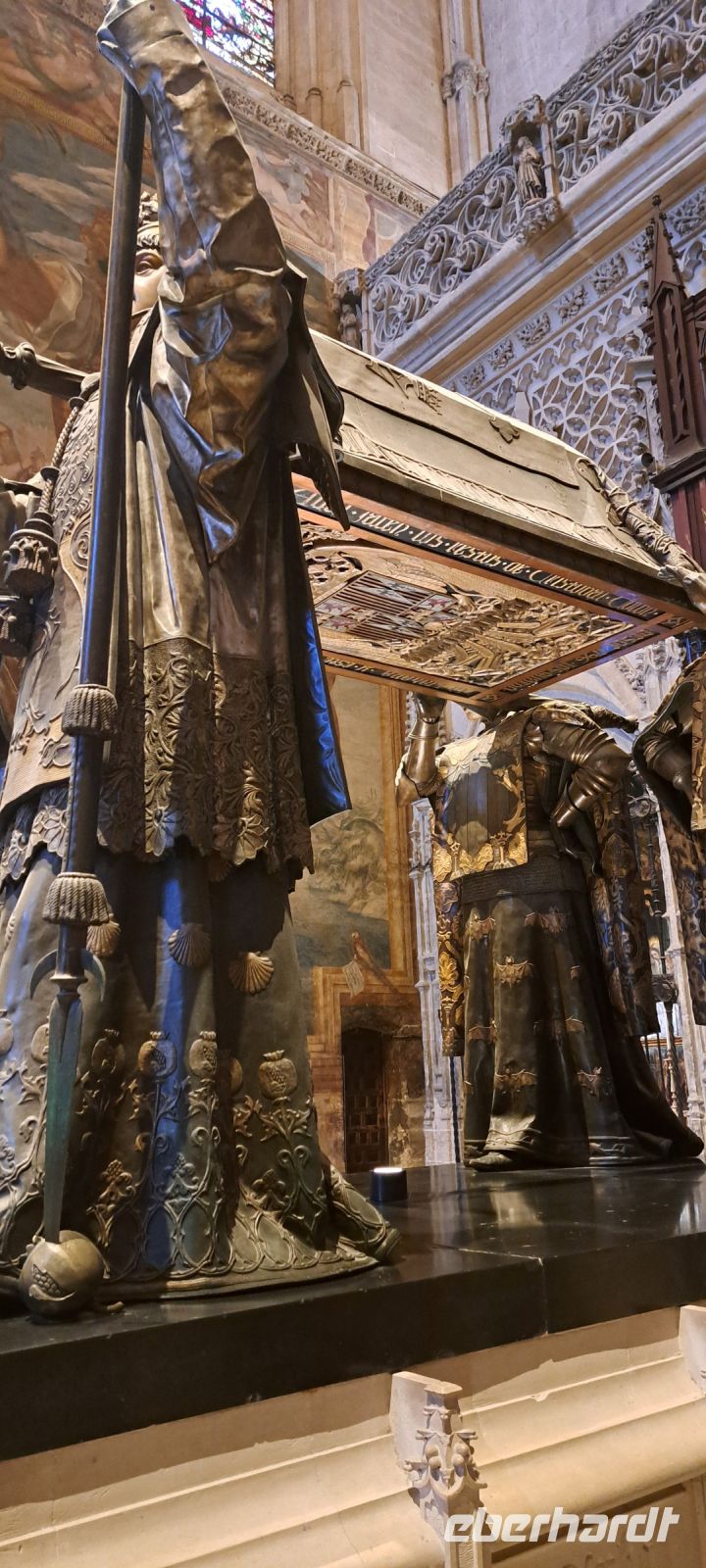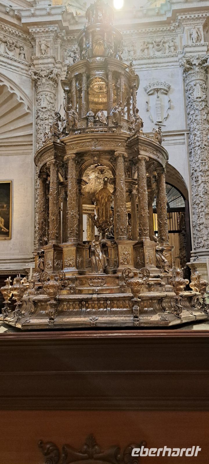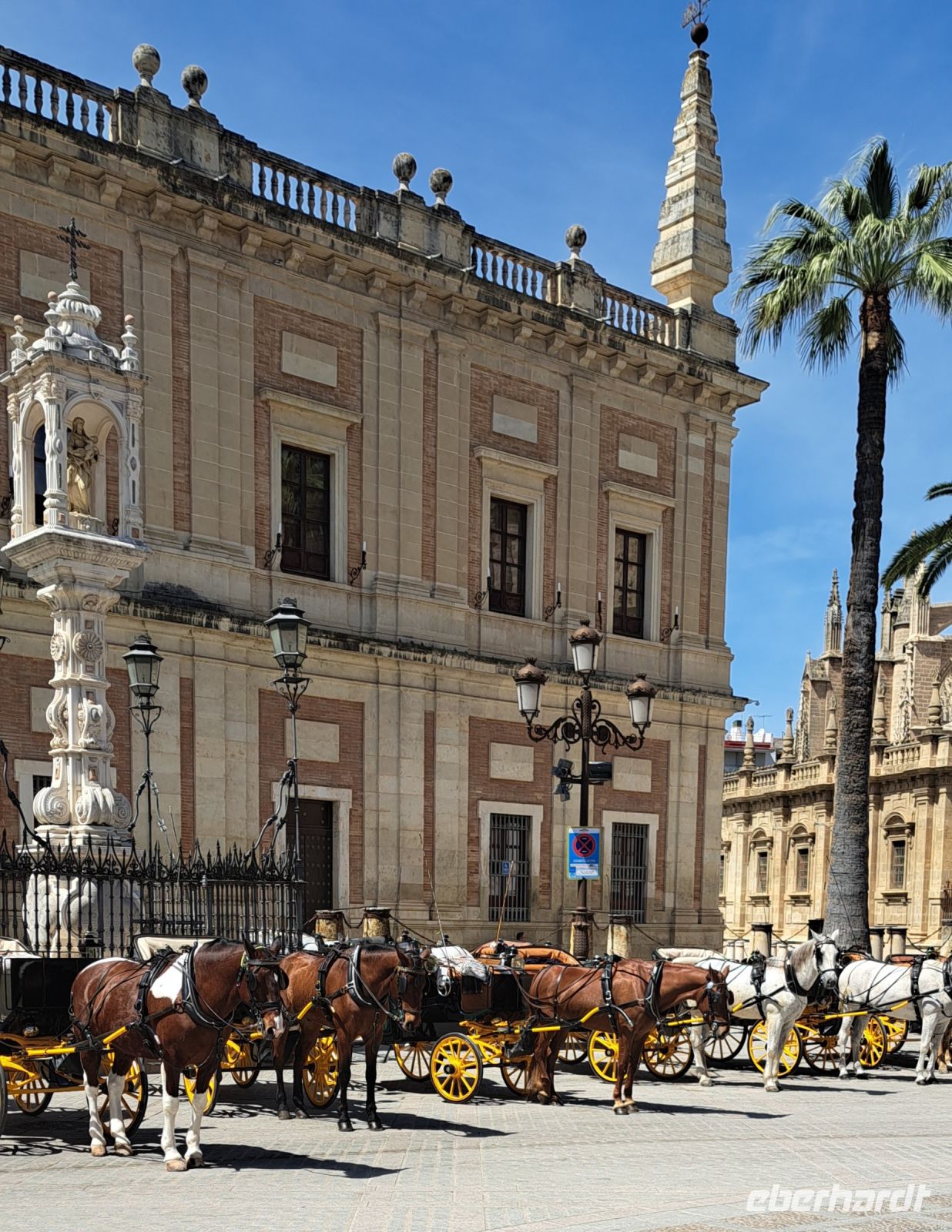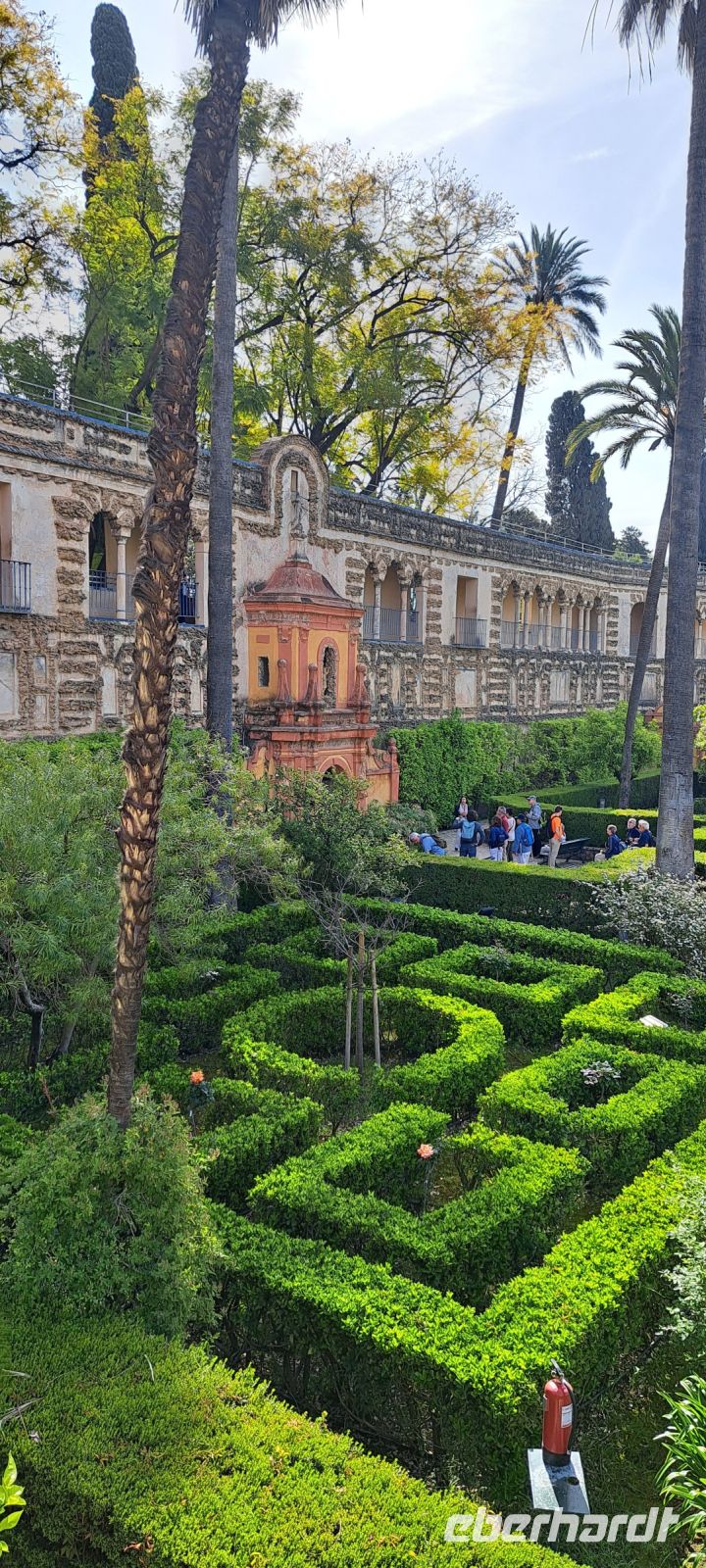 Dann steht die Besichtigung des berühmten Real Alcazar, Königspalast von Sevilla an. Bereits im Jahr 913 legten die Mauren den Grundstein für den Königspalast. Im laufe der Jahrhunderte ist es eine Gruppe von Palästen mit einer umlaufenden Mauer umgeben. Ein Meisterwerk mit Elementen aus maurischer, gotischer, Renaissance-und Barockkunst. Wir bestaunen den Palacio Gotico mit Wandgemälden und Sälen, den prunkvollen Thronsaal mit vergoldeter Kuppel, den Innenhof mit filigraner Mudejar-Architektur. Besonders beeindruckend die Gärten, weitläufig, exotisch mit Wasserspielen, wunderschön zum flanieren. Leider drängt die Zeit etwas denn die Kathedrale "wartet" auf uns. Die Kathedrale von Sevilla, auch bekannt als Catedral de Santa María de la Sede, ist eine der beeindruckendsten gotischen Kathedralen der Welt und ein UNESCO-Weltkulturerbe. Der Bau der Kathedrale begann im Jahr 1401 auf den Ruinen einer ehemaligen Moschee, die während der Reconquista in eine Kirche umgewandelt wurde. Die Kathedrale wurde im Jahr 1506 fertiggestellt.