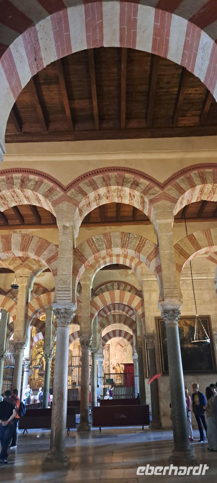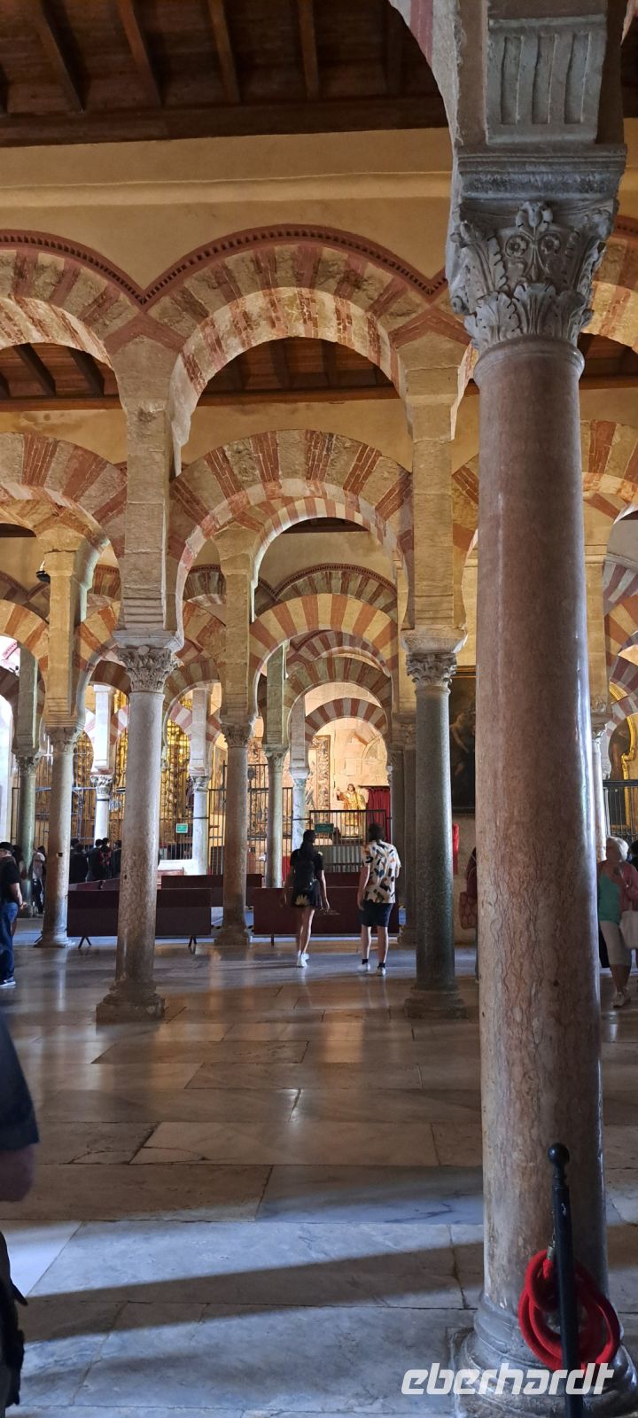 Dann besichtigen wir die Mezquita. Sie, die ursprünglich als Moschee erbaut wurde, ist eines der beeindruckendsten Beispiele maurischer Architektur. Der Bau begann im Jahr 785 n. Chr. und wurde im Laufe der Jahrhunderte erweitert. Die Moschee ist berühmt für ihre charakteristischen roten und weißen Bögen, die beeindruckenden Säulen und die kunstvollen Mosaiken. Nach der Reconquista im Jahr 1236 wurde die Mezquita in eine Kathedrale umgewandelt, was zu einer einzigartigen Mischung aus islamischer und christlicher Architektur führte. Wir bedanken und verabschieden uns von Ines